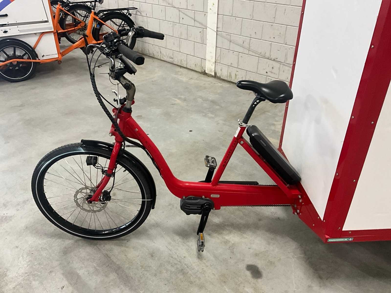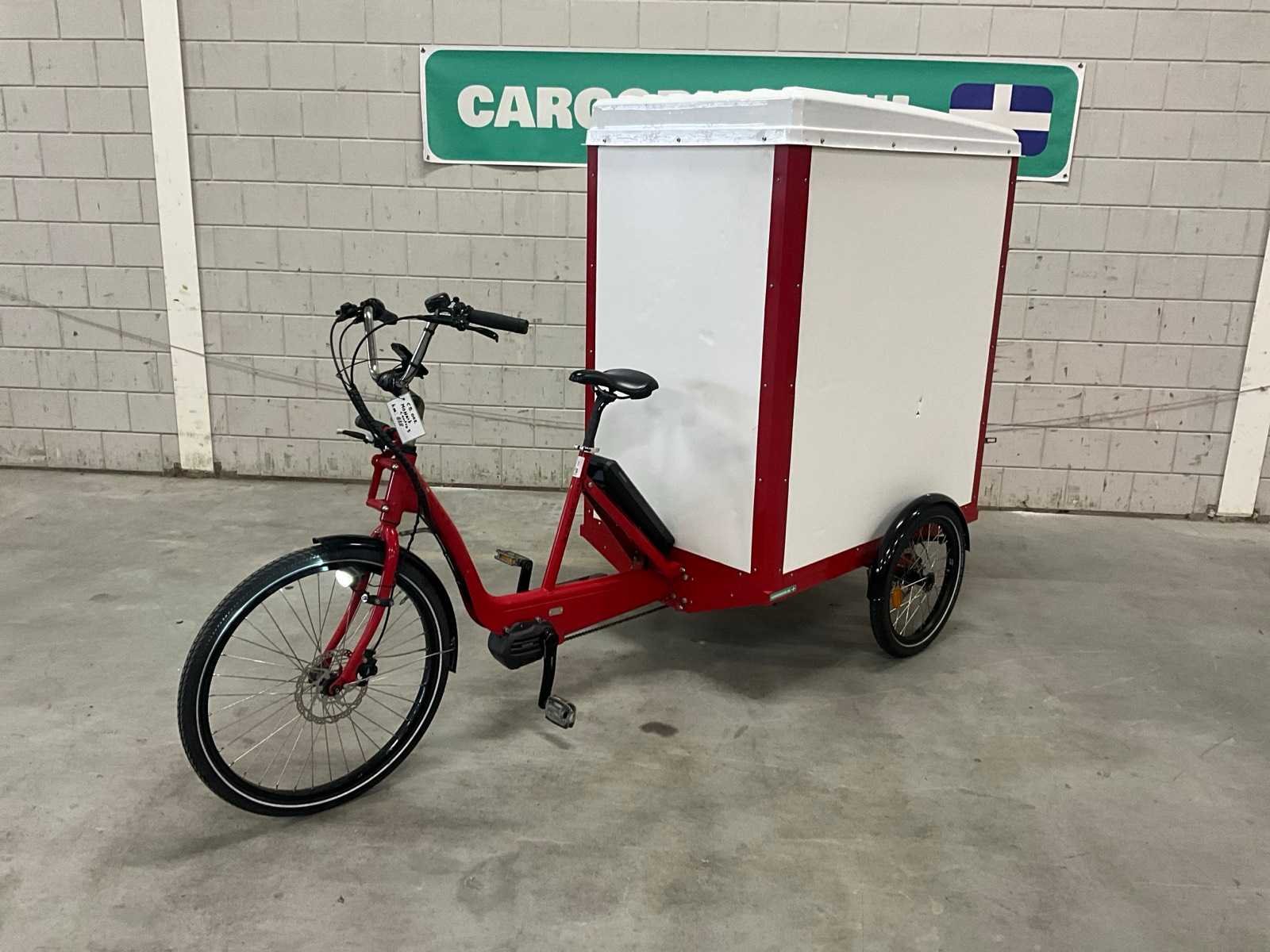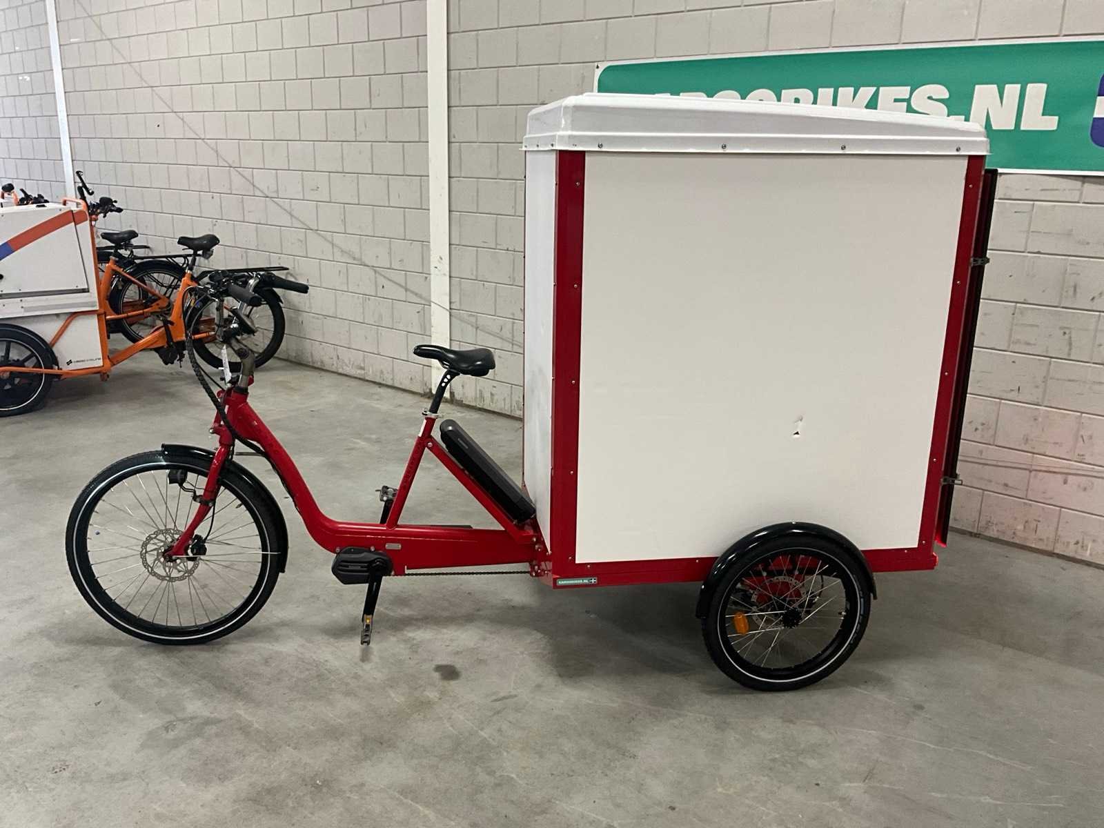 Bakinhoud: 1300 liter, laadvermogen 150 Kg, afmeting laadbak 120x82x120cm, Shimano 504Wh, kilometerstand 888km. Merk: Centro Model: Monark Cargo Frame type: Uni Motorpositie: Midden Remsysteem: Hydraulisch Versnellingen: 7 Lengte: 270cm Breedte: 104cm Hoogte: 170cm