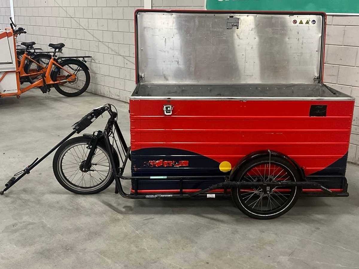 Bakinhoud: 800 liter, laadvermogen 200 Kg, afmeting laadbak 165x65x74cm, voorzien van hand en looprem, naafdynamo. Merk: Carla Cargo Remsysteem: Hydraulisch Gewicht: 45kg Lengte: 200cm Breedte: 90cm Hoogte: 91cm