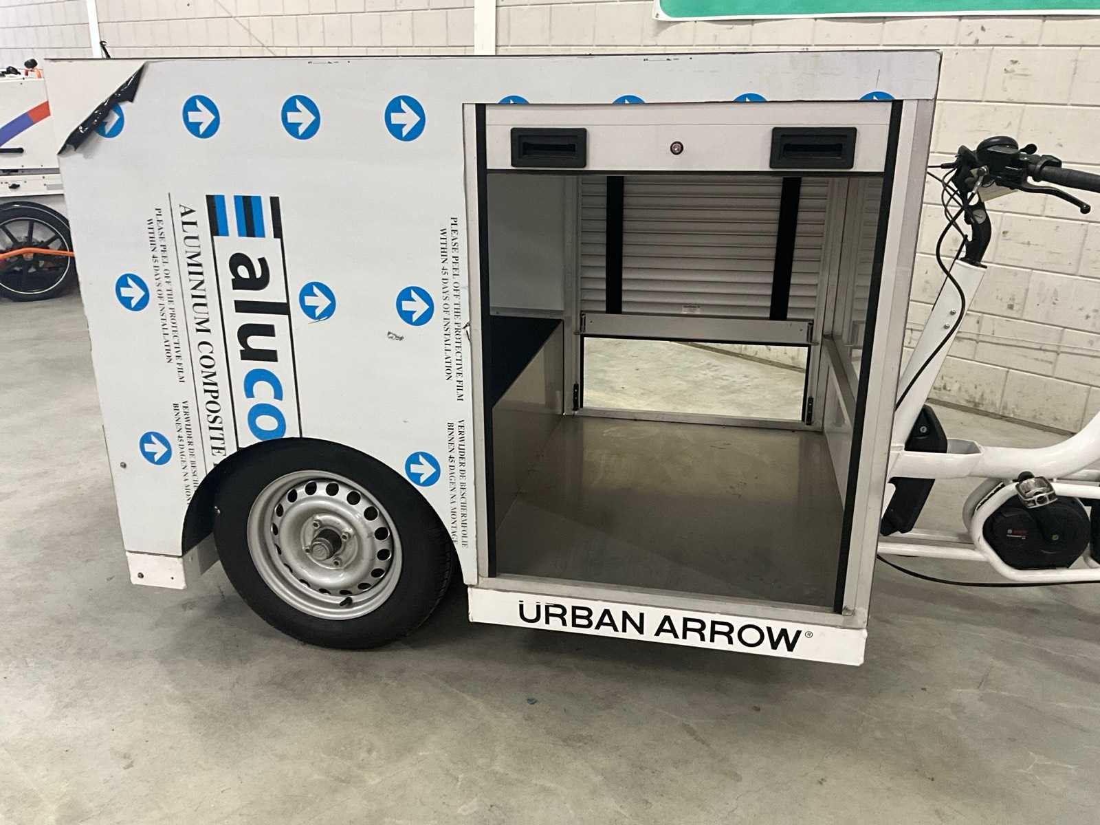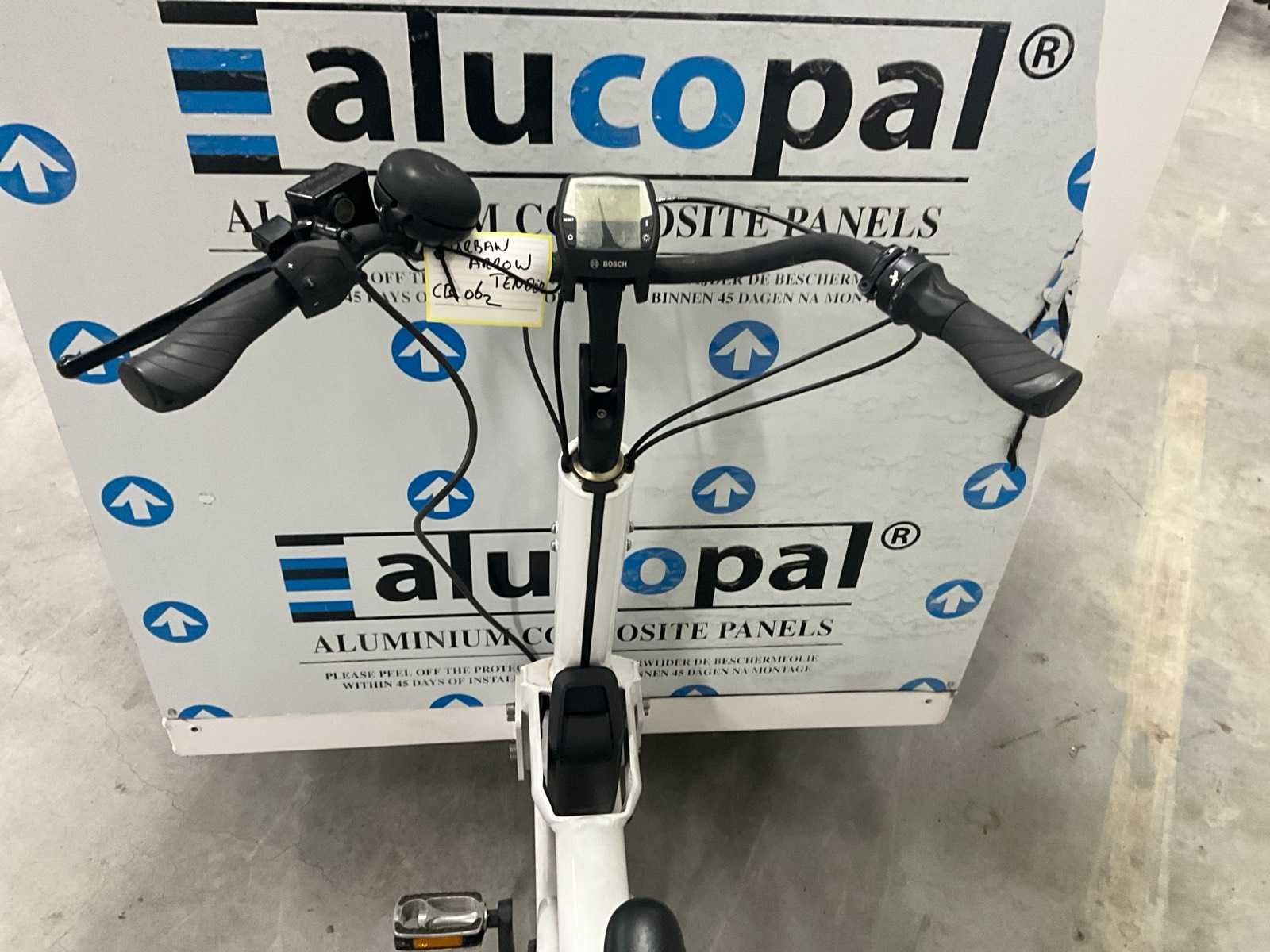 Afmeting laadbak 163x114x105cm, Bosch performance CX, Bosch 500Wh accu , kilometerstand 22km. Merk: Urban Model: Arrow Tender Frame type: Uni Motorpositie: Midden Remsysteem: Hydraulisch Versnellingen: 14 Lengte: 300cm Breedte: 115cm Hoogte: 131cm