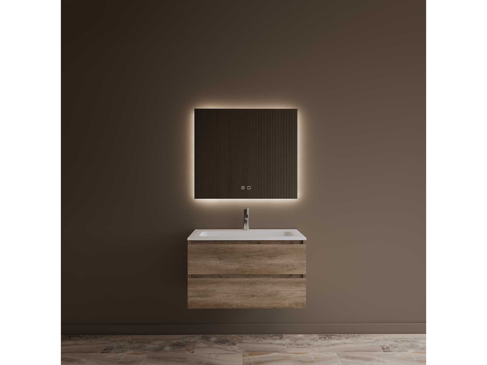 Merk: Gliss Design Model: Zeus Product type: Badkamer Set Hoogte: 50cm Lengte: 45cm Breedte: 90cm Kleur: Oud Grijs Eiken Wastafel: Asia Mat Wit 90 cm Spiegel met verlichting: Backlight 90 x 70 Onderkast: Zeus 90 cm Oud Grijs Eiken Lades: 2 Softclose: true
