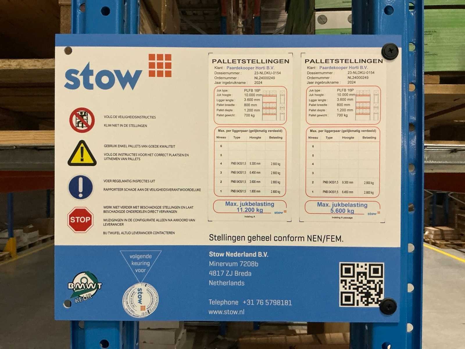 Bestaande uit zeven opgebouwde palletstellingen, inclusief aanrijdbeveiliging. Goederen zijn niet inbegrepen. Dit kavel is onderdeel van een combinatiekavel (kavel 9), bestaande uit de volgende kavels: 5 t/m 6 Merk: Stow Bouwjaar: 2024 Aantal secties: 168 Sectie afm. b: 3600mm Sectie diepte: 1100mm Aantal staanders: 182 Aantal liggers: 1344 Max. sectiebelasting: 11200kg Totale afmeting Hoogte: 10000cm