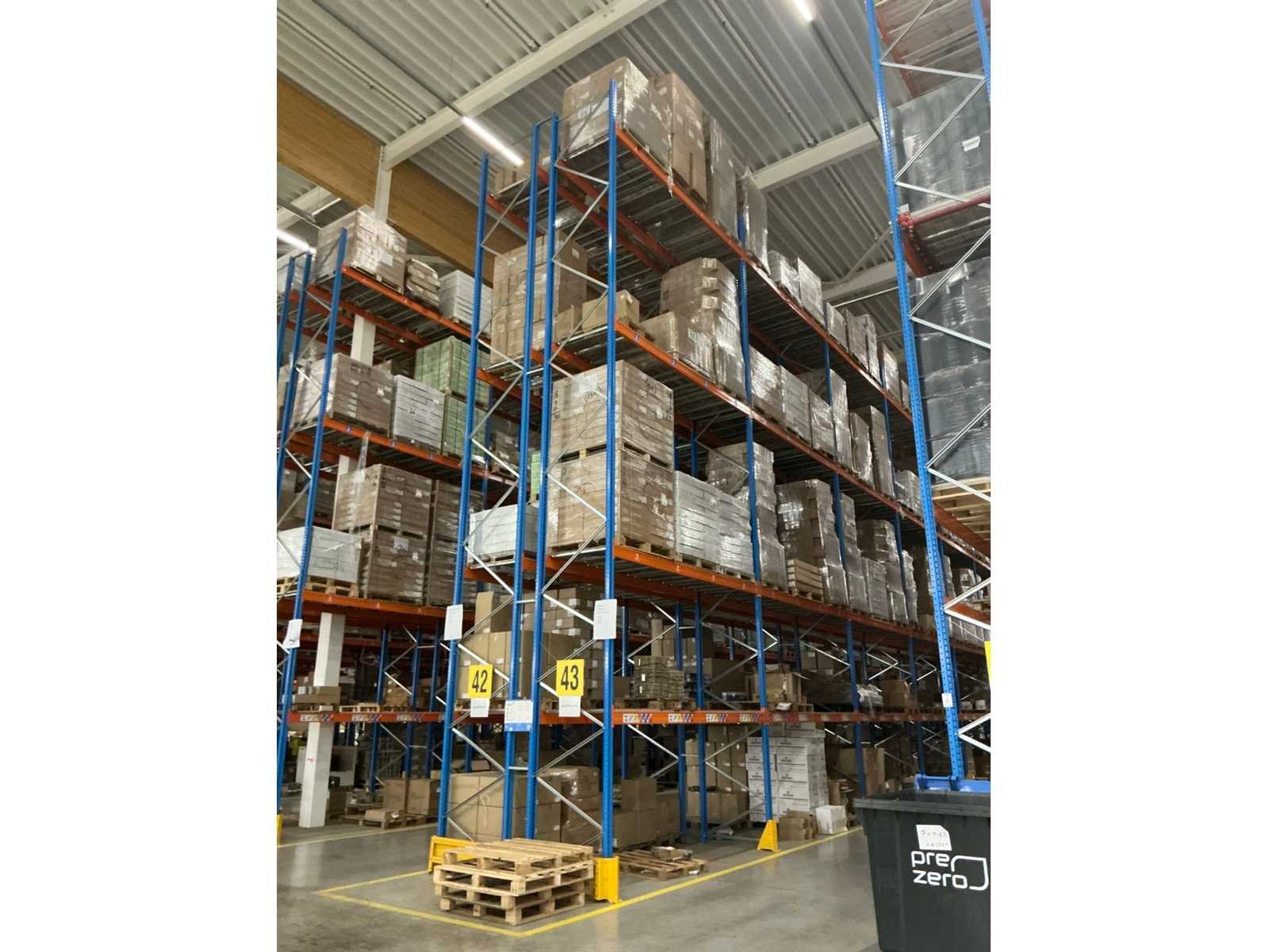 Bestaande uit acht opgebouwde palletstellingen, inclusief aanrijdbeveiliging. Goederen zijn niet inbegrepen. Dit kavel is onderdeel van een combinatiekavel (kavel 9), bestaande uit de volgende kavels: 5 t/m 6 Merk: Stow Bouwjaar: 2024 Aantal secties: 192 Sectie afm. b: 3600mm Sectie diepte: 1100mm Aantal staanders: 208 Aantal liggers: 1536 Max. sectiebelasting: 11200kg Totale afmeting Hoogte: 10000cm