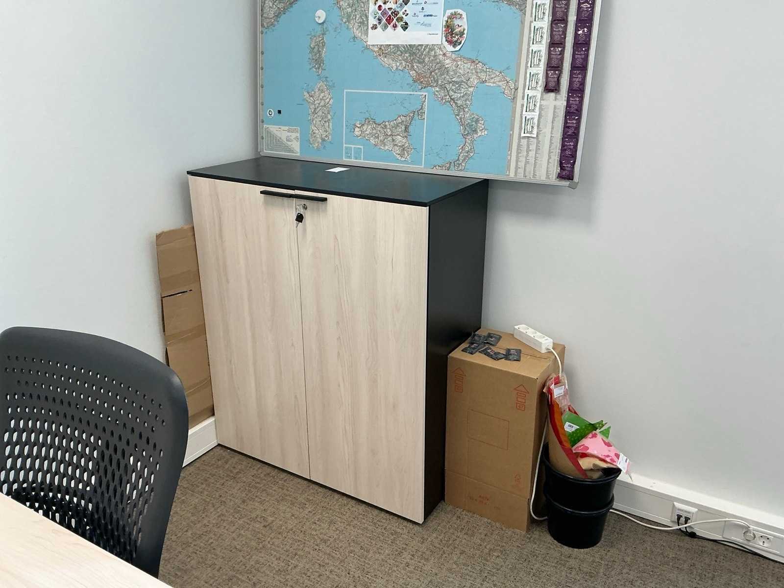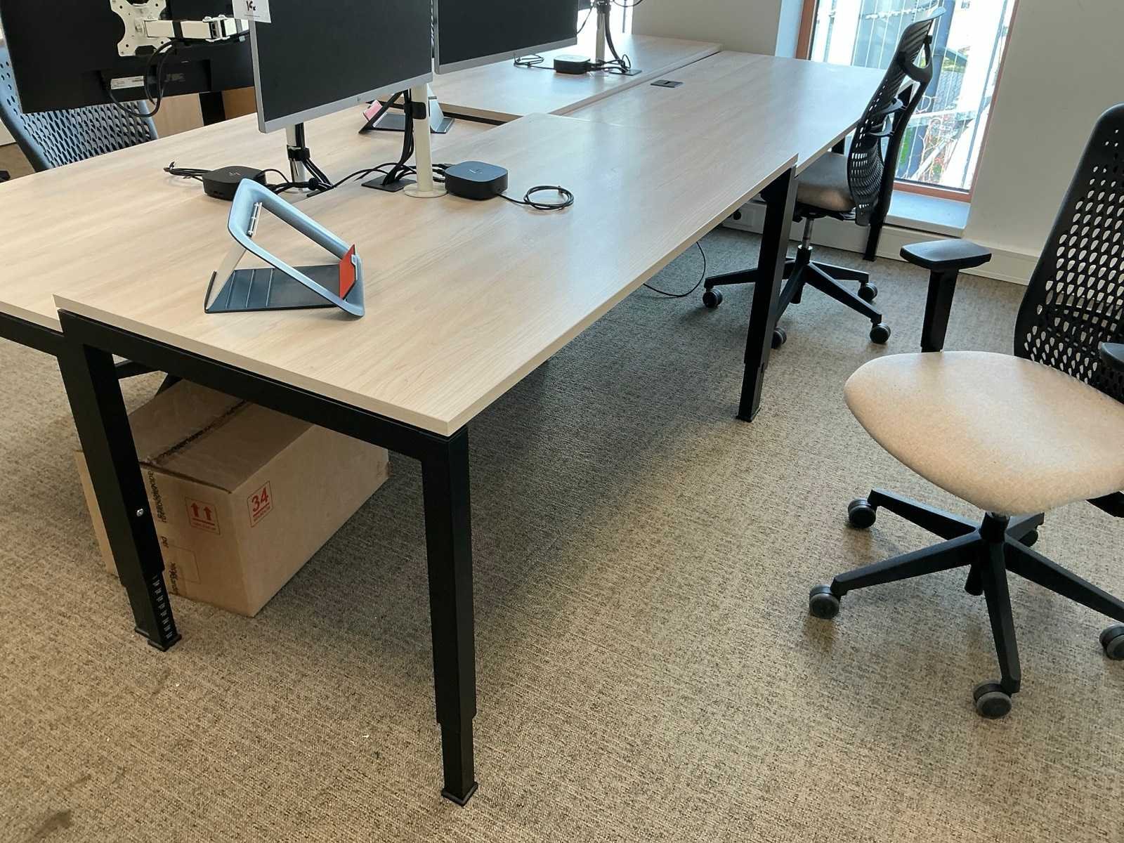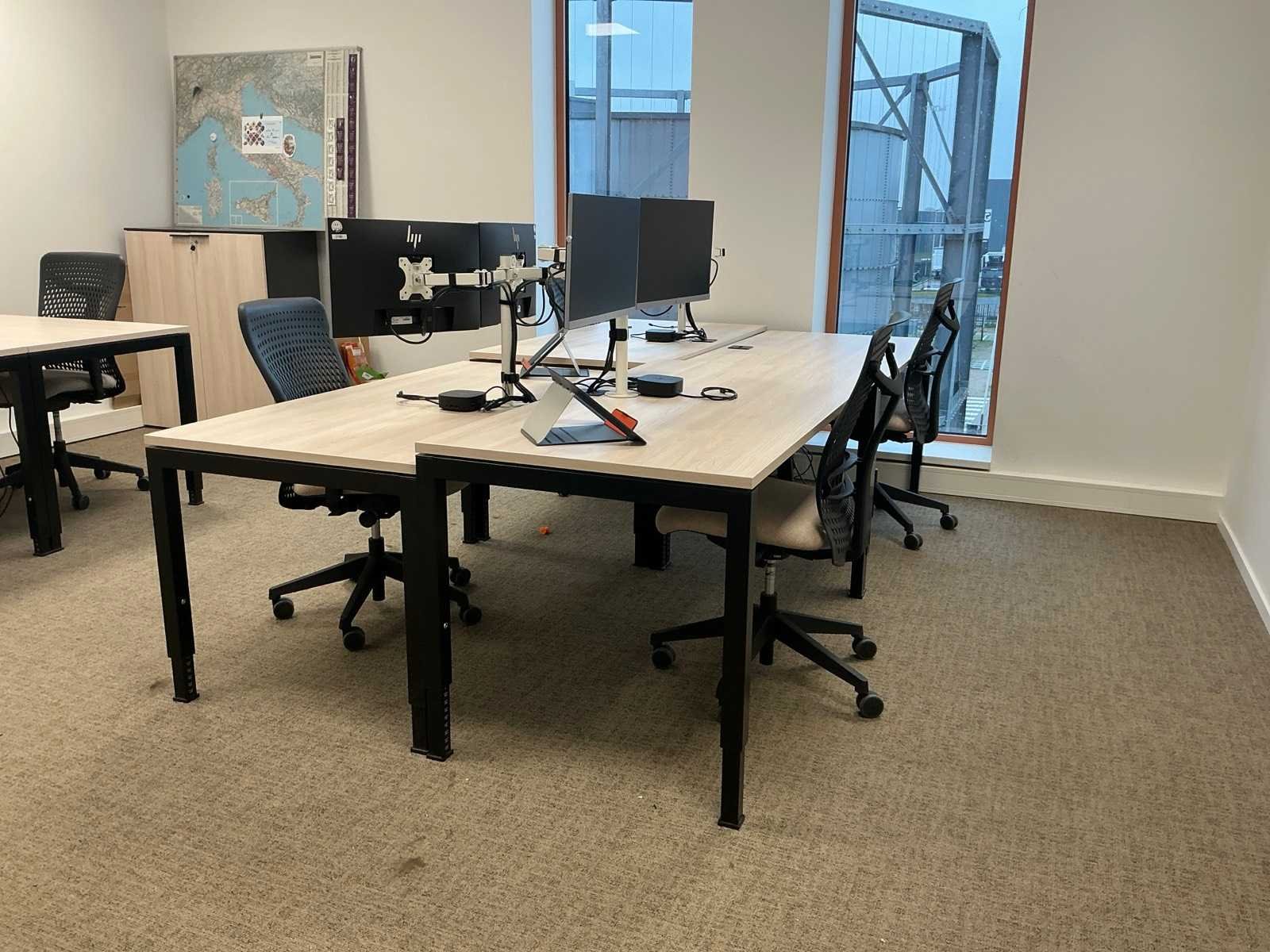 Voorzien van 6 Luxy bureaustoelen. Zonder de los verkavelde schermen met arm en usb docks. Voorzien van kapstok en 4 opbergkasten met inhoud. Merk: Bralco Lengte: 160cm Breedte: 80cm Hoogte: 74cm
