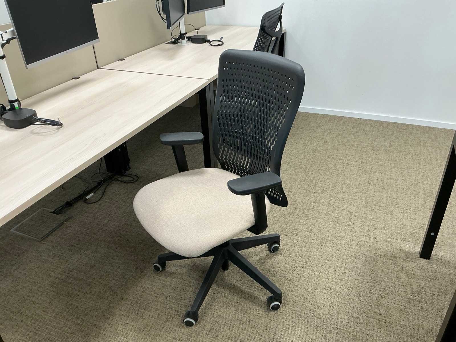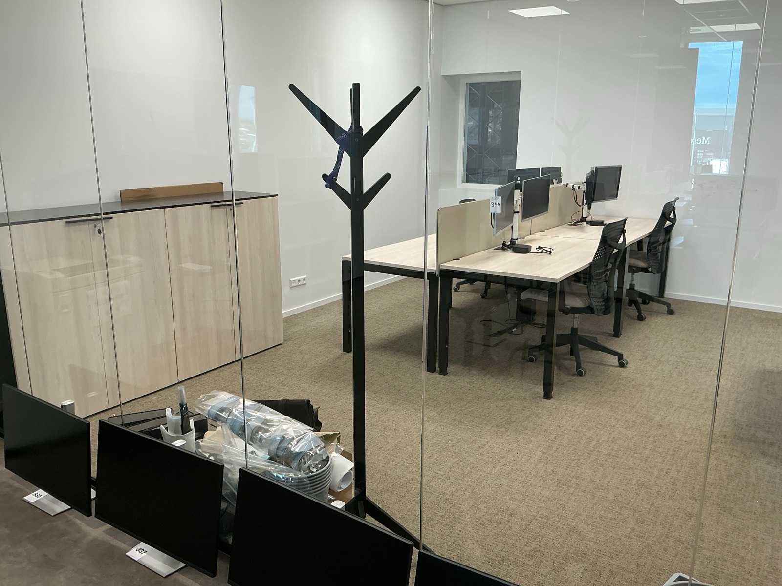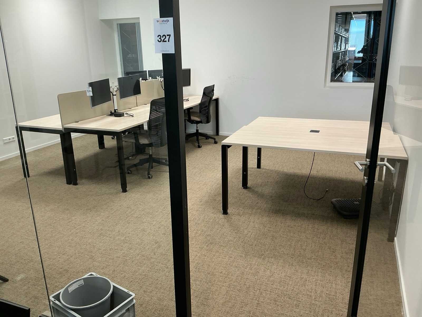 Voorzien van 3 Luxy bureaustoelen. Zonder de los verkavelde schermen met arm en usb docks. Voorzien van kapstok en 2 opbergkasten met inhoud. Merk: Bralco Lengte: 160cm Breedte: 80cm Hoogte: 74cm
