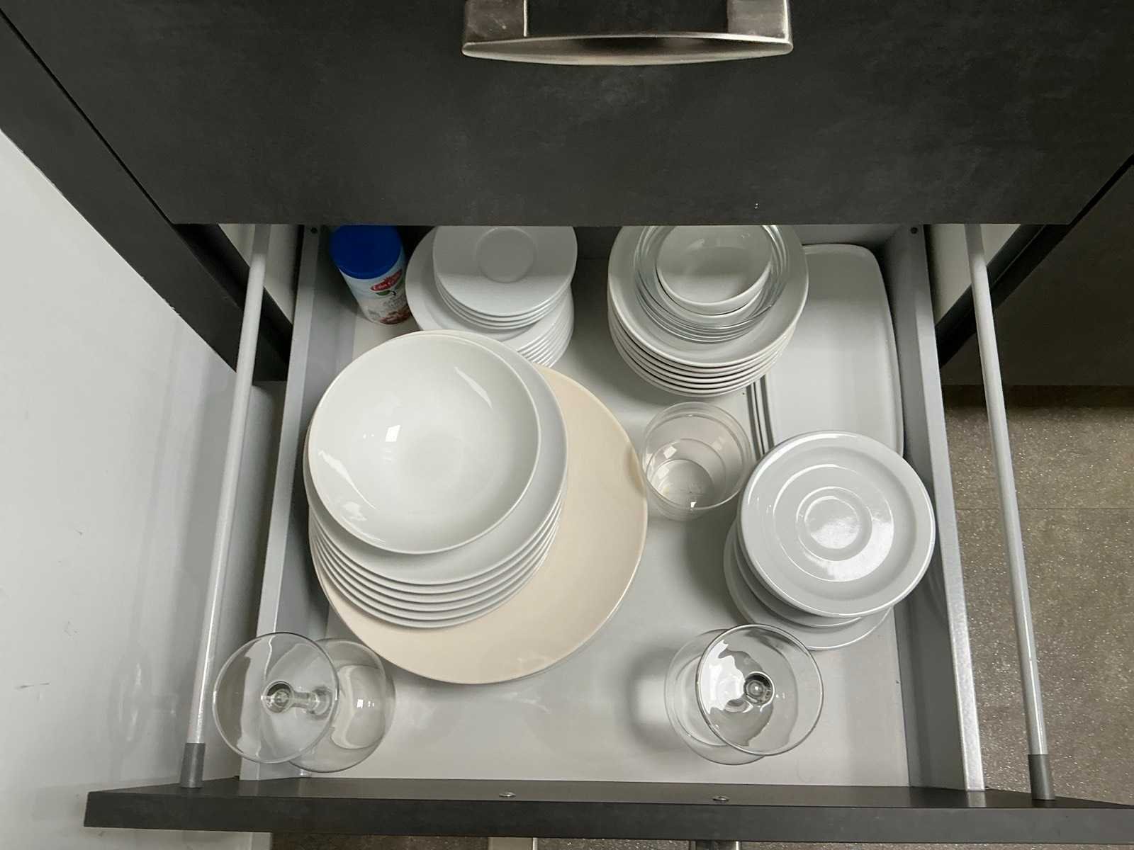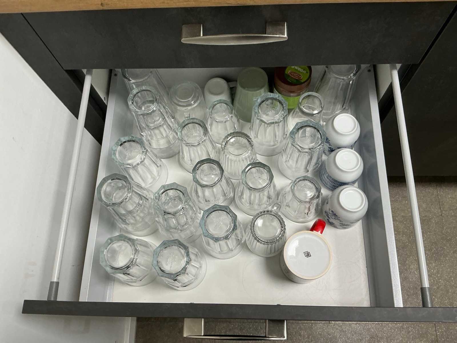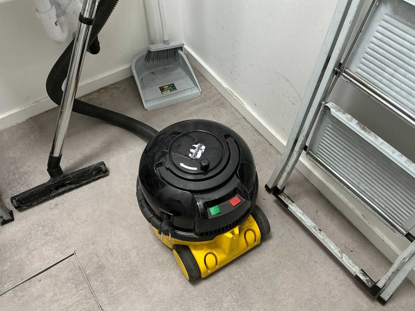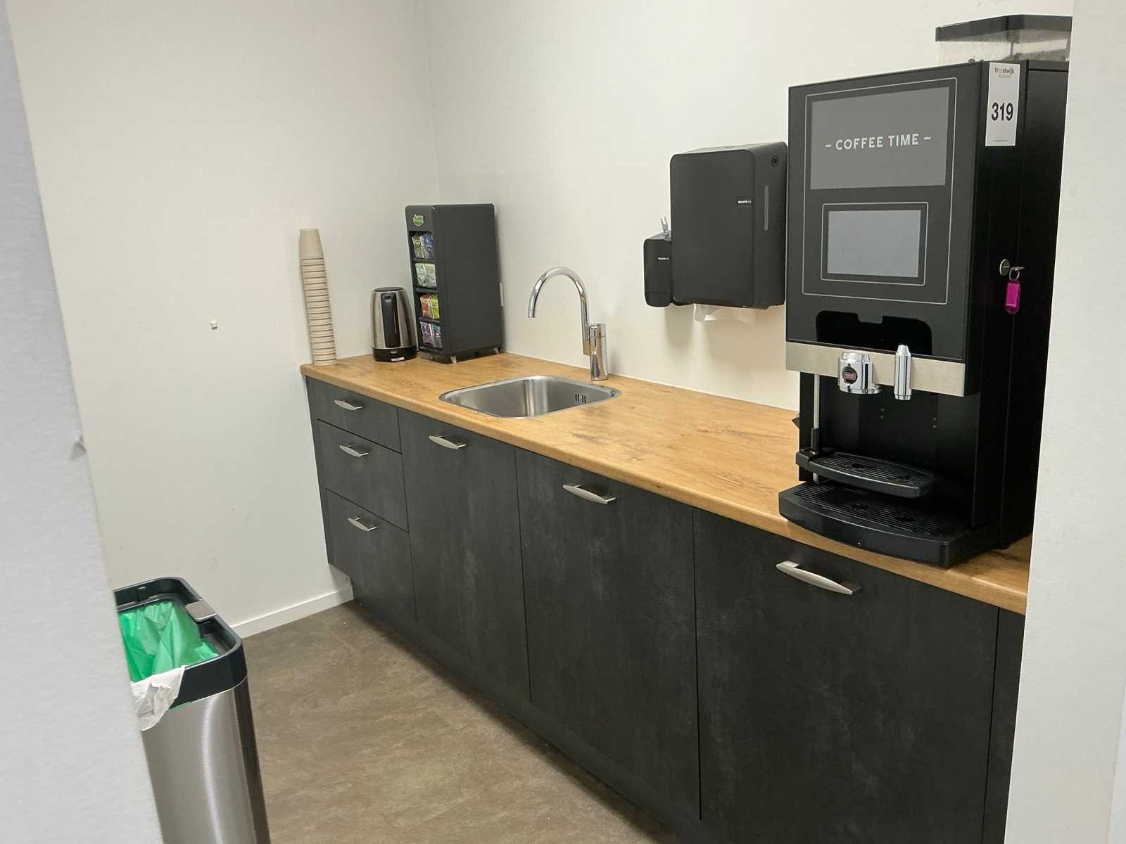 Bestaande uit koffie en theevoorraad, 2 magazijnstellingen met inhoud, Numatic stofzuiger, glaswerk, bestek. Zonder de los verkavelde koffiemachine en wasmachine.