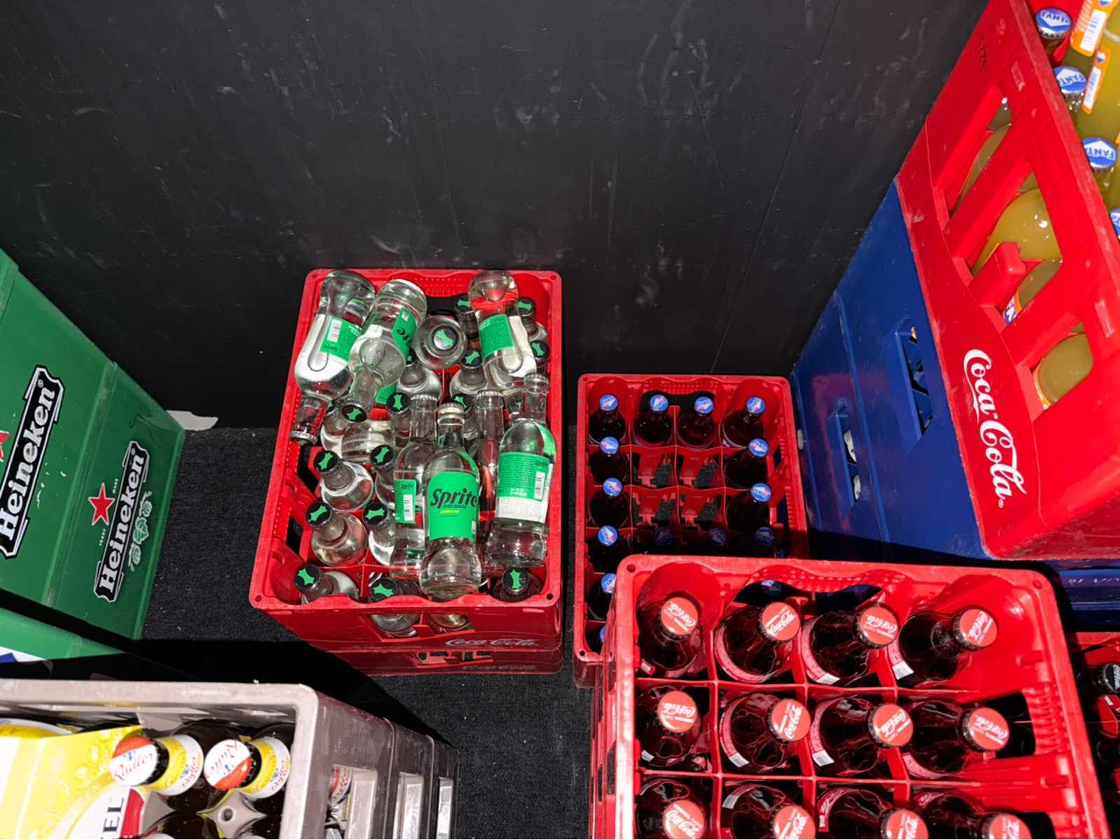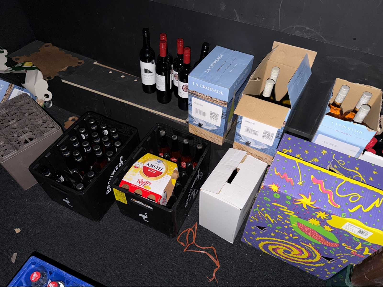 Bestaande uit circa 45 gevulde kratten, vijf dozen wijn en diverse losse flesjes in de koeling. De THT is steekproefsgewijs gecontroleerd en kan bij sommige producten mogelijk verstreken zijn.