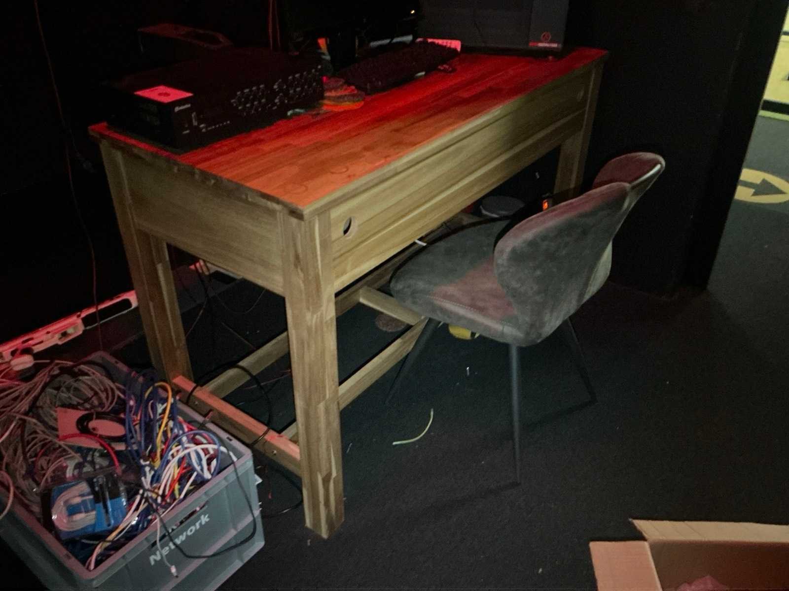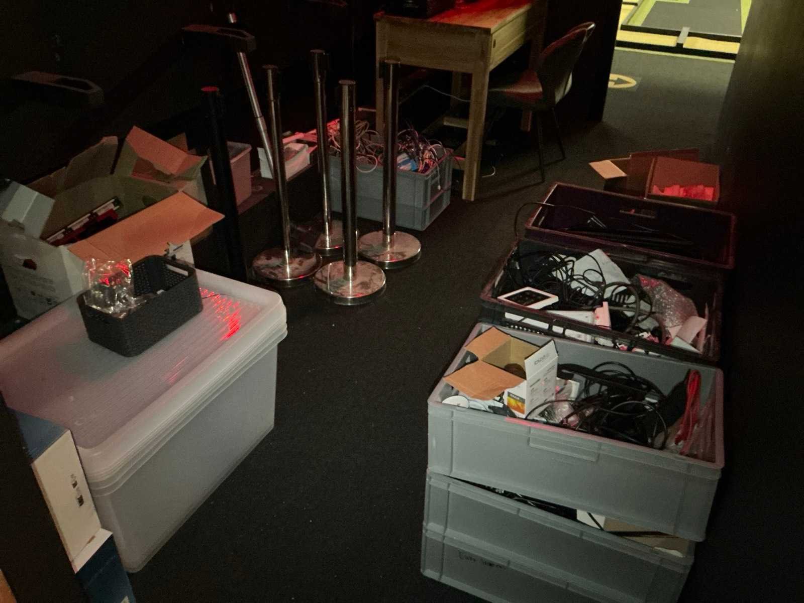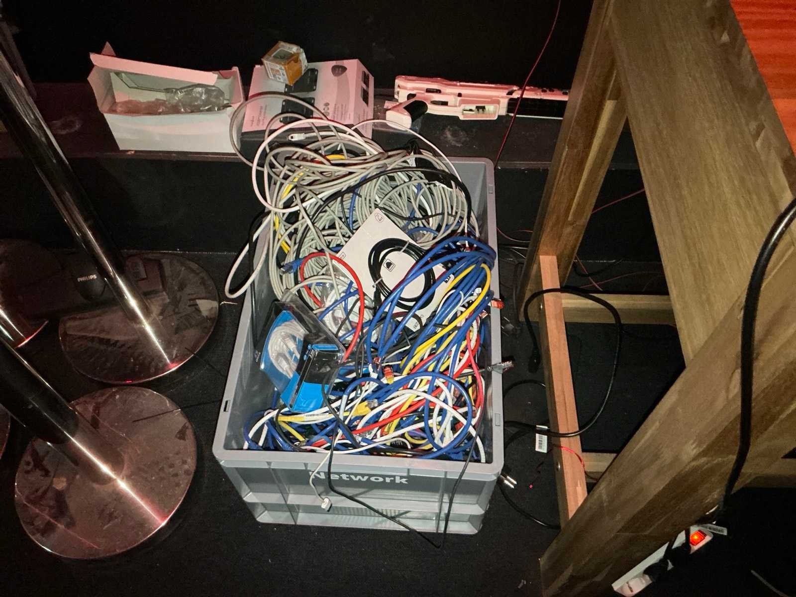 Bestaande uit: UTP kabels, voedingskabels, verlichting, diverse spots, etc. Bureautafel (zonder inhoud).