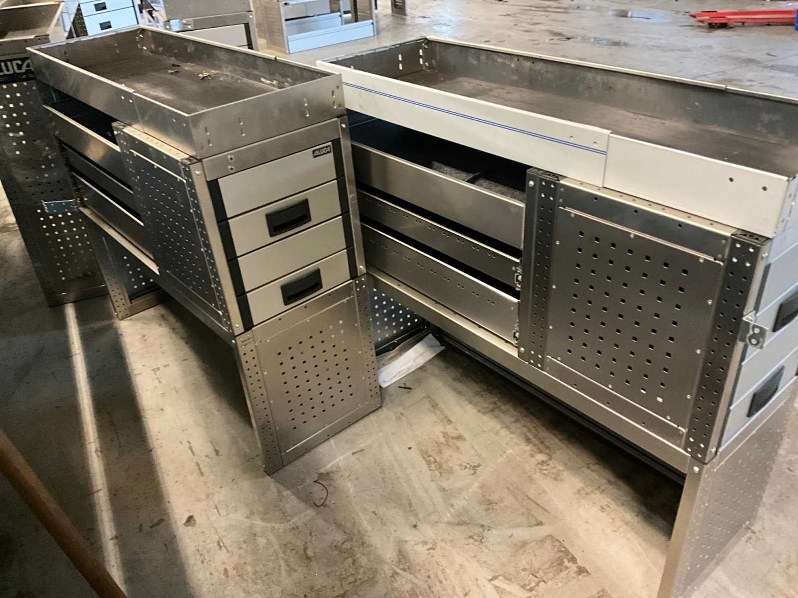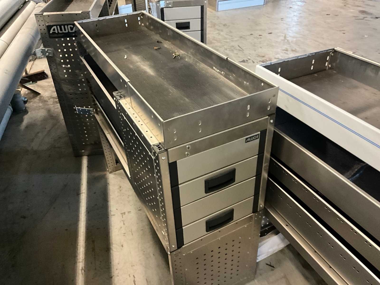 Modulesysteem, bestaande uit 2x kast, afmeting circa: voorzien van: assortimentbak opbergsysteem, lades voorzijde en zijkant Merk: Aluca Materiaal: Aluminum