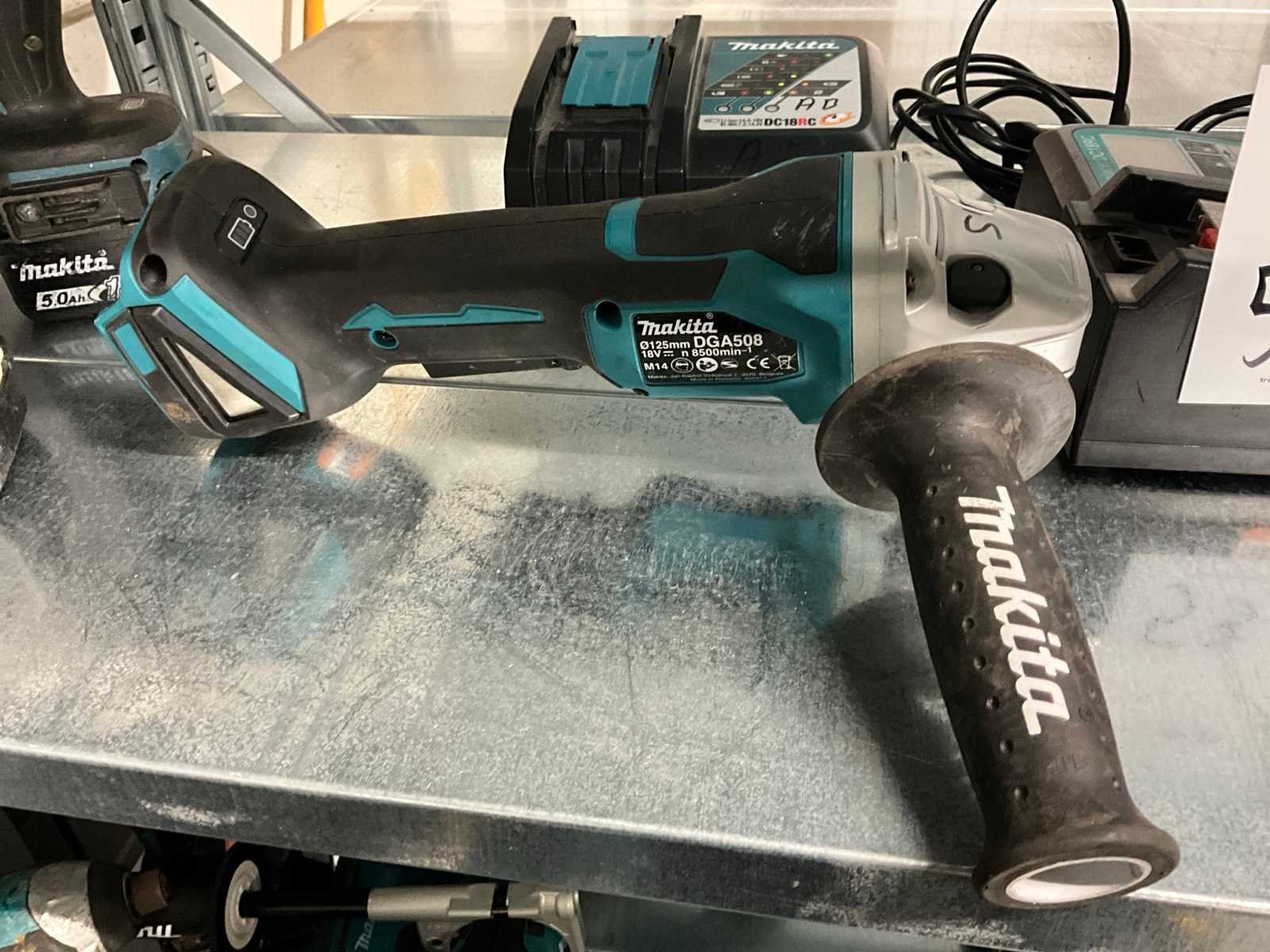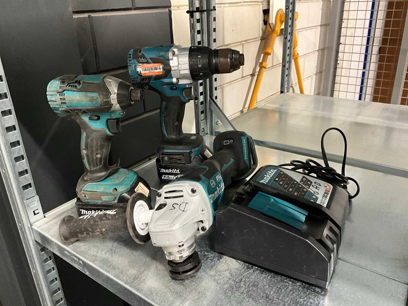 Bestaande uit: Haakse slijpmachine, slagschroefmachine, & schroefboormachine Merk: Makita Accu type: 18 V 5Ah Aantal accu's: 2 Accu lader: true