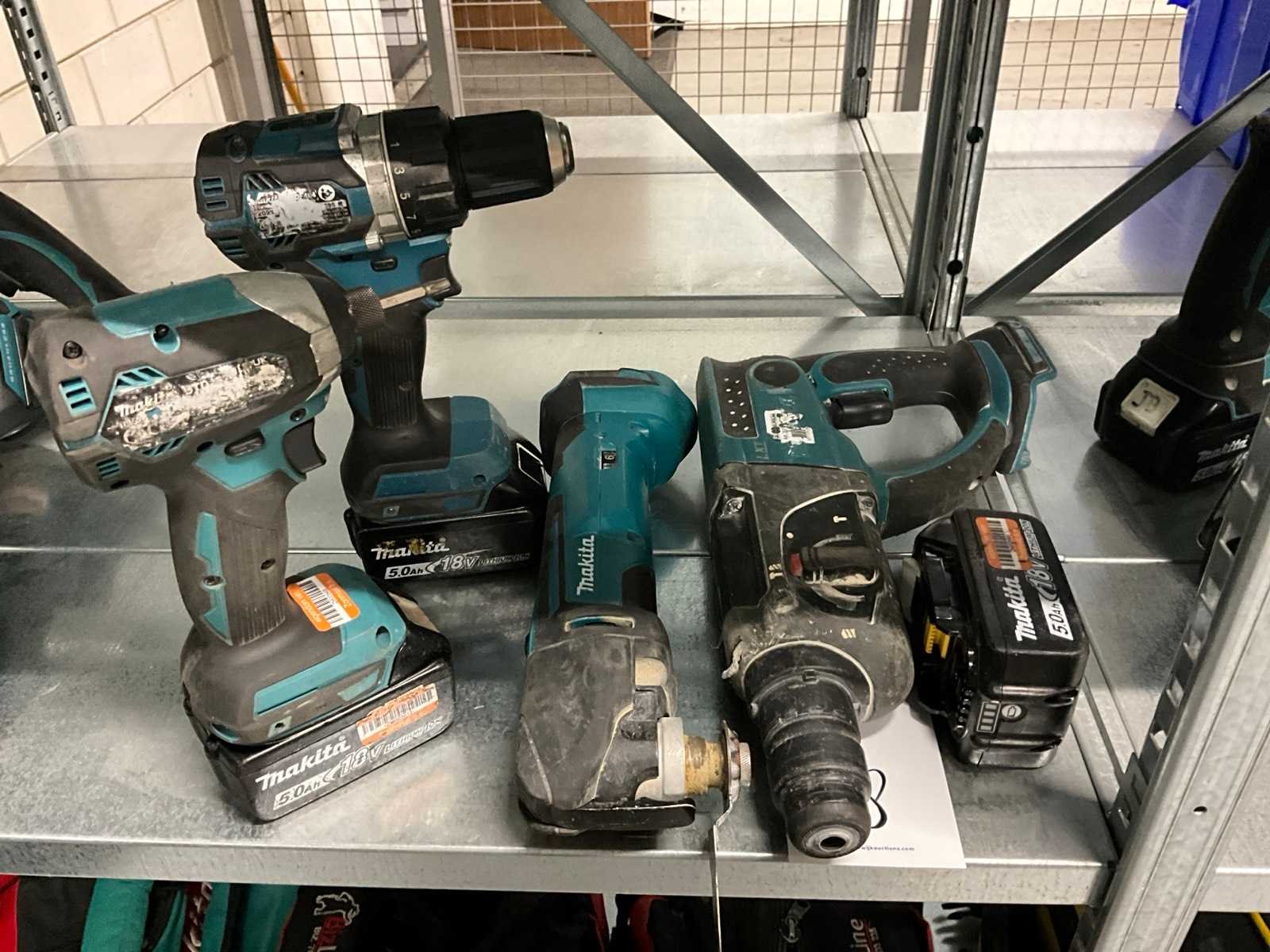 Bestaande uit: slagschroevendraaier, schroefboormachine, multi-tool, combihamer. Merk: Makita Accu type: 18 V 5Ah Aantal accu's: 3