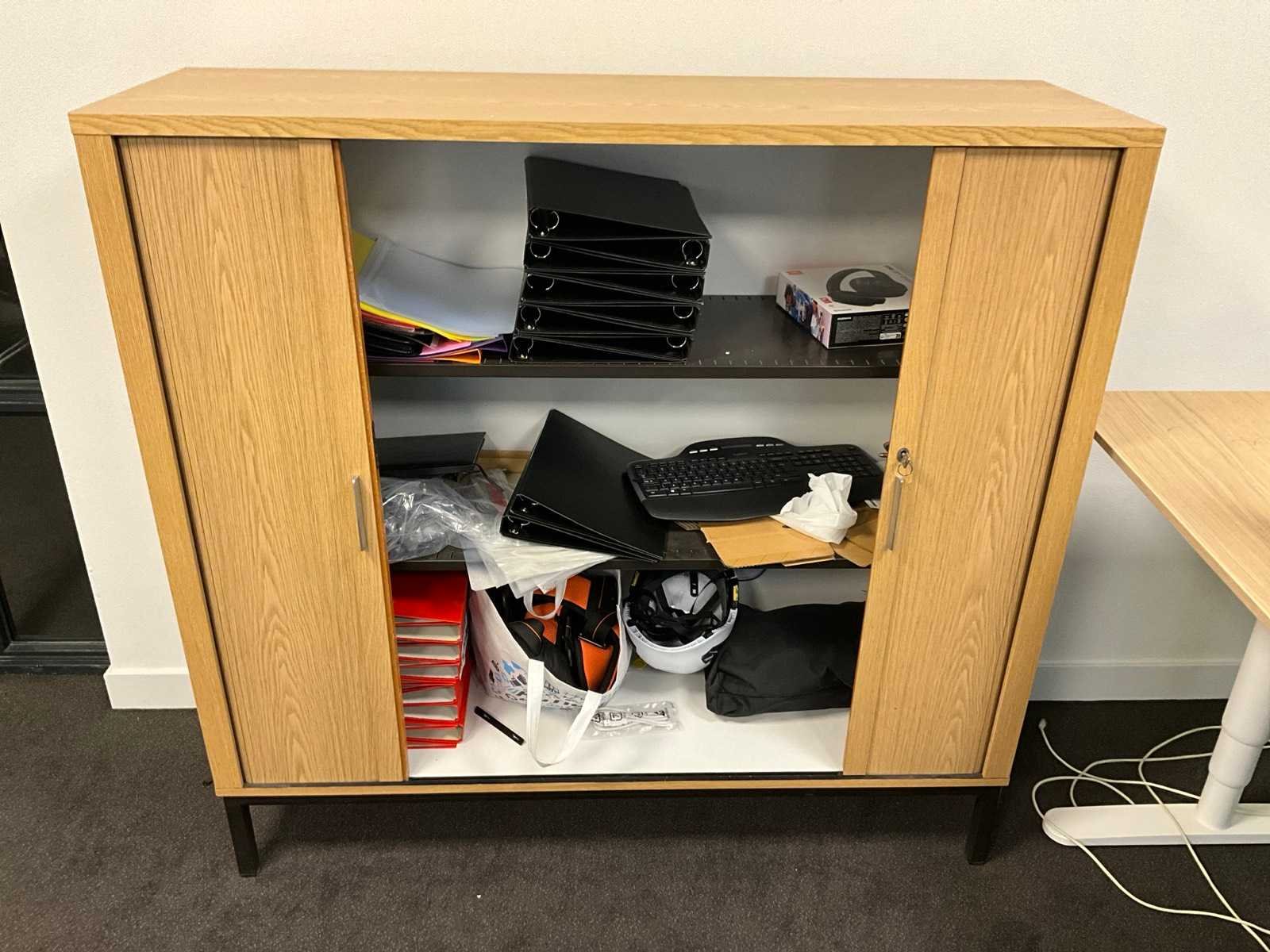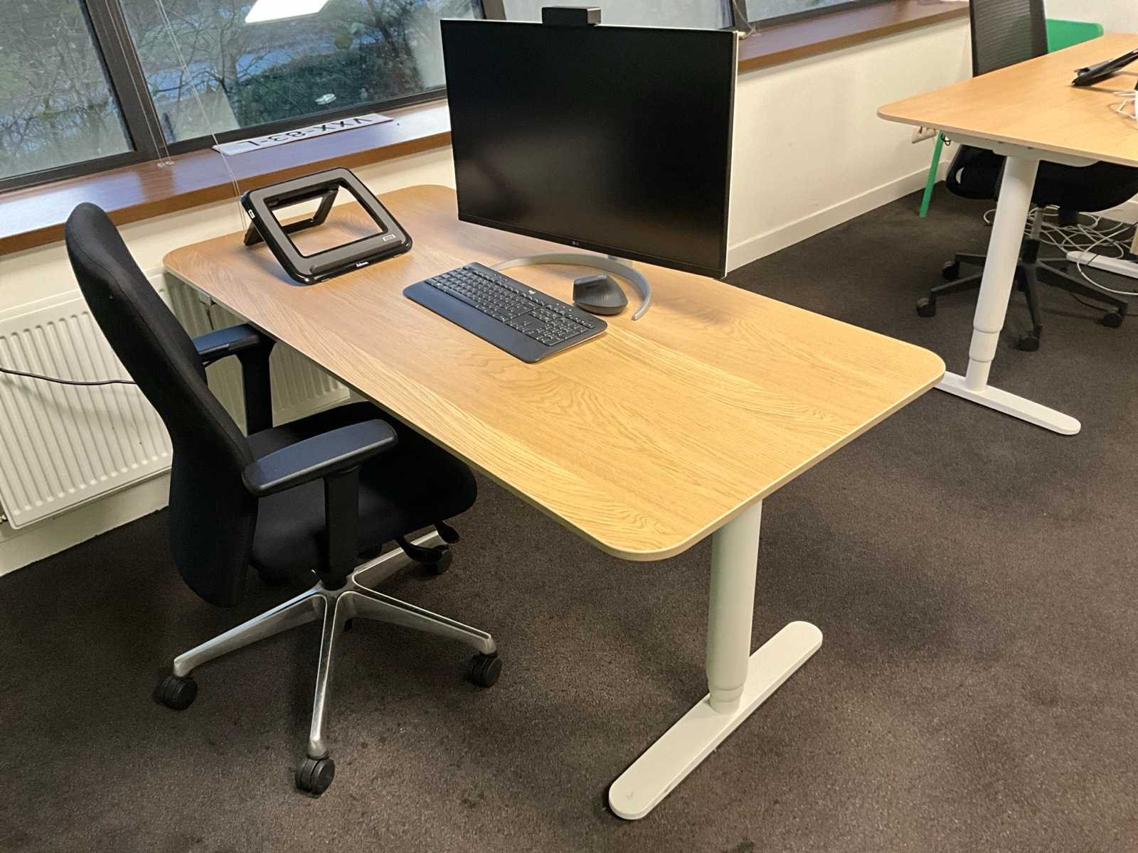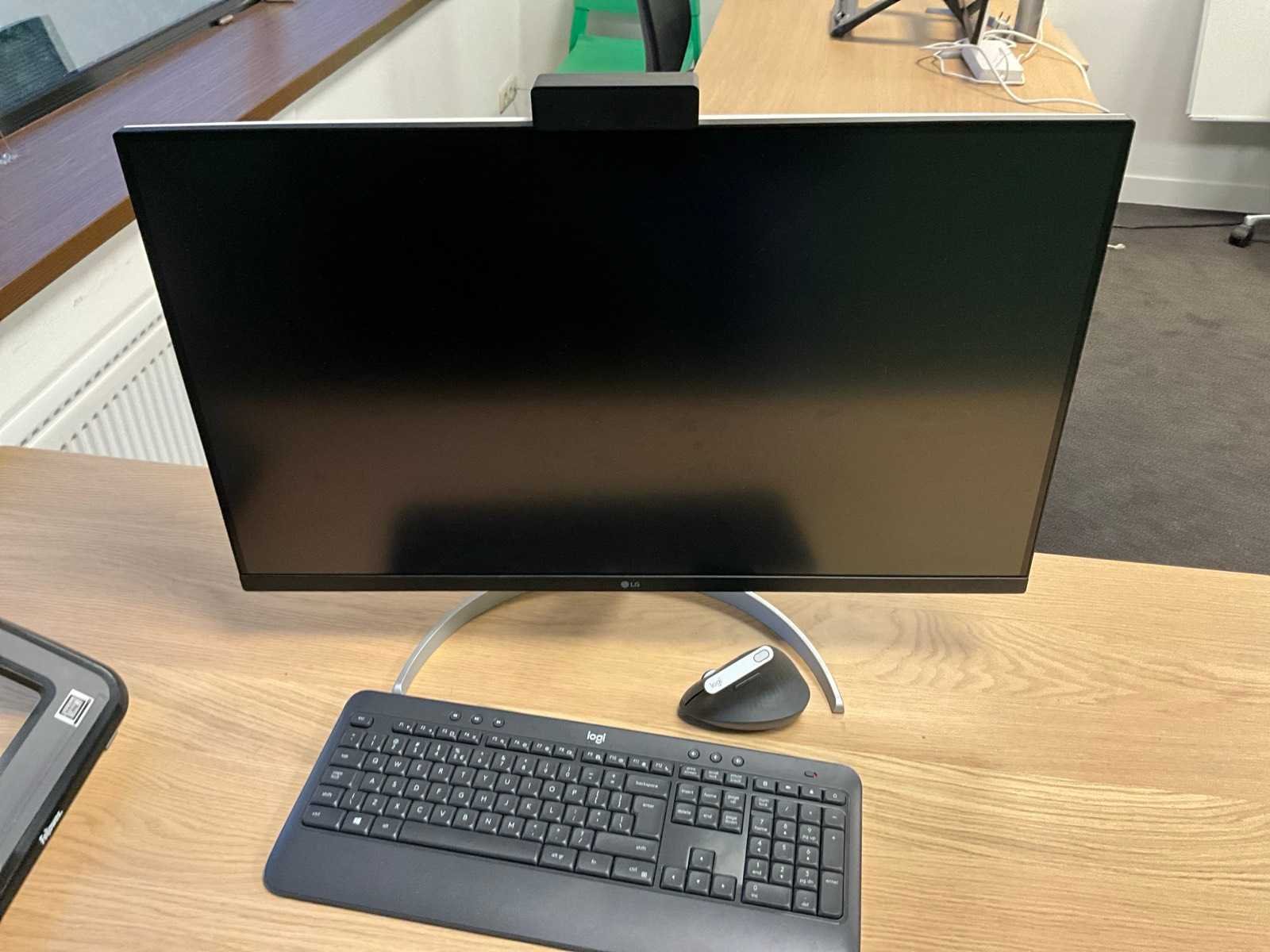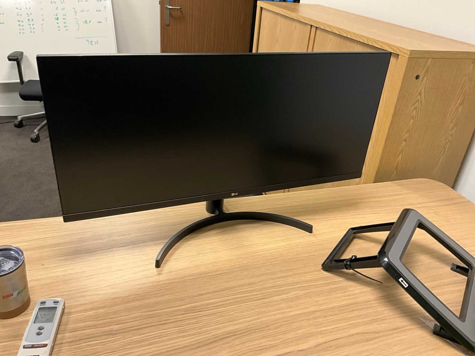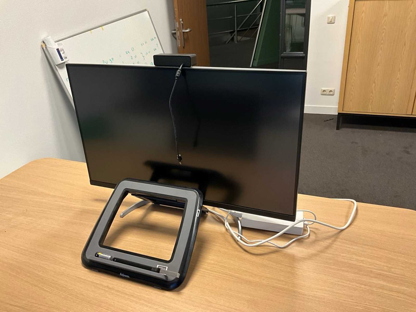 Inclusief 4x bureaustoel, 2x LG monitor 32UQ85R, 1X LG monitor 35WN73A, 1x ladeblok, 1x schuifdeur kast (135x42x130cm) Lengte: 160cm Breedte: 80cm Hoogte: 80cm