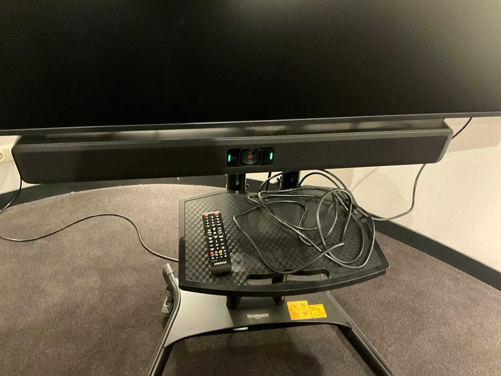 Op een Neomounts onderstel, inclusief Biamp VBC2500 Videobar Merk: Samsung Type: LH75QMCEBGCXEN Displaypoort: 1 HDMI: 3 USB: 2 Beelddiagonaal: 193'' Kleur: Zwart Breedte: 168cm Hoogte: 188cm