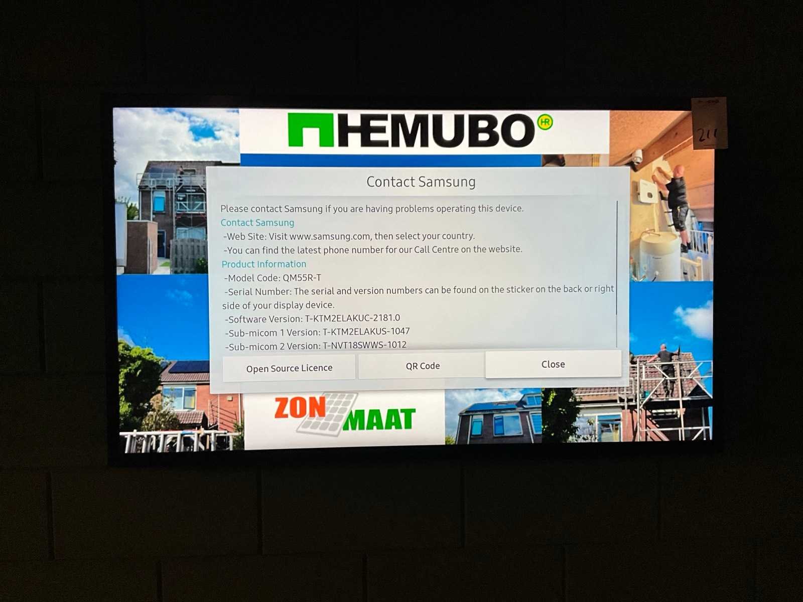 Inclusief muurbeugel Merk: Samsung Model: QM55R-T Kleur: Zwart Breedte: 125cm Hoogte: 73cm