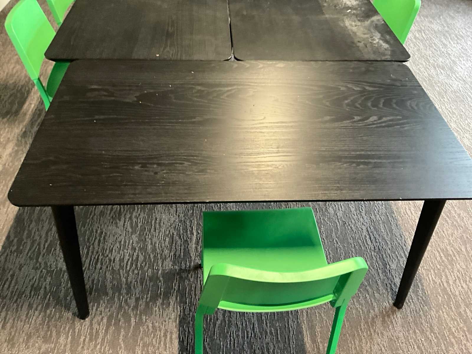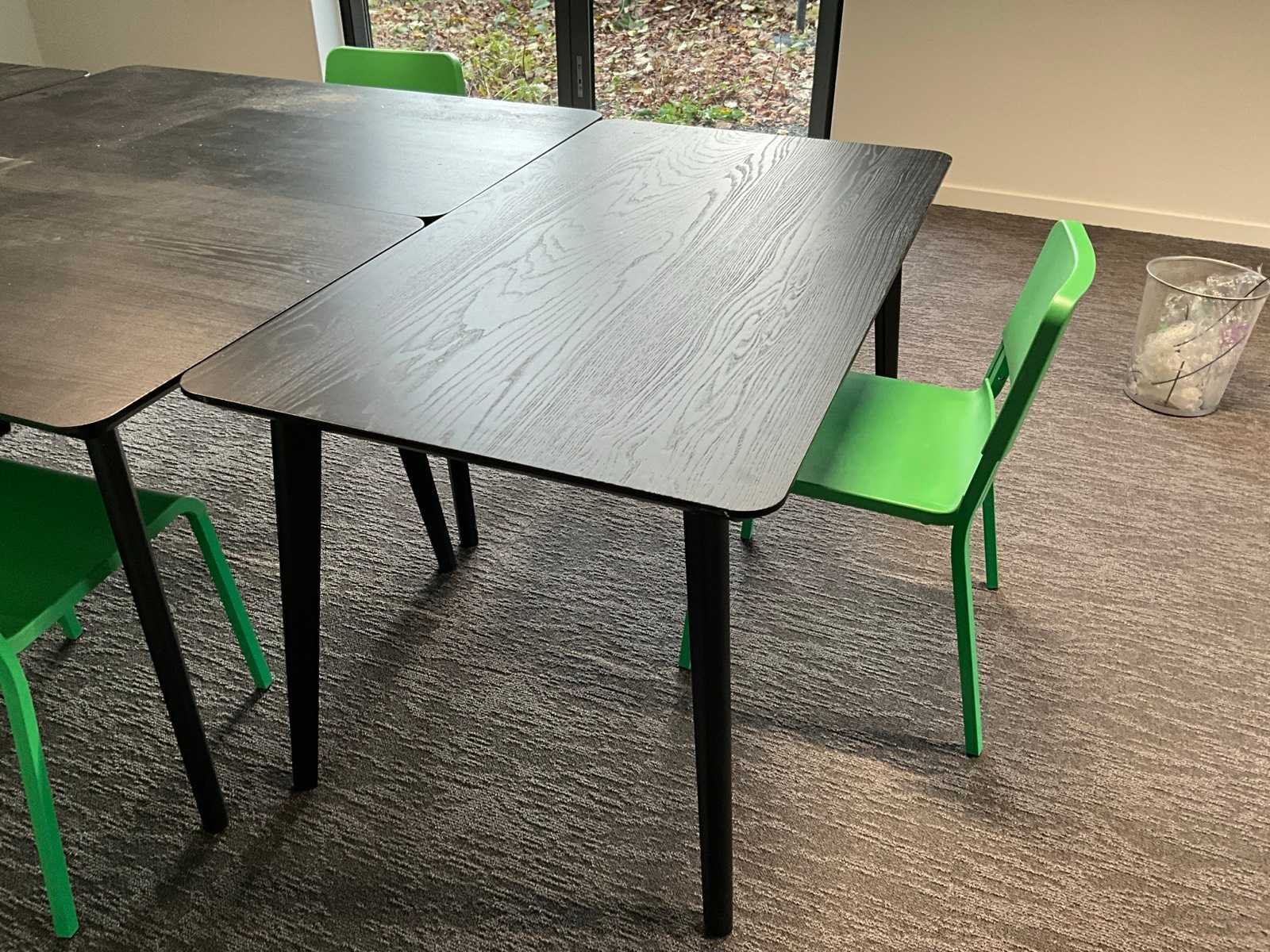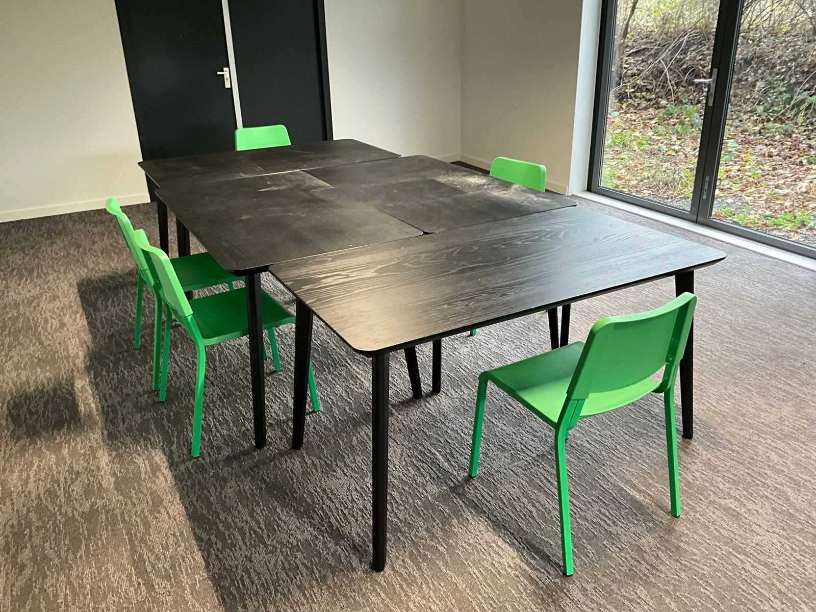 Inclusief 5x kunststof stoel Kleur: Zwart Lengte: 140cm Breedte: 78cm Hoogte: 75cm Materiaal: Hout