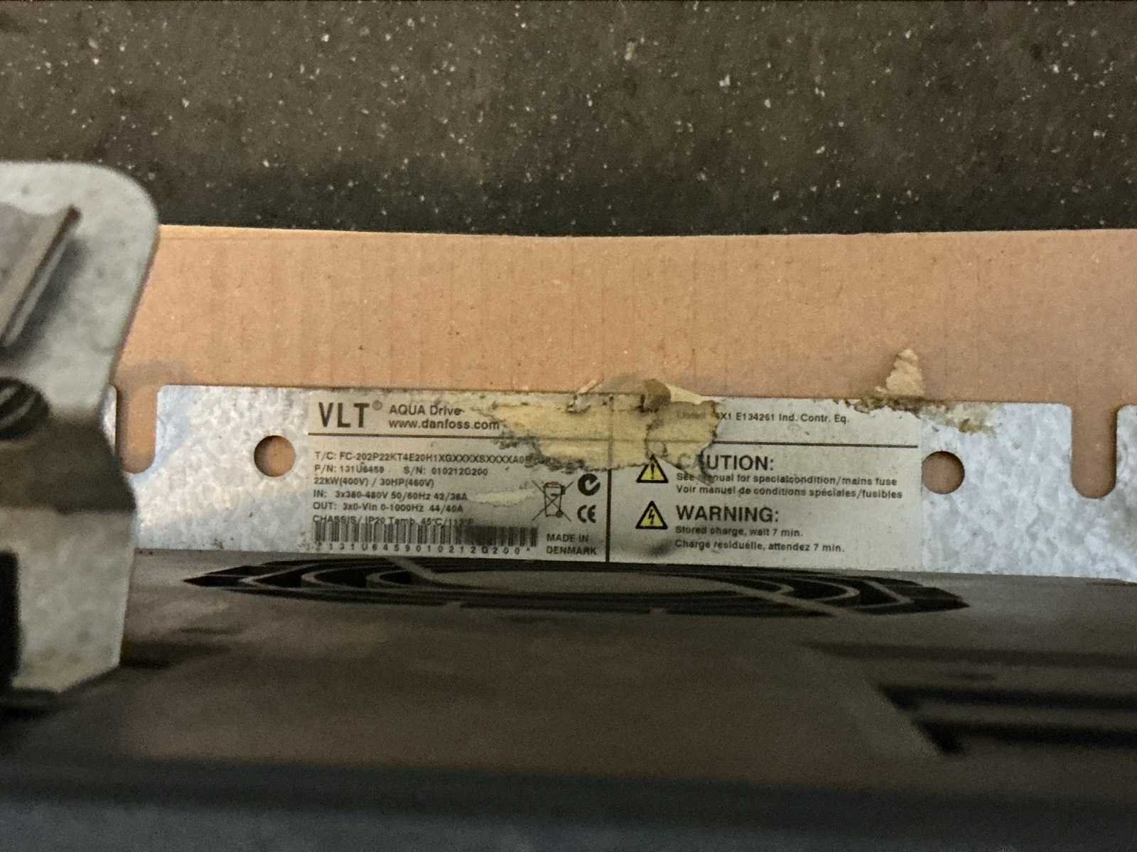 Merk: Danfoss Model: VLT Aqua drive 22 kW Lengte: 24cm Breedte: 23cm Hoogte: 60cm Vermogen (kW): 22kW