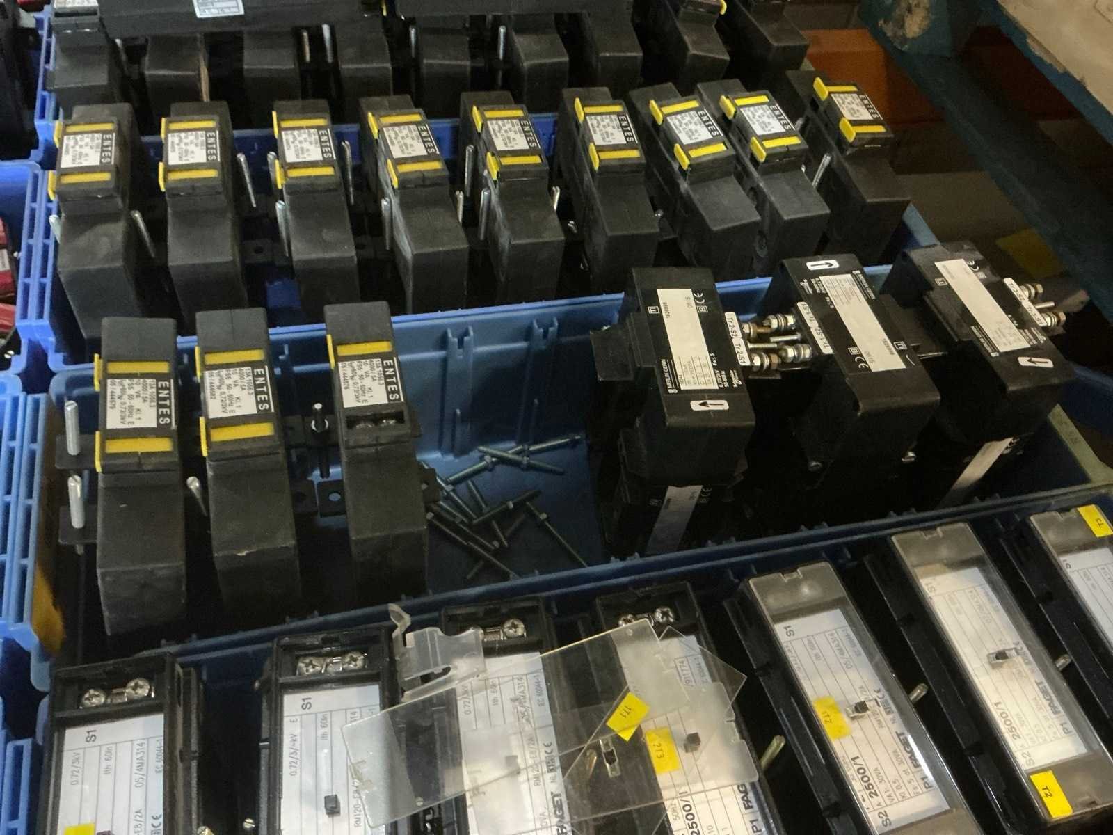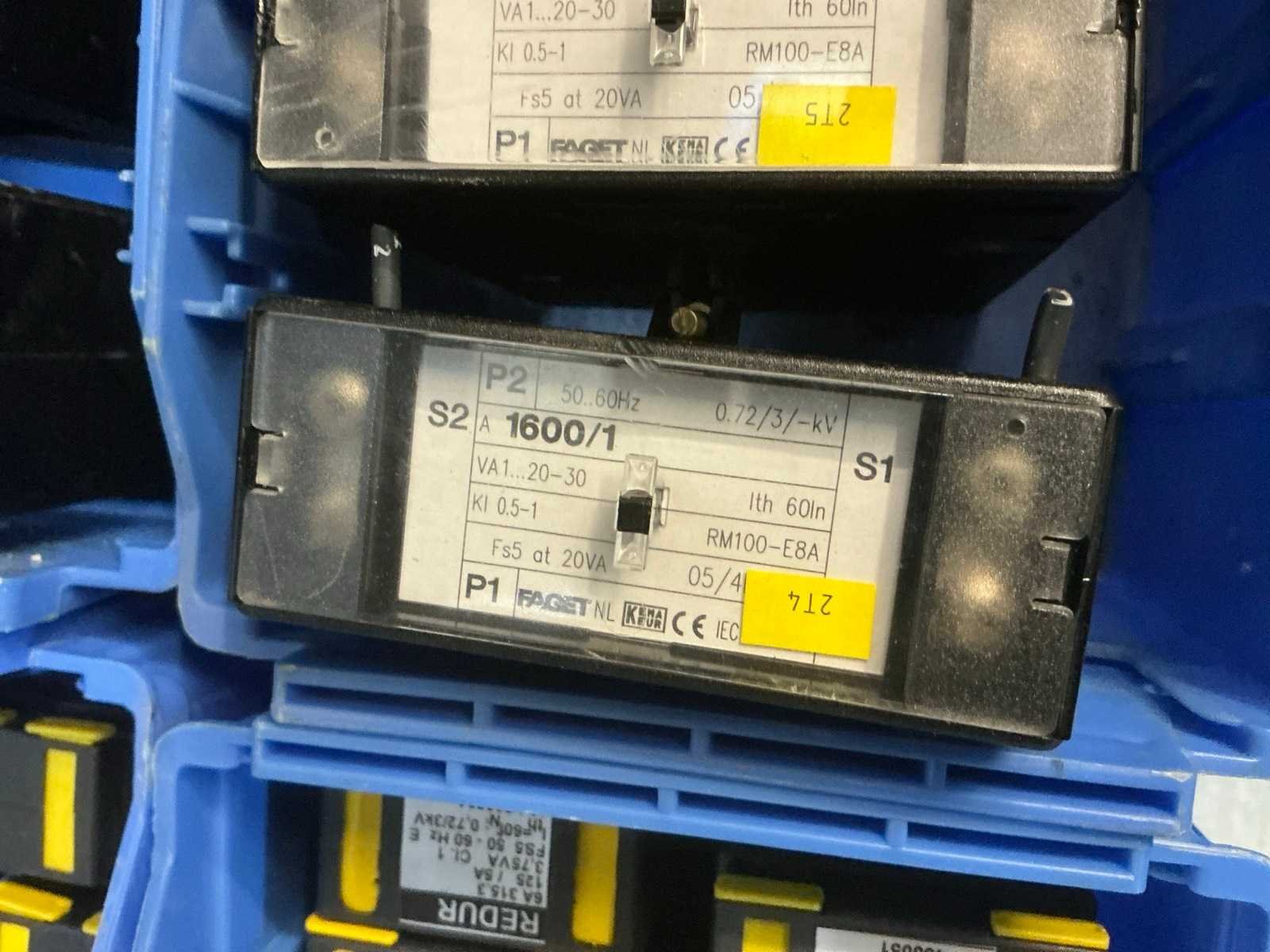 Bestaande uit stroomtransformatoren van verschillende merken en modellen in 7 magazijnbakken. De bakken zijn niet inbegrepen. Merk: Entes / Faget