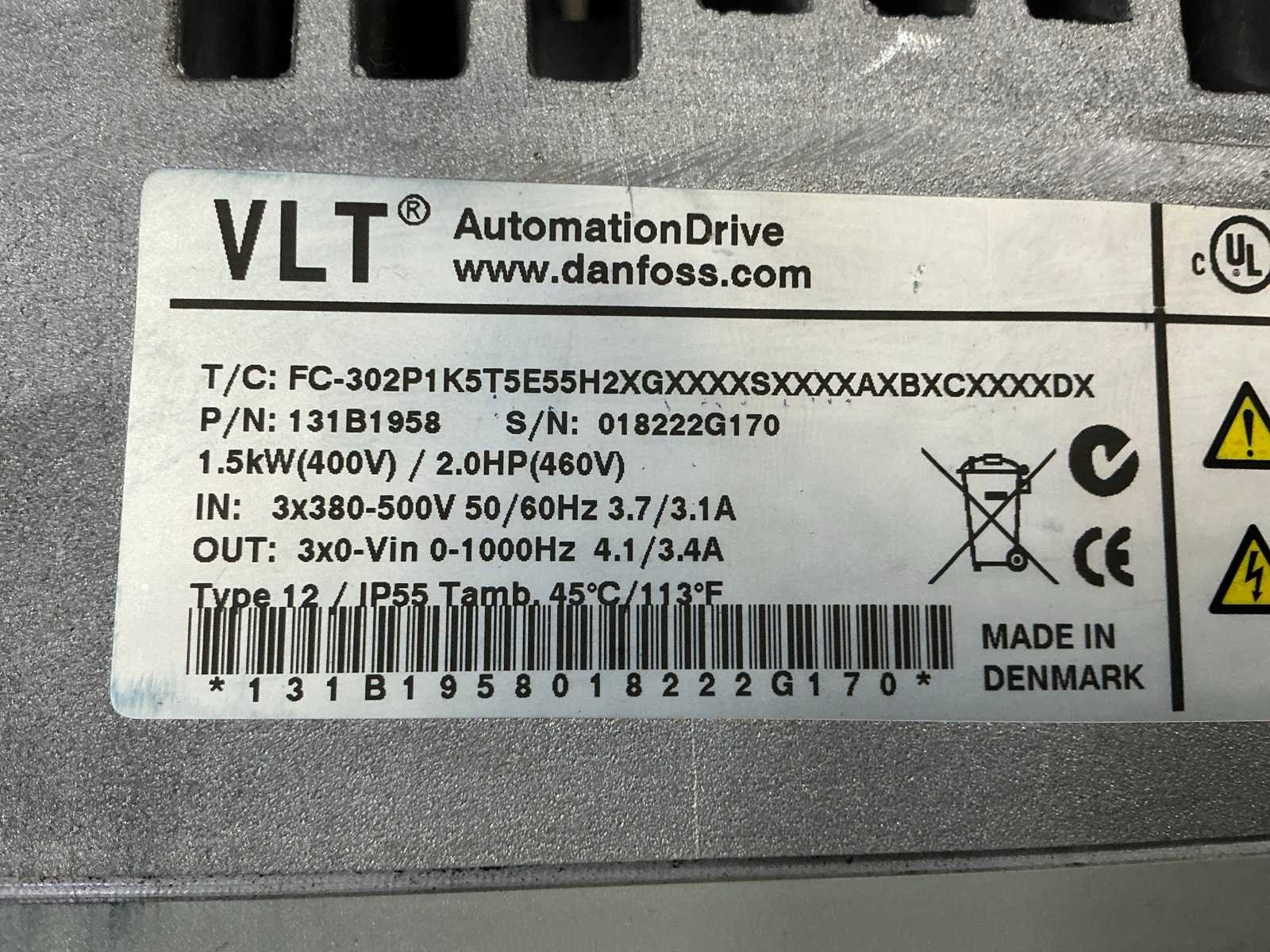 3x380/500V, 1,5Kw 2Hp Merk: DANFOSS Model: VLT AutomationDrive FC302 1.5kW 131B1958 Lengte: 20cm Breedte: 23cm Hoogte: 45cm Vermogen (kW): 1.5kW