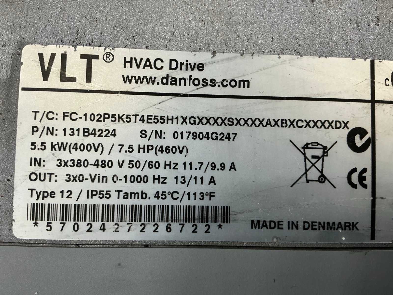 3x380/480, 5,5Kw 7,5Hp Merk: DANFOSS Model: VLT HVAC Drive 5,5 kW Lengte: 20cm Breedte: 23cm Hoogte: 45cm Vermogen (kW): 5.5kW