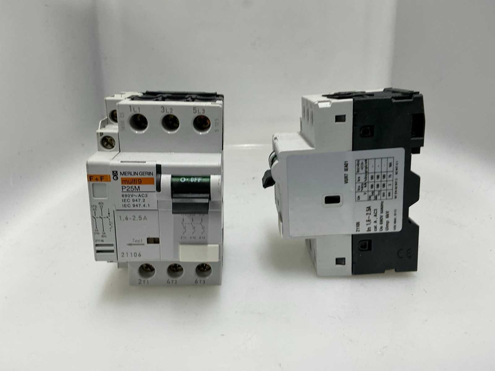 3-polig laag spanningsstroomonderbreker, 1,6-2,5 A Merk: MERLIN GERIN Model: Multi 9 Lengte: 7cm Breedte: 6cm Hoogte: 9cm
