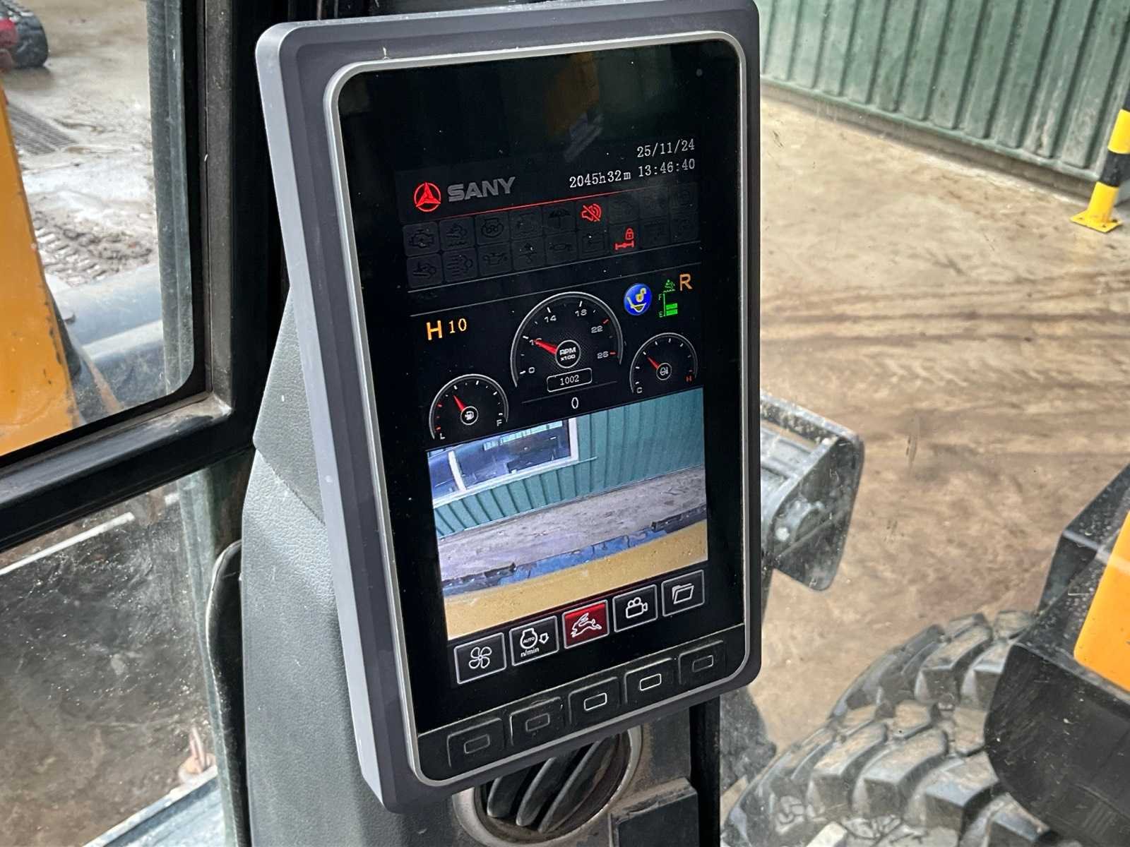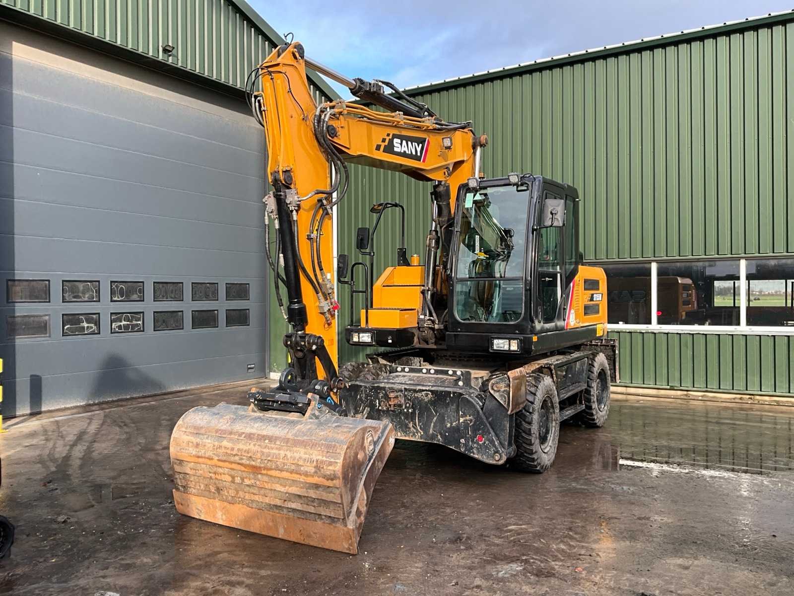 Voorzien van “GP” snelwissel; hydraulische steunpoten; camera Merk: SANY Type: SY155W Bouwjaar: 2023 Serienummer: SY0158CC2968 Kenteken: T-51-FZX Merk motor: Deutz Motorvermogen (kW): 115kW Aantal cilinders: 4 Brandstof: diesel Bedrijfsgewicht: 16200kg Max. werkbereik: 8900mm Max. graafdiepte: 5400mm Met graafbak: true Graafbak afm. l: 1700mm Graafbak afm. b: 1000mm Graafbak afm. h: 500mm Bandenmaat: 10.00-20 Cabine: true Afgelezen urenstand: 2050 Totale afmeting L: 7000mm Totale afmeting Breedte: 2550mm Totale afmeting Hoogte: 4000mm