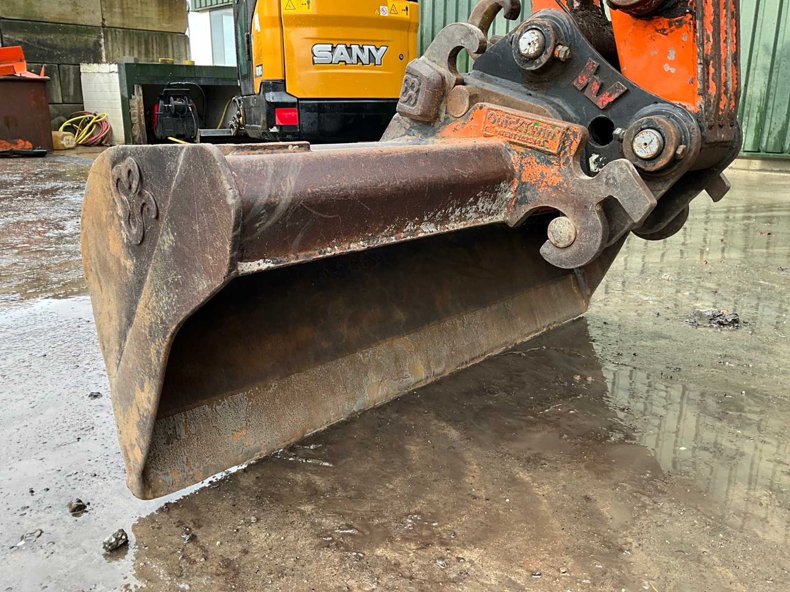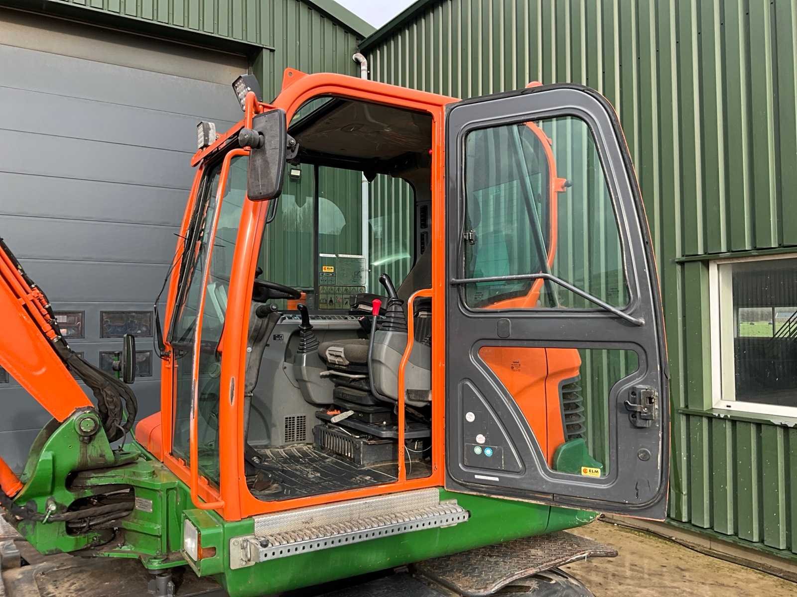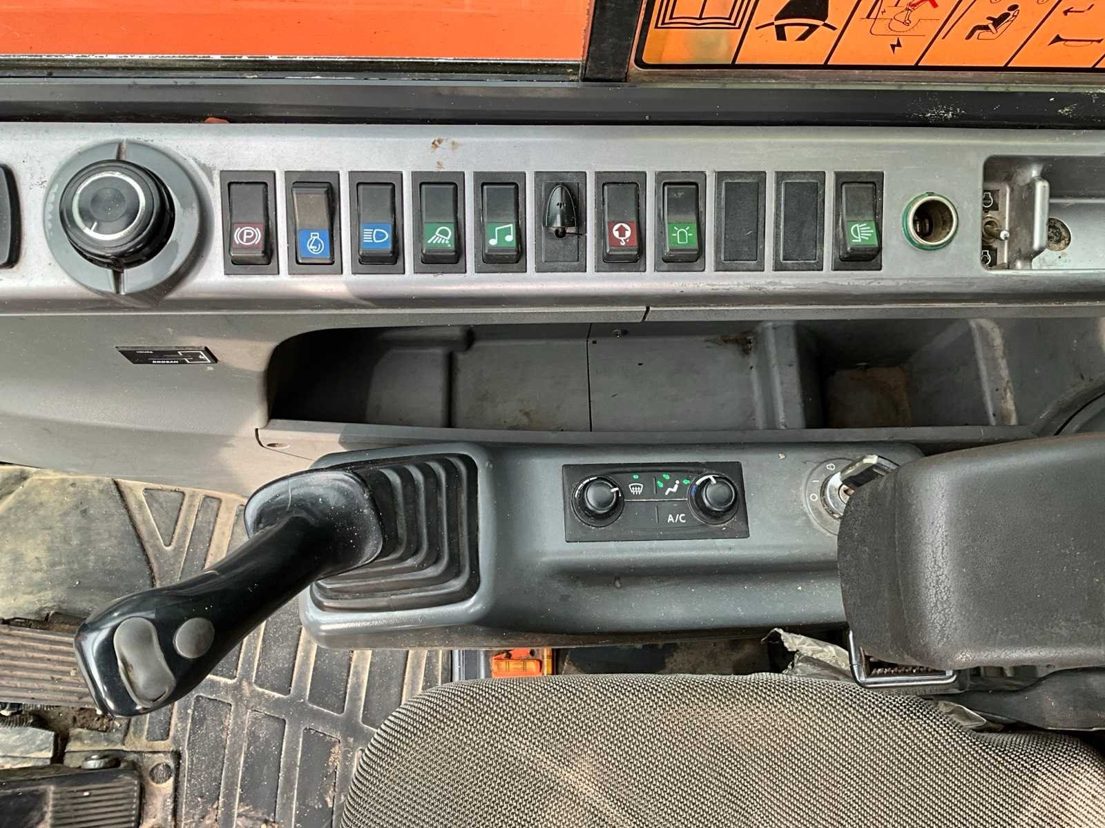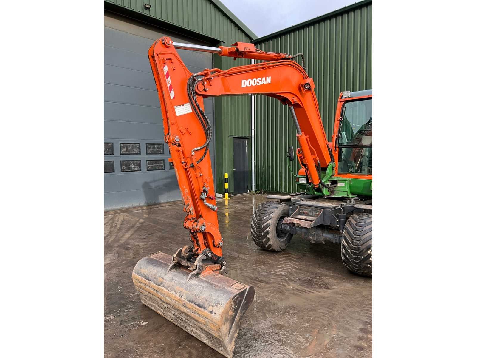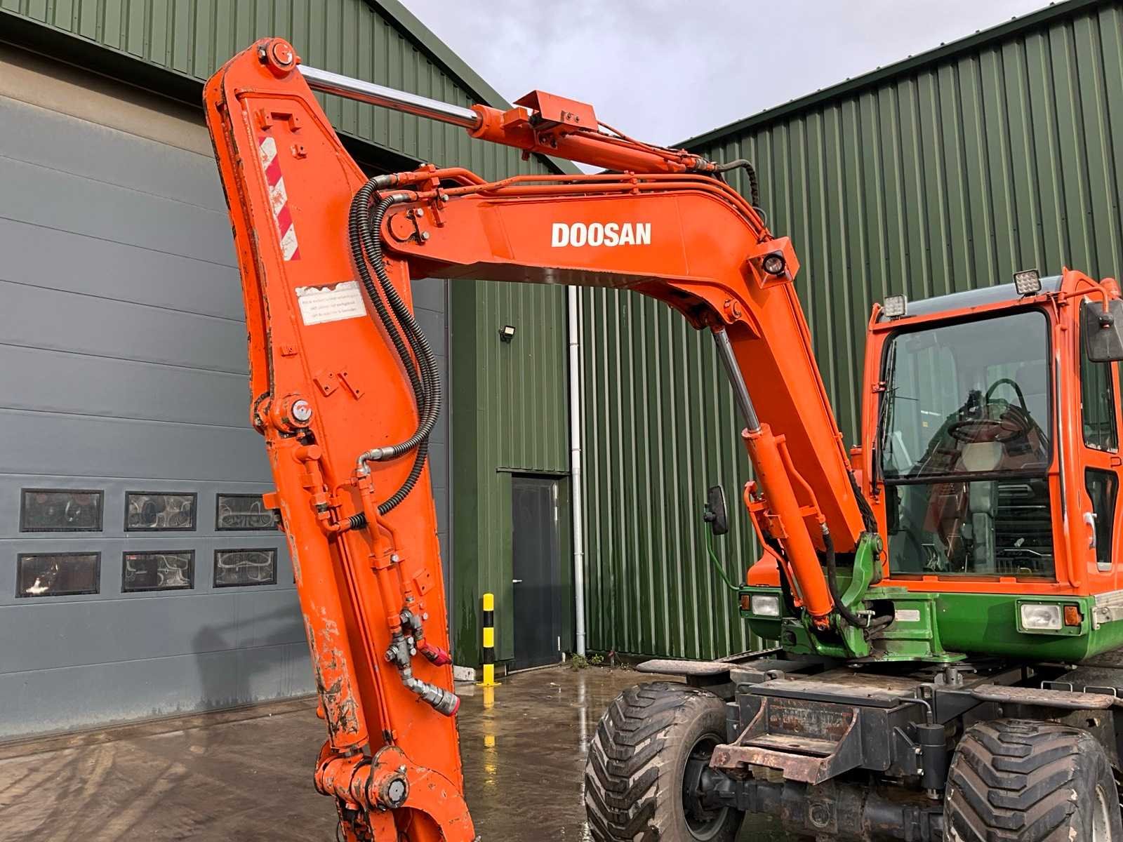 Merk: Doosan Type: DX55W Bouwjaar: 2014 Serienummer: DHKCEWAFAE6007863 Kenteken: TGB-99-J Merk motor: Yanmar Motorvermogen (kW): 42kW Aantal cilinders: 4 Brandstof: diesel Bedrijfsgewicht: 5930kg Max. werkbereik: 5930mm Max. graafdiepte: 3500mm Met graafbak: true Graafbak afm. l: 1500mm Graafbak afm. b: 600mm Graafbak afm. h: 300mm Bandenmaat: 500/50-17 Cabine: true Afgelezen urenstand: 11030 Totale afmeting L: 6000mm Totale afmeting Breedte: 2200mm Totale afmeting Hoogte: 3200mm