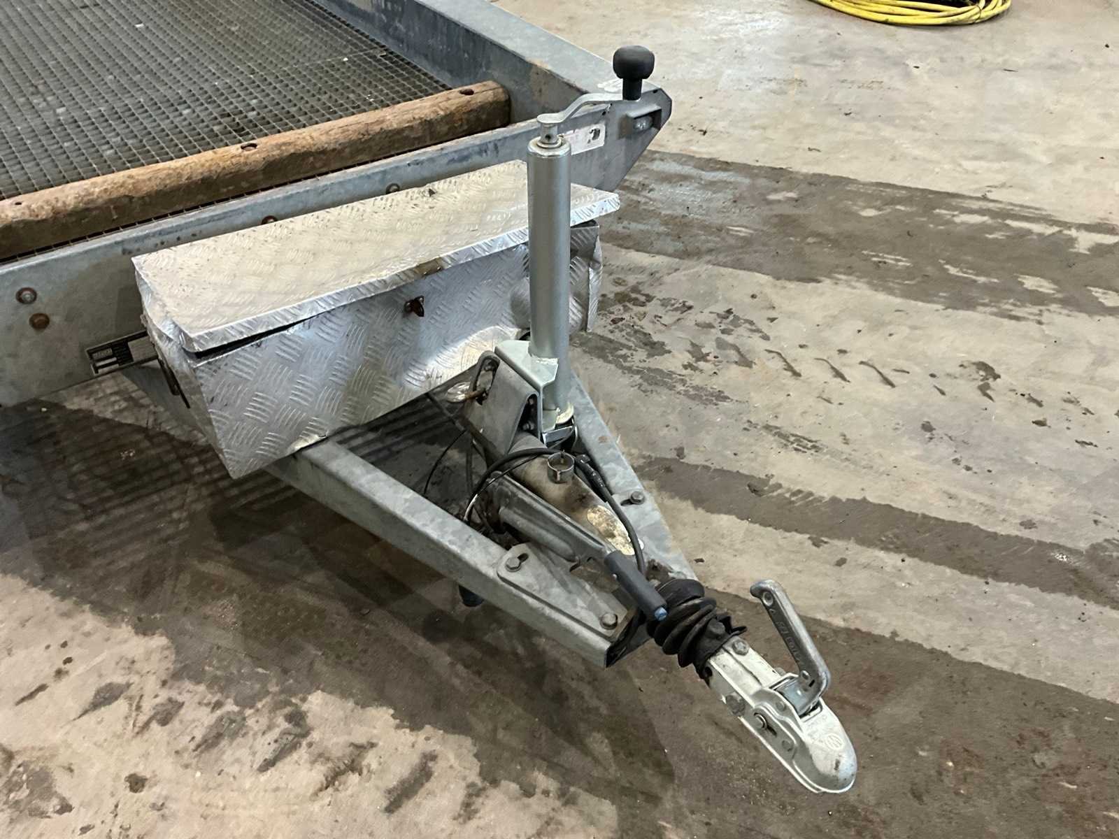 Voorzien van stalen rooster bodem; oprijplaten en opbergkist Merk: Hapert Type: HV2700 Bouwjaar: 2006 Chassisnummer: XLHHV270000675815 Aantal assen: 2 Laadbak afmeting l: 300cm Laadbak afmeting b: 130cm Ledig gewicht: 555kg Laadvermogen: 2145kg Datum eerste toelating: 2006-01-23 Datum eerste toelating (NL): 2006-01-23 Kenteken: WR-LF-47 Hoogte: 166cm Lengte: 425cm Breedte: 170cm