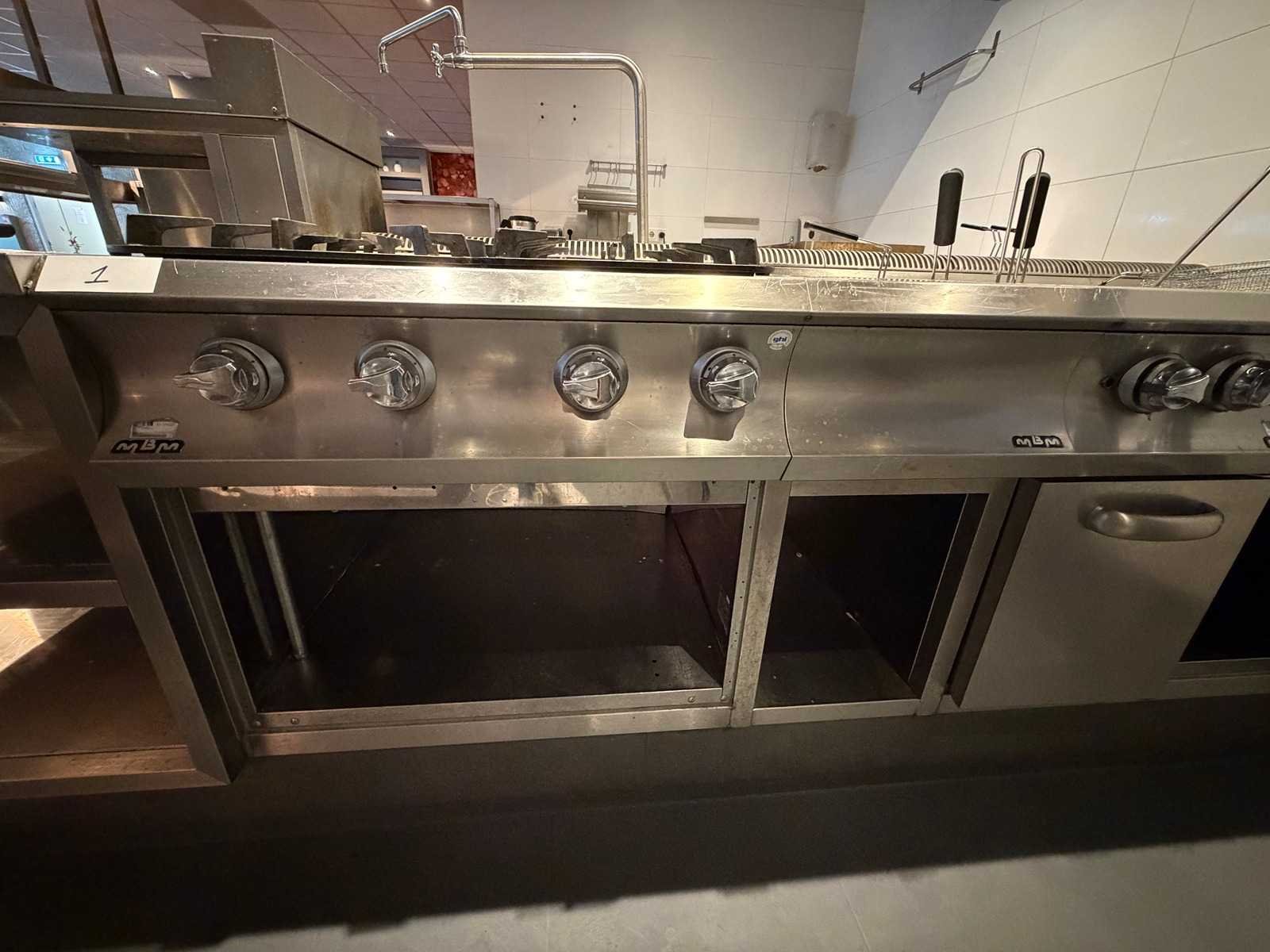 Mbm rvs 4-delig gasfornuis, pastakoker en friteuse opstelling