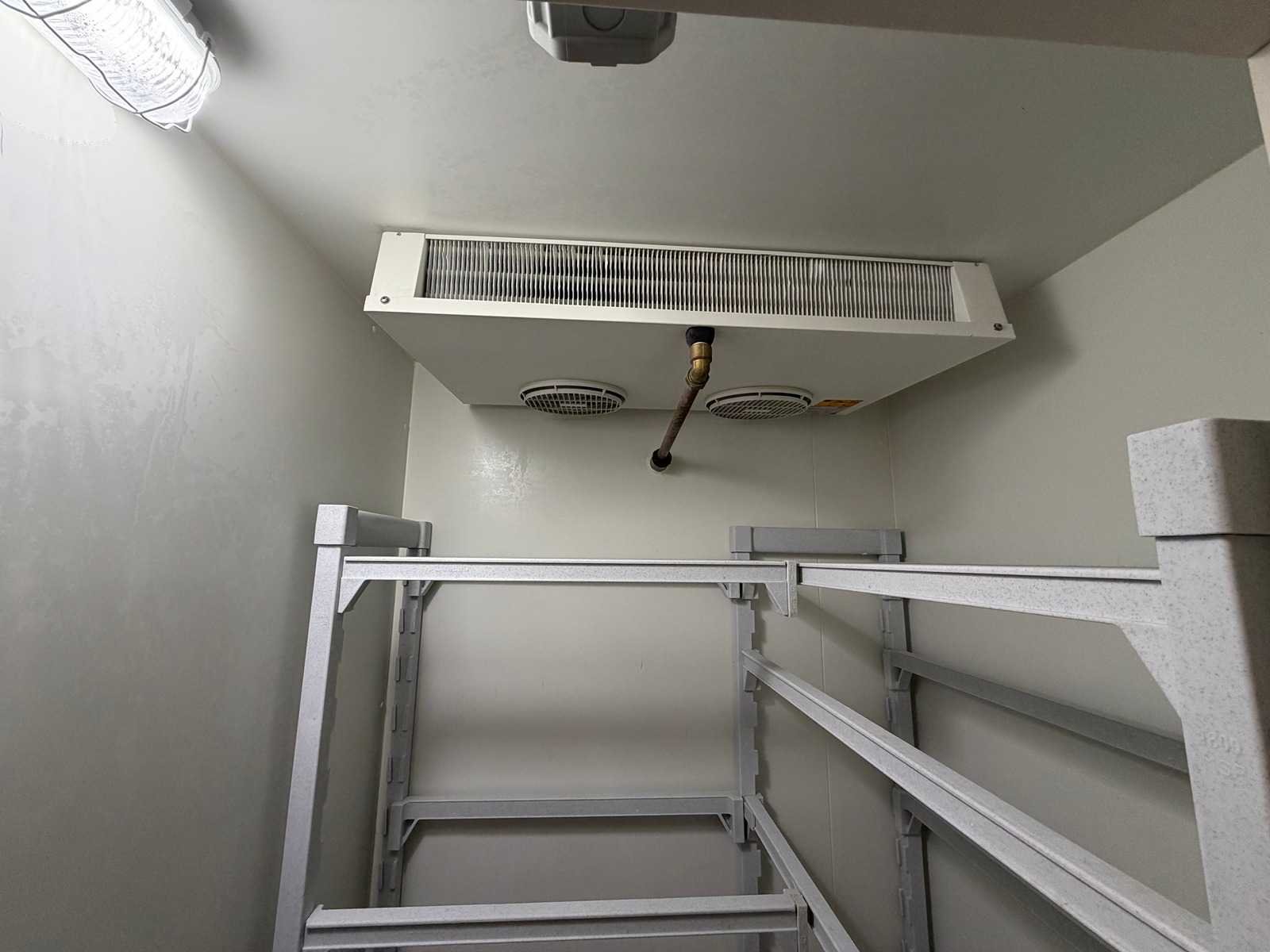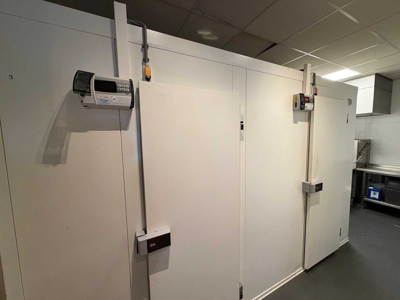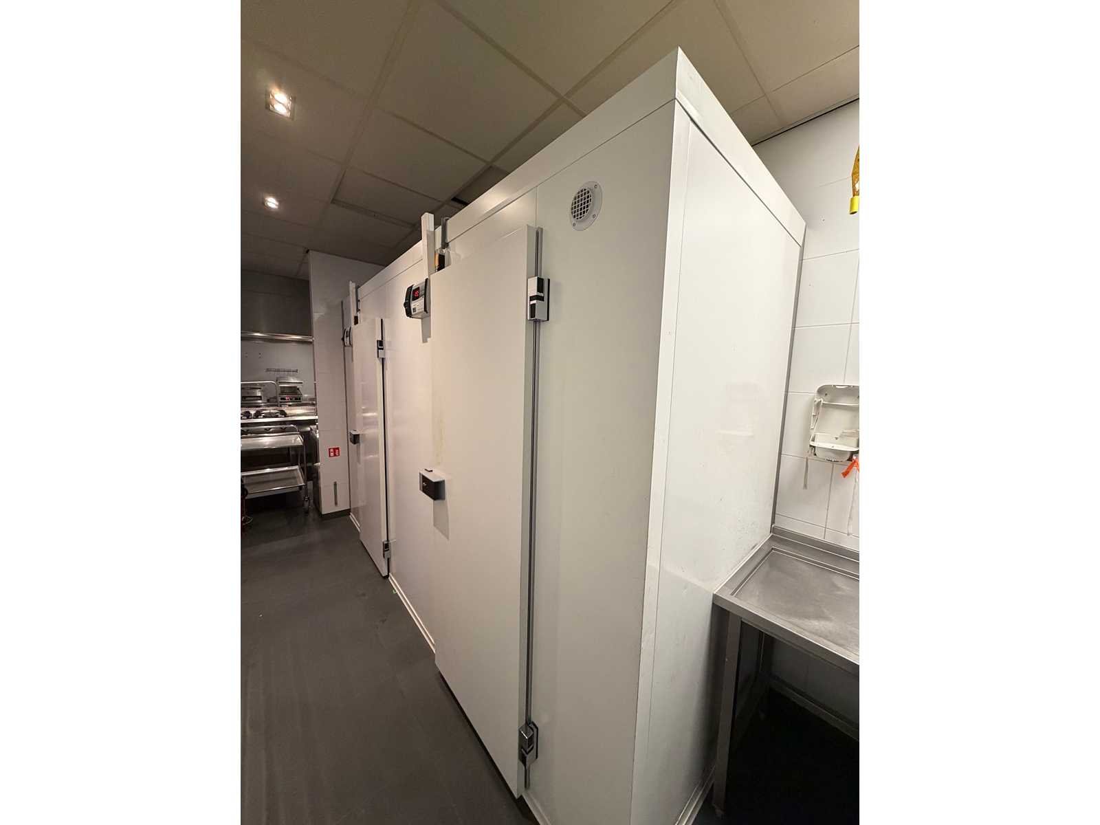 Voorzien van Kelvion Küba DFB 022 Junior verdamper (koelcel) en Kelvion Küba DFBE 022 Junior verdamper (Vriescel). Afmeting Koelcel ca. L240 x B120 x H240 cm en afmeting vriescel ca. L140 x B120 x H240 cm. Inclusief Cambro legbordstelling. Merk: Küba Bouwjaar: 2017 Totale afmeting L: 3800mm Totale afmeting Breedte: 1200mm Totale afmeting Hoogte: 2400mm