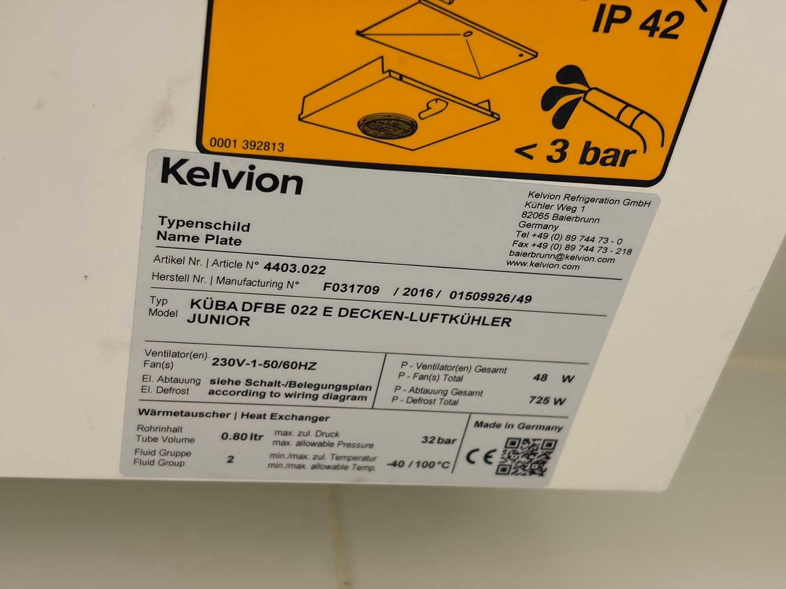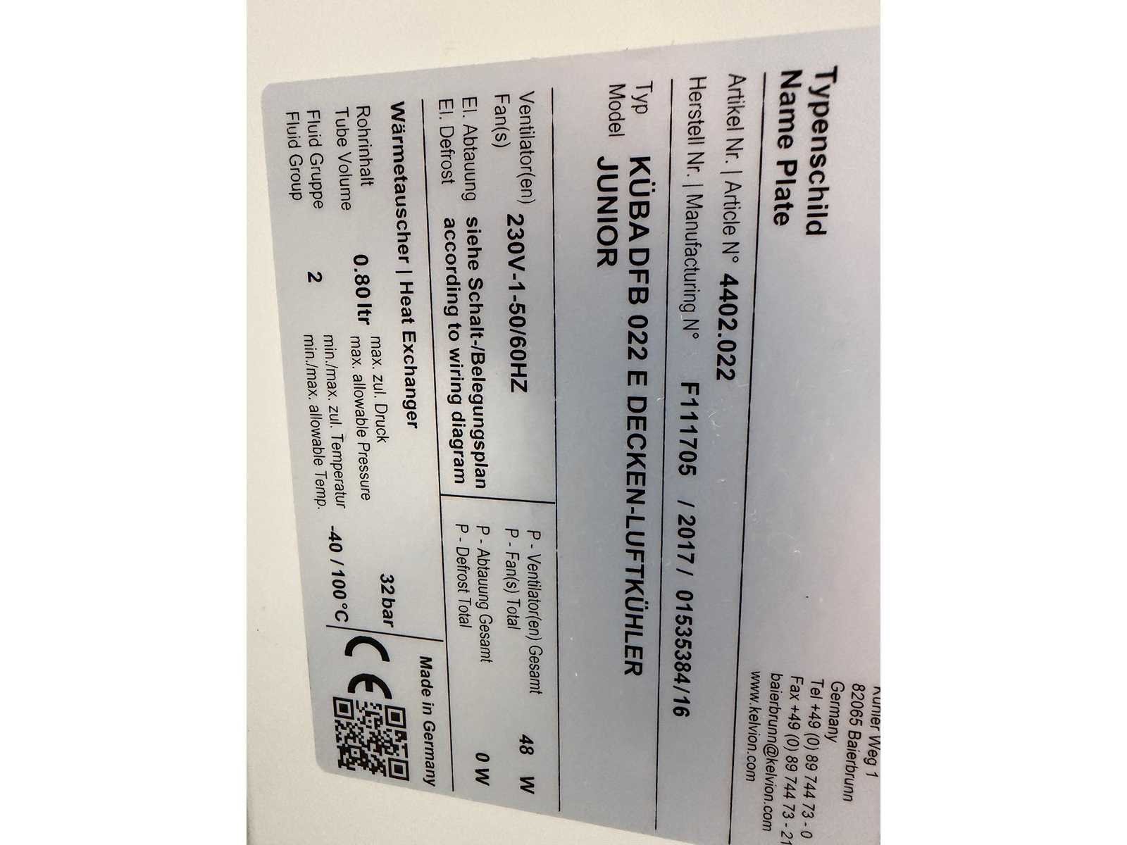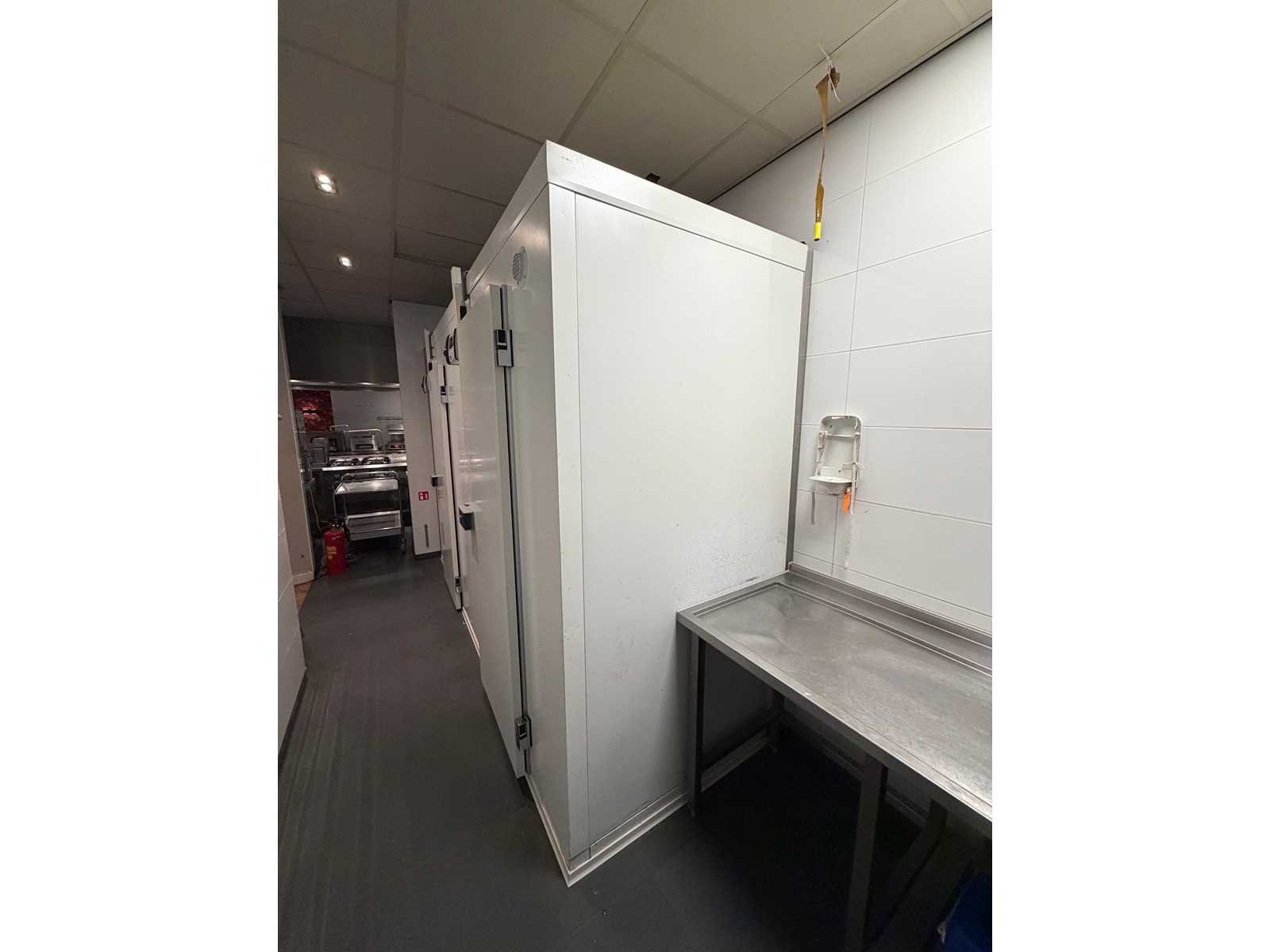Voorzien van Kelvion Küba DFB 022 Junior verdamper (koelcel) en Kelvion Küba DFBE 022 Junior verdamper (Vriescel). Afmeting Koelcel ca. L240 x B120 x H240 cm en afmeting vriescel ca. L140 x B120 x H240 cm. Inclusief Cambro legbordstelling. Merk: Küba Bouwjaar: 2017 Totale afmeting L: 3800mm Totale afmeting Breedte: 1200mm Totale afmeting Hoogte: 2400mm