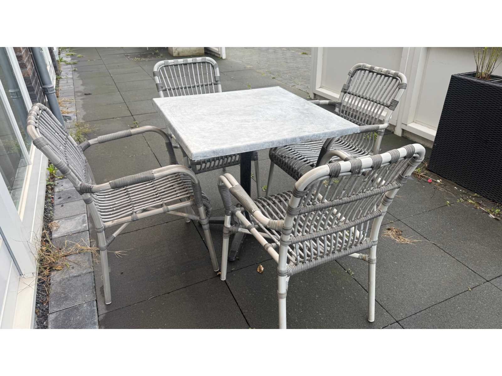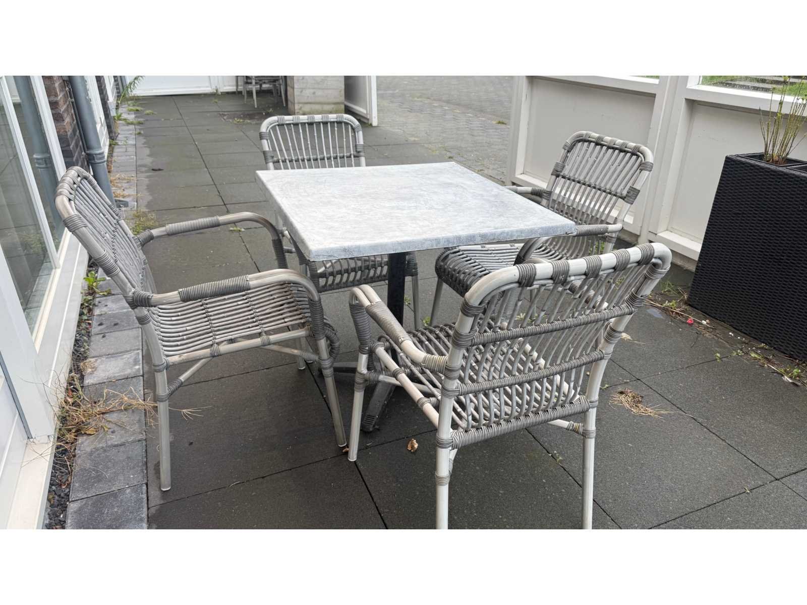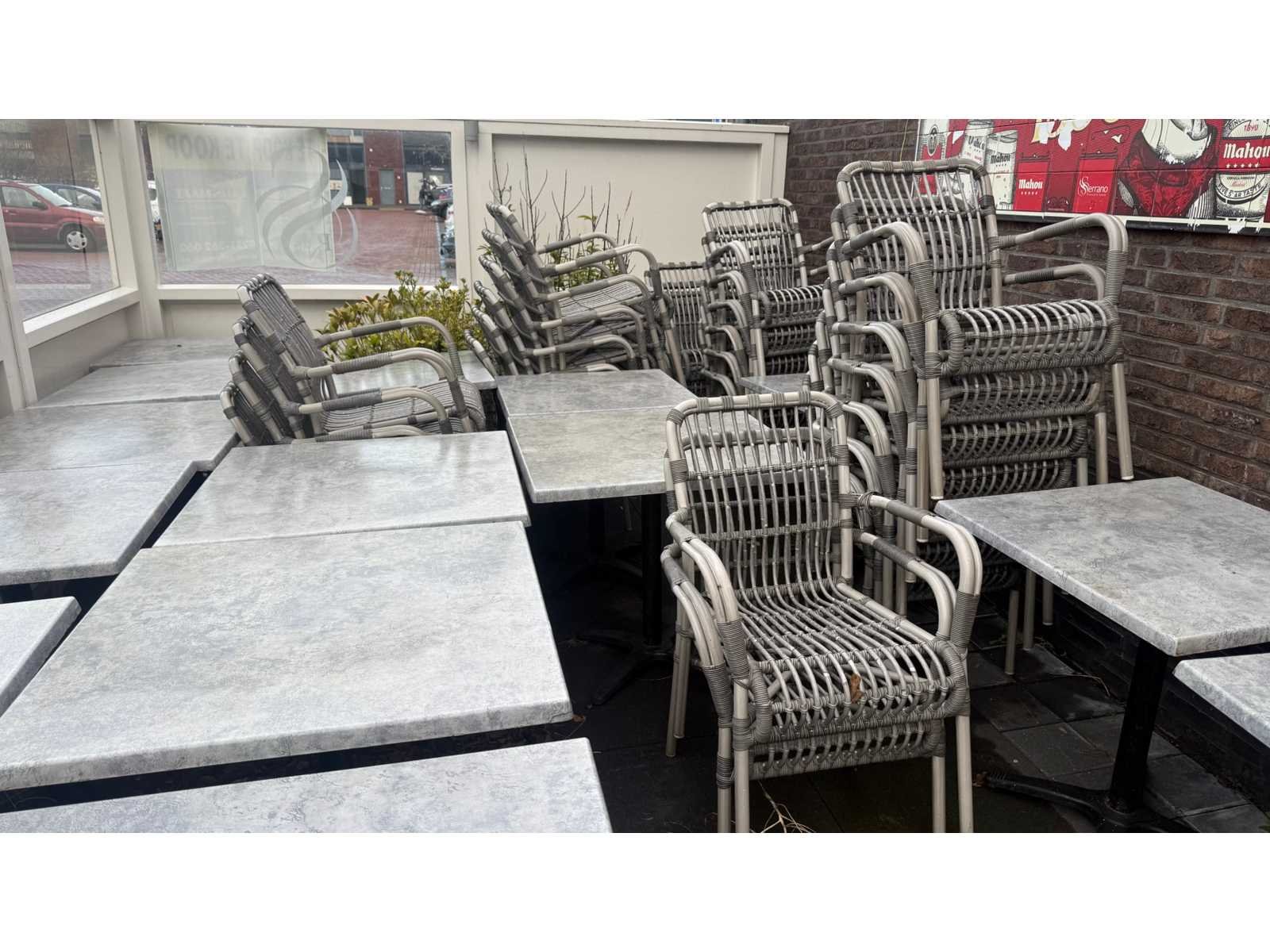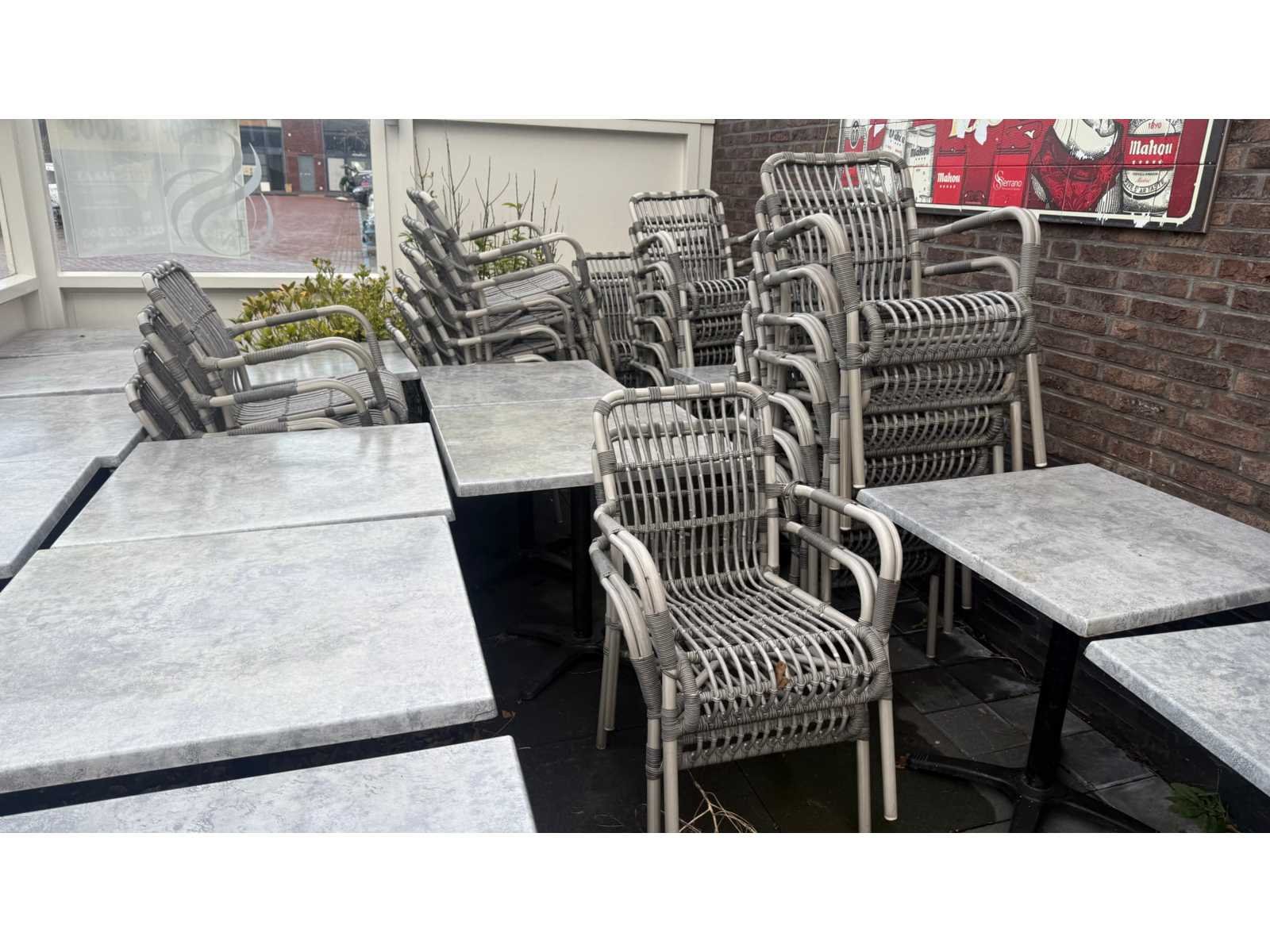 Werzalit compleet terrasmeubilair bestaande uit 15 tafels en 46 stoelen