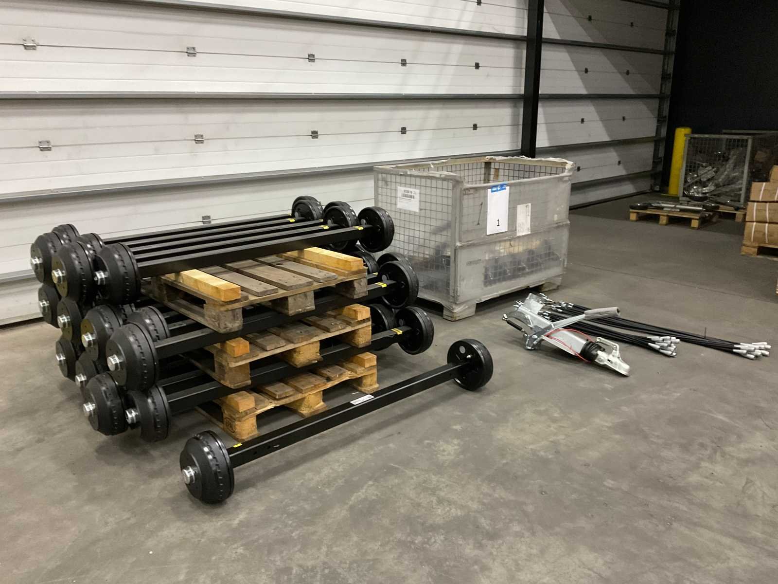 Bestaande uit: 10x oplooprem 35/35.4 ton, maximum massa 1750-3500 kg, maximum kogelgewicht 150 kg, bouwjaar 2023; 20x as 1800 kg Star Pad 1084 bouwjaar 2022; 20x remkabel 800/990; 20x remkabel 1200/1390. Merk: WAP