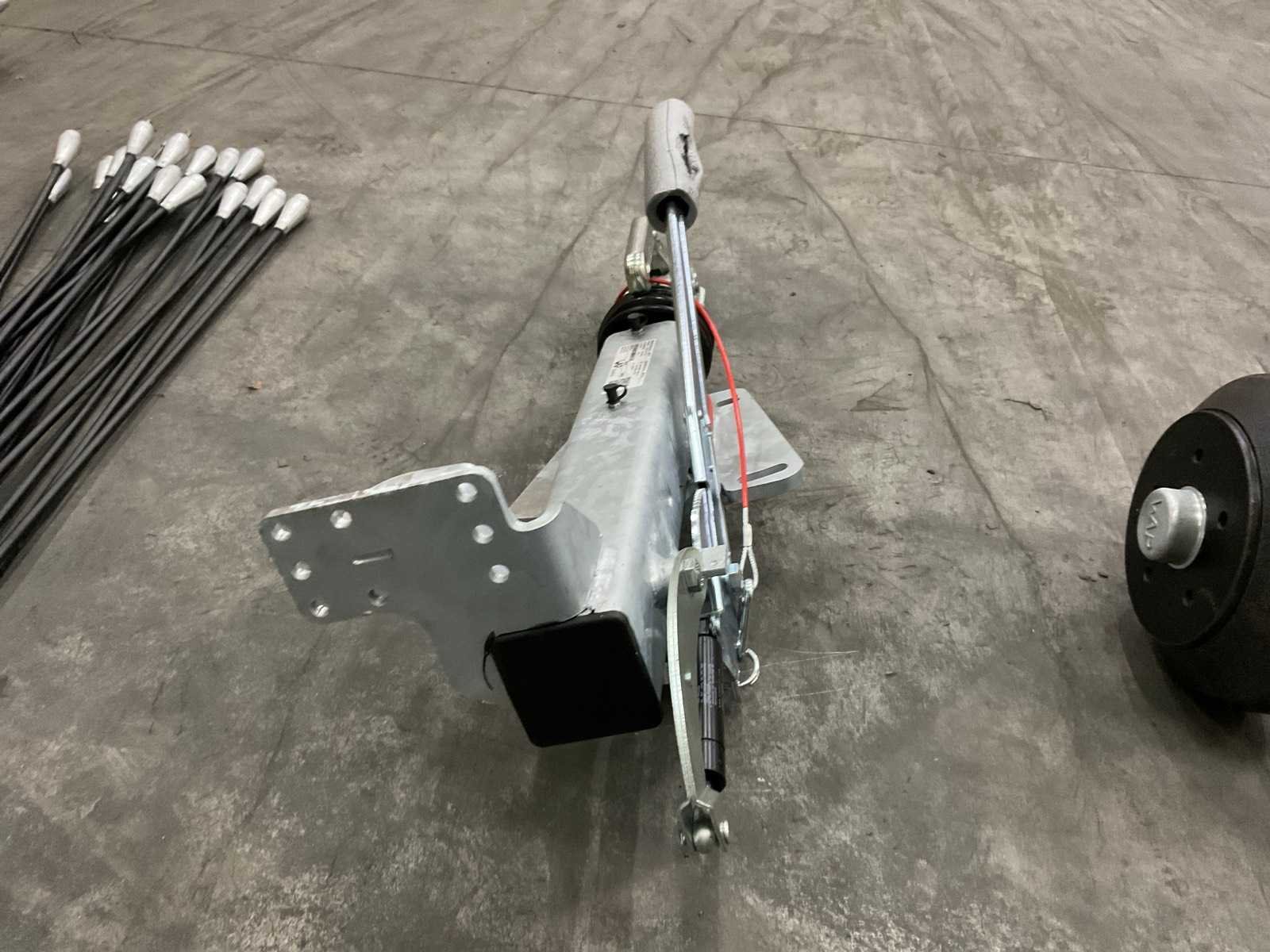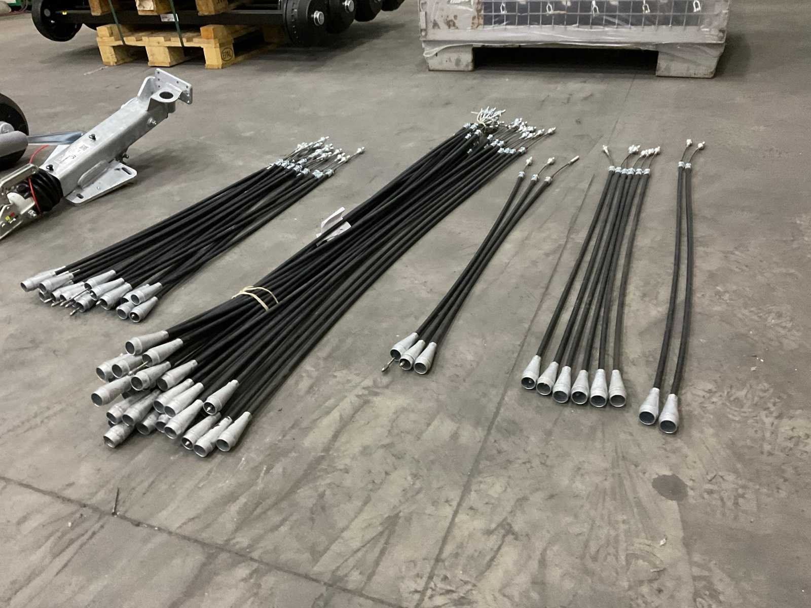 Bestaande uit: 10x oplooprem 35/35.4 ton, maximum massa 1750-3500 kg, maximum kogelgewicht 150 kg, bouwjaar 2023; 30x as 1800 kg Star Pad 1284 bouwjaar 2022; 19x remkabel 800/990; 6x remkabel 900/1090, 3x remkabel 1000/1190, 2x remkabel 1100/1290, 30x remkabel 1400/1590. Merk: WAP