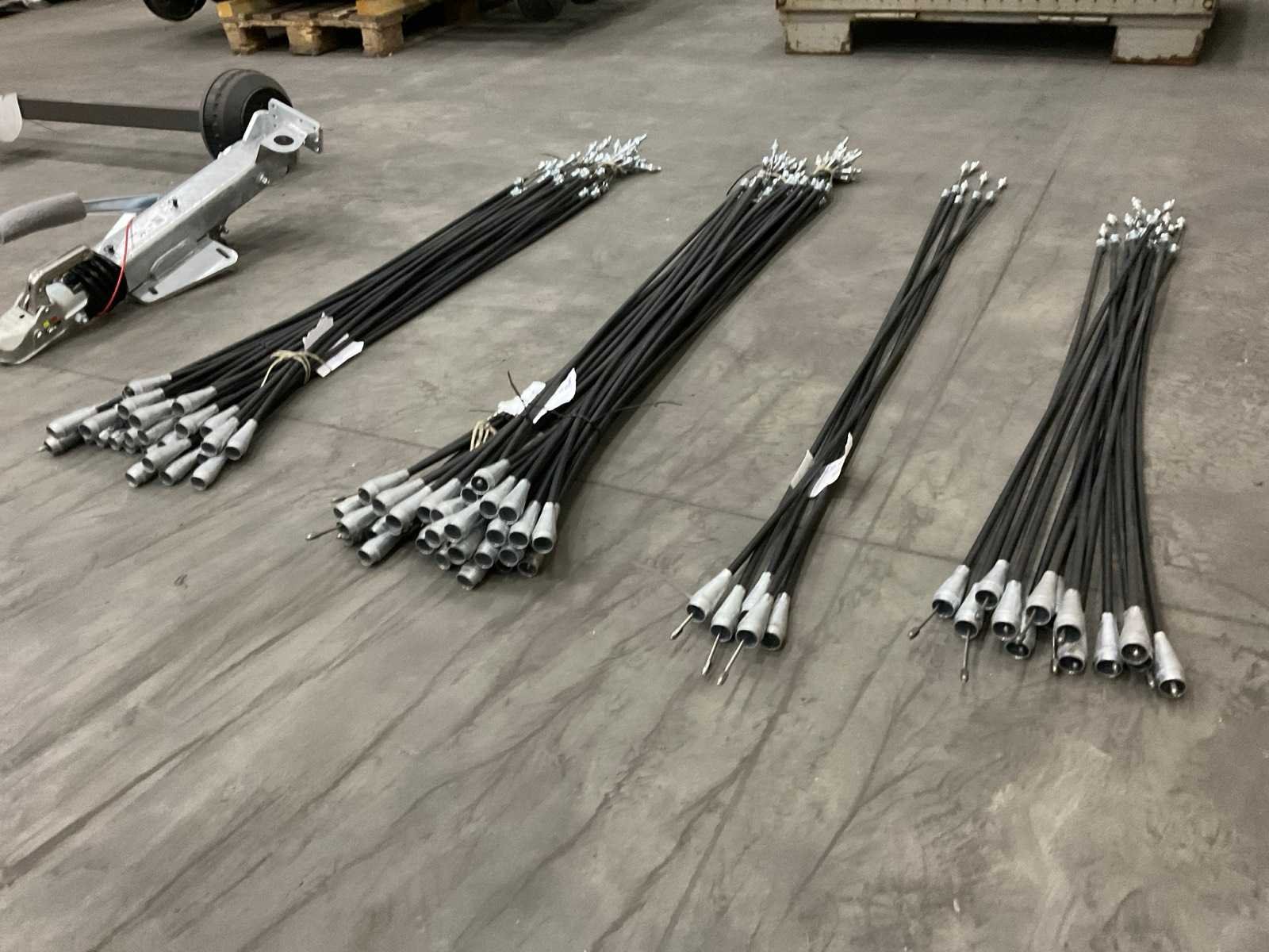Bestaande uit: 10x oplooprem 35/35.4 ton, maximum massa 1750-3500 kg, maximum kogelgewicht 150 kg, bouwjaar 2023; 30x as 1800 kg Star Pad 1484 bouwjaar 2022; 13x remkabel 1100/1290; 36x remkabel 1200/1390, 36x remkabel 1300/1490, 5x remkabel 1400/1590. Merk: WAP