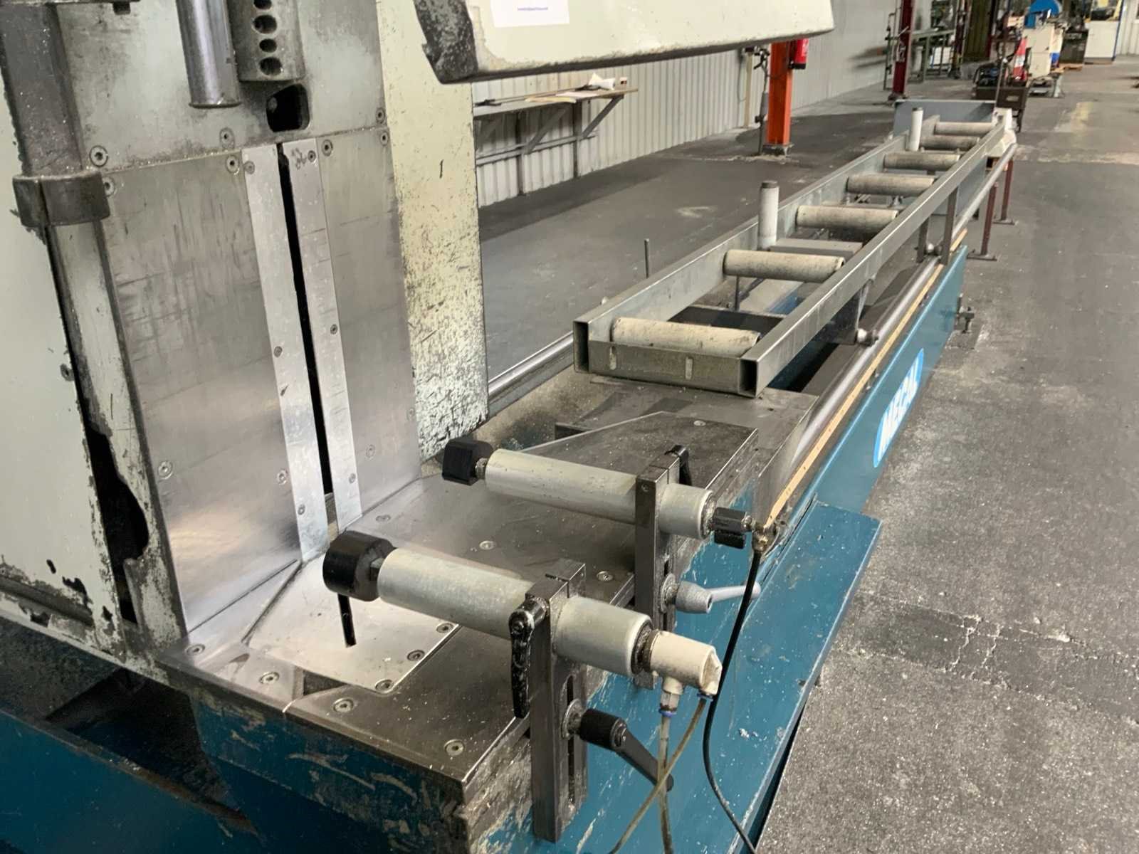 Afkort lengte: 5000 mm, voorzien van Mecal 6001 besturing, pneumatische klemming. inclusief reserve zaagbladen en toebehoren Merk: Mecal Type: SW Bouwjaar: 2008 Zaagblad Ø: 550 Aansluiting: 400V Afmeting l: 1000mm Afmeting b: 1850mm Afmeting h: 2500mm