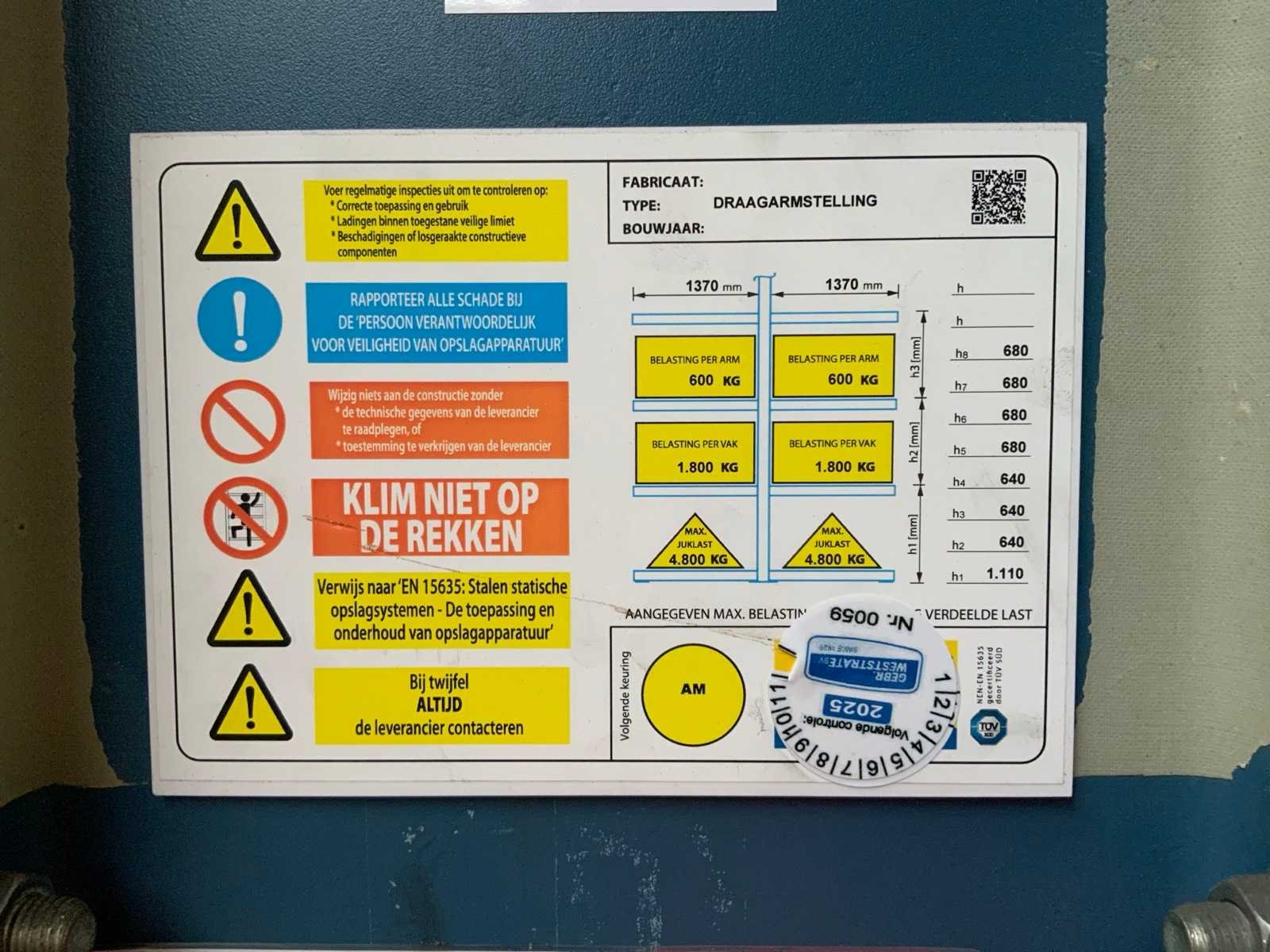Bestaande elk uit: 3 kolommen, afmeting: H6020 x B3060 x L3450 mm, en 48 liggers. Demontabel: true Materiaal: staal