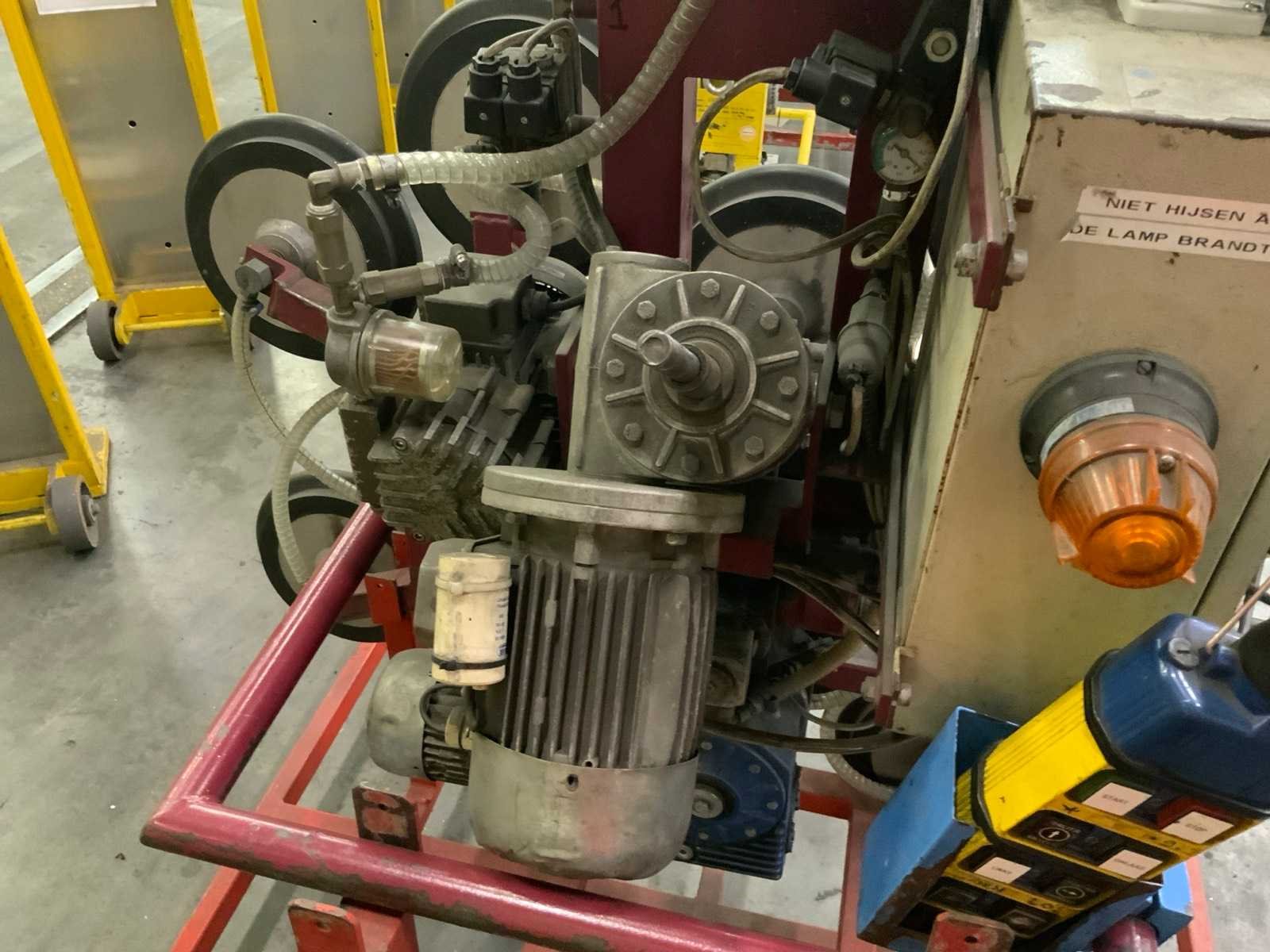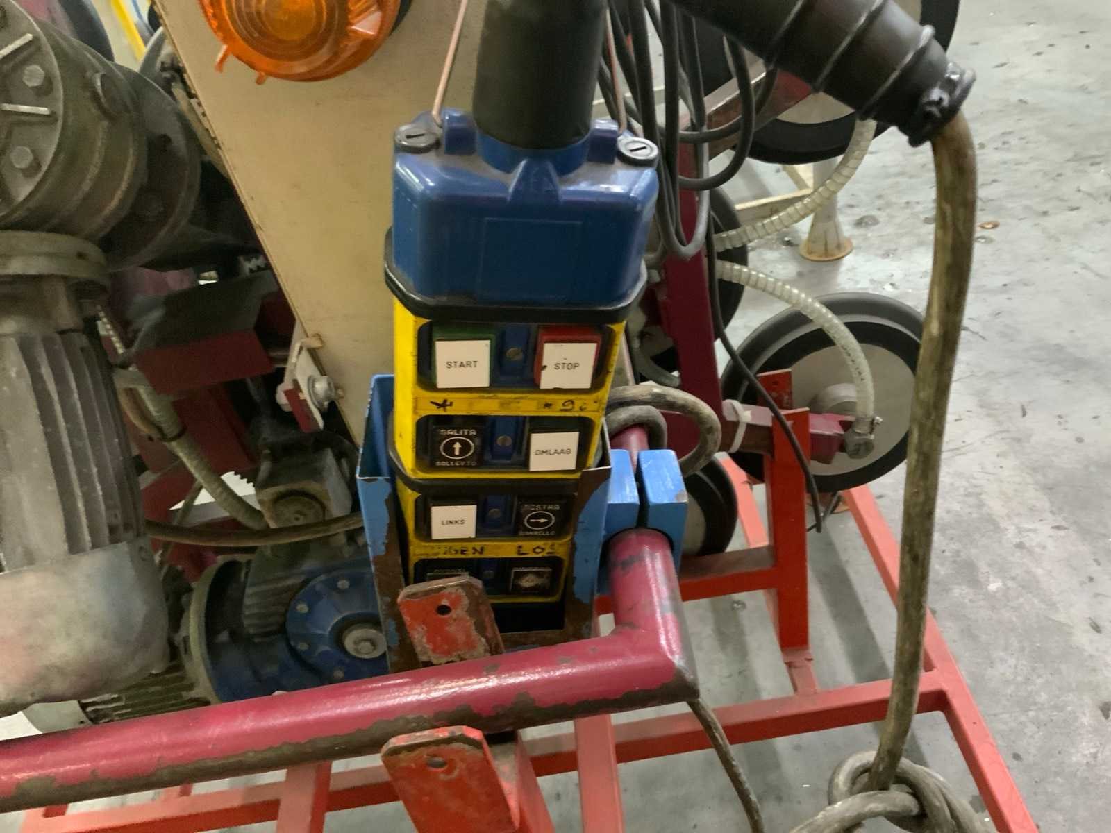 Hijsvermogen verticaal: 540 Kg, aansluiting: 230 volt, inclusief afstandsbediening en transportbok Merk: RBB Bouwjaar: 1996 Hijsvermogen: 1080kg Afmeting l: 1400mm Afmeting b: 1100mm Afmeting h: 1180mm Eigen gewicht: 170kg Totale afmeting L: 1400mm Totale afmeting Breedte: 1150mm Totale afmeting Hoogte: 1400mm