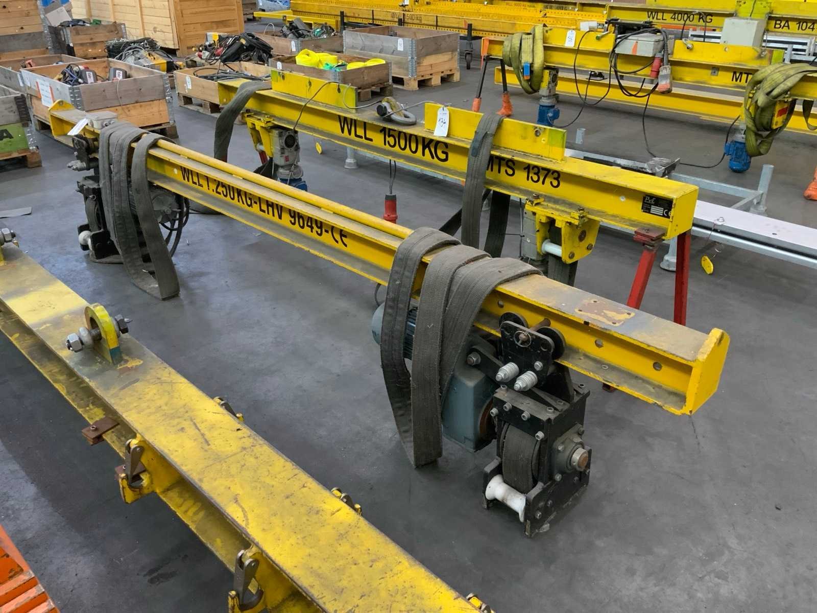 Voorzien van hijsbanden met motor op loopkat Hijsvermogen: 250kg Afmeting l: 2540mm Afmeting b: 320mm Afmeting h: 750mm Aansluiting: 380V