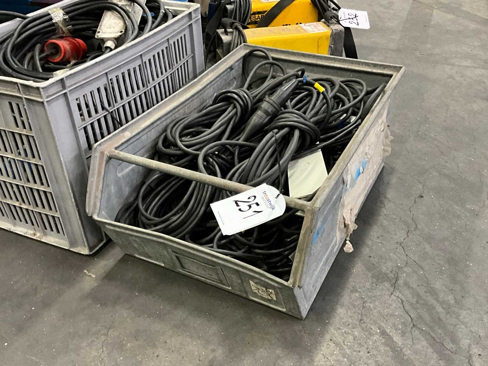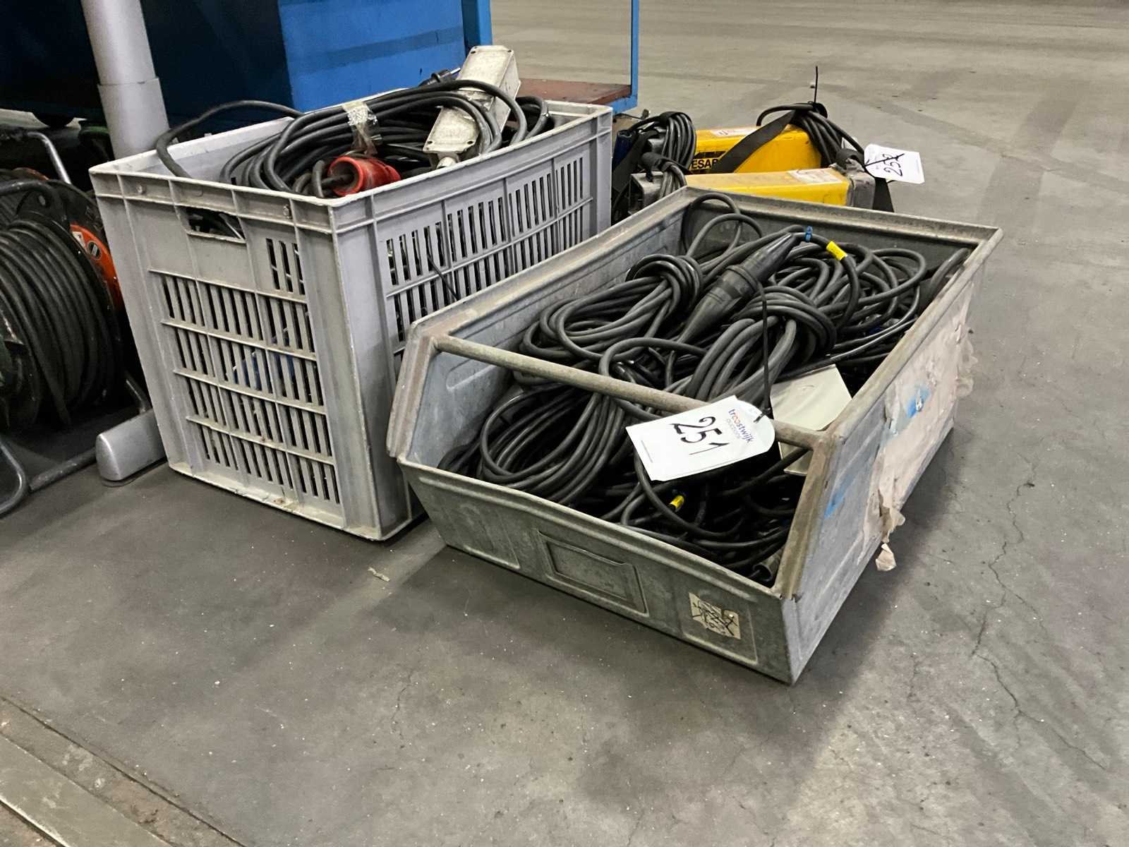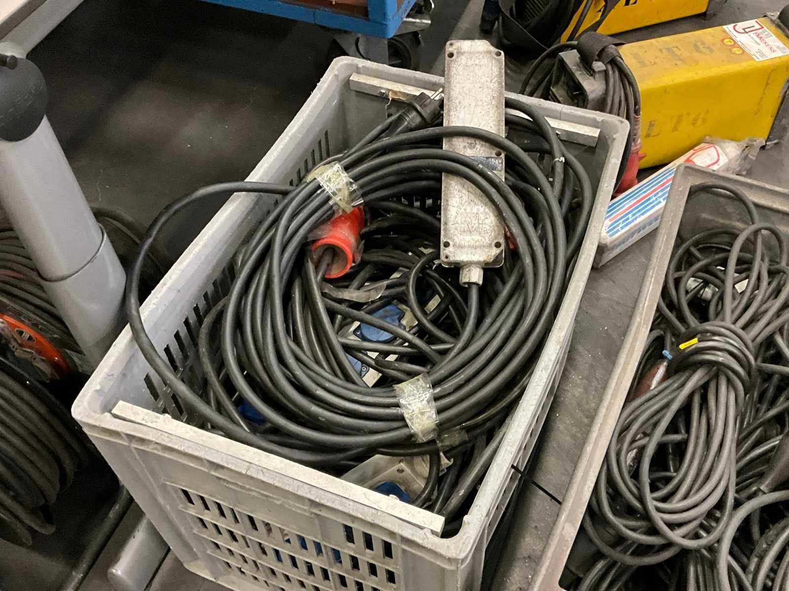 Waaronder diverse verlengsnoeren 230 Volt; stekkerdozen voorzien van verlengsnoer 230 Volt - 400 Volt; inclusief kunststof krat en gegalvaniseerd staal bak;