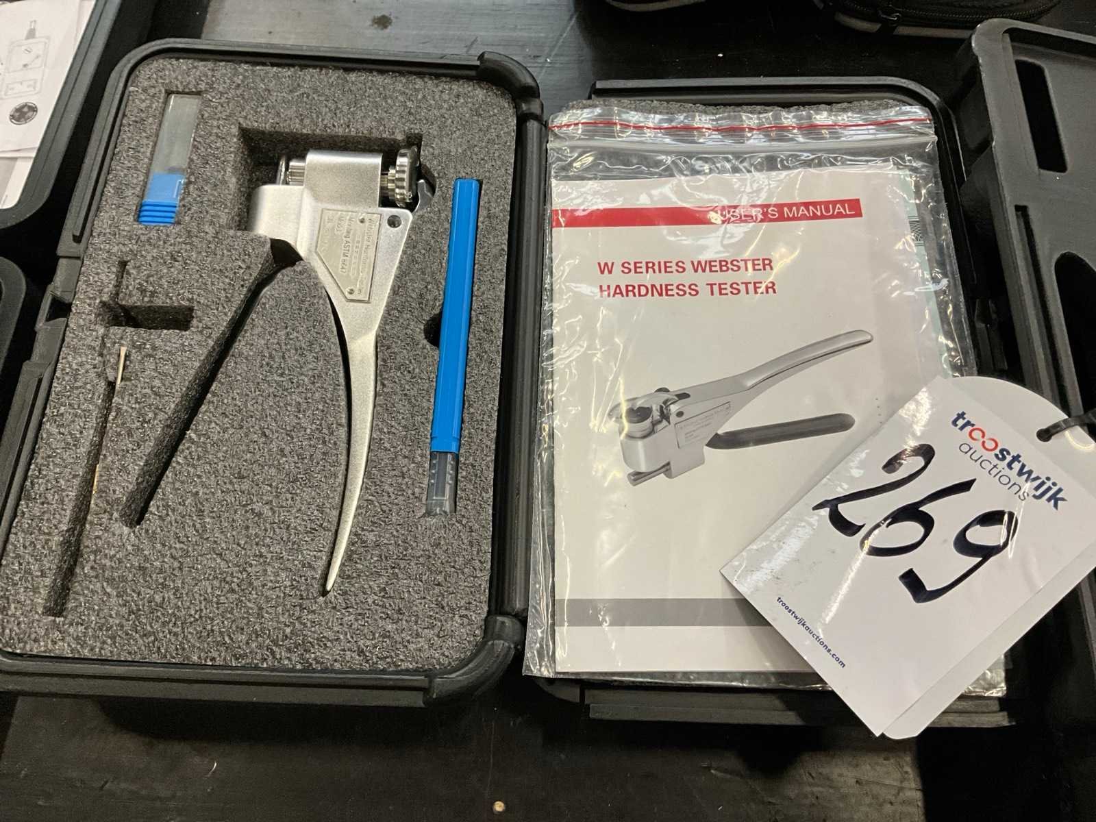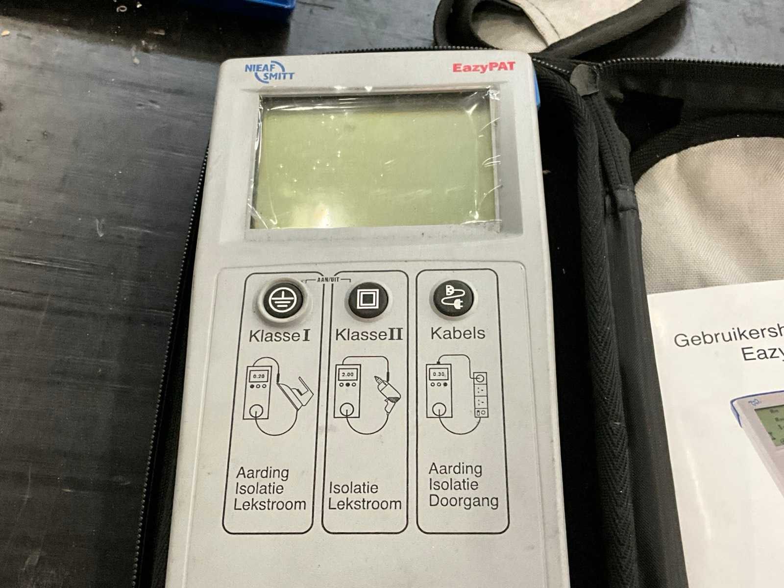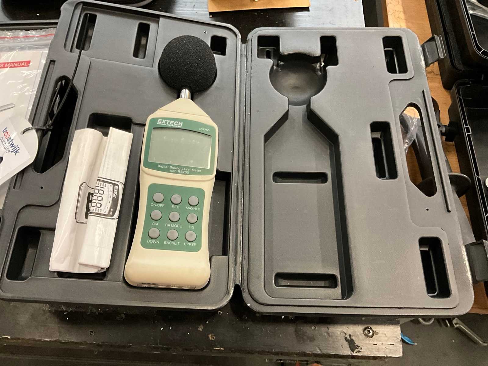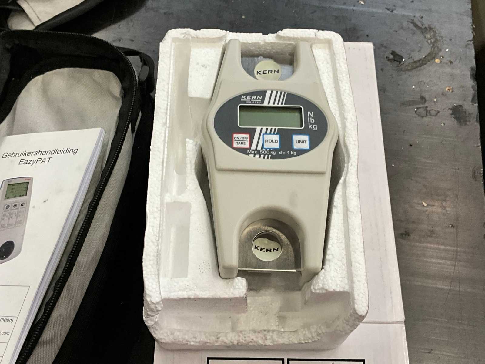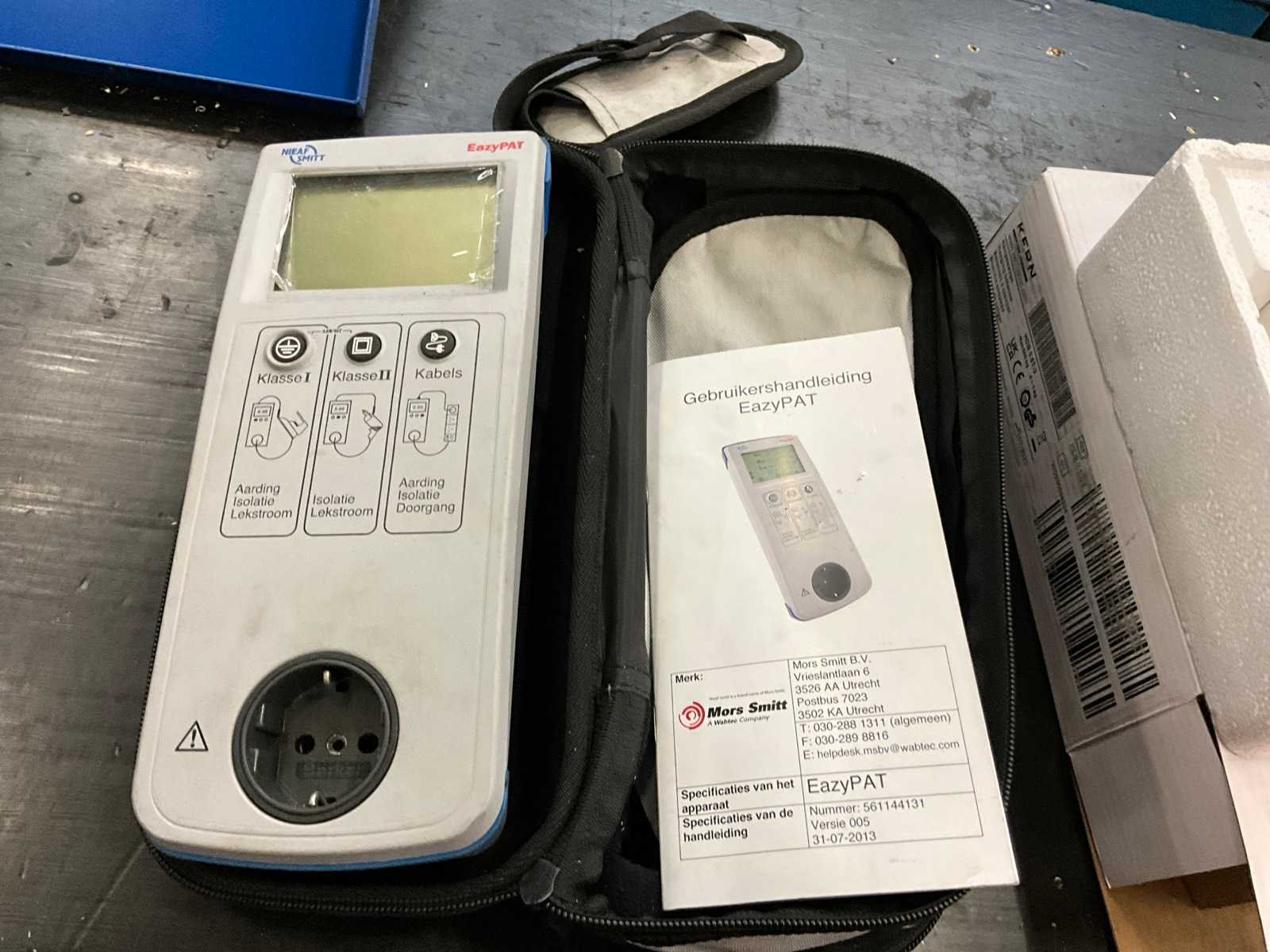 Waaronder 1x decibelmeter Extech 407750 in kunststof koffer; 1x hardheidstester Webster W-20b in kunststof koffer; 1x apparatentester Nieaf Smitt EazyPAT inndraagtas; 1x hangweegschaal Kern HCB 0.5T3;