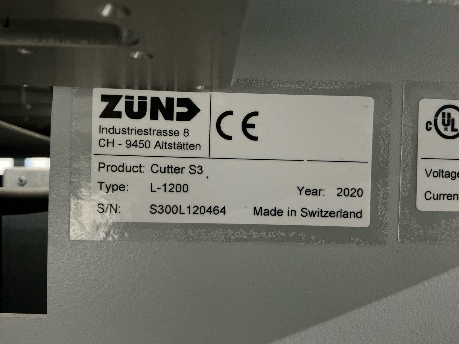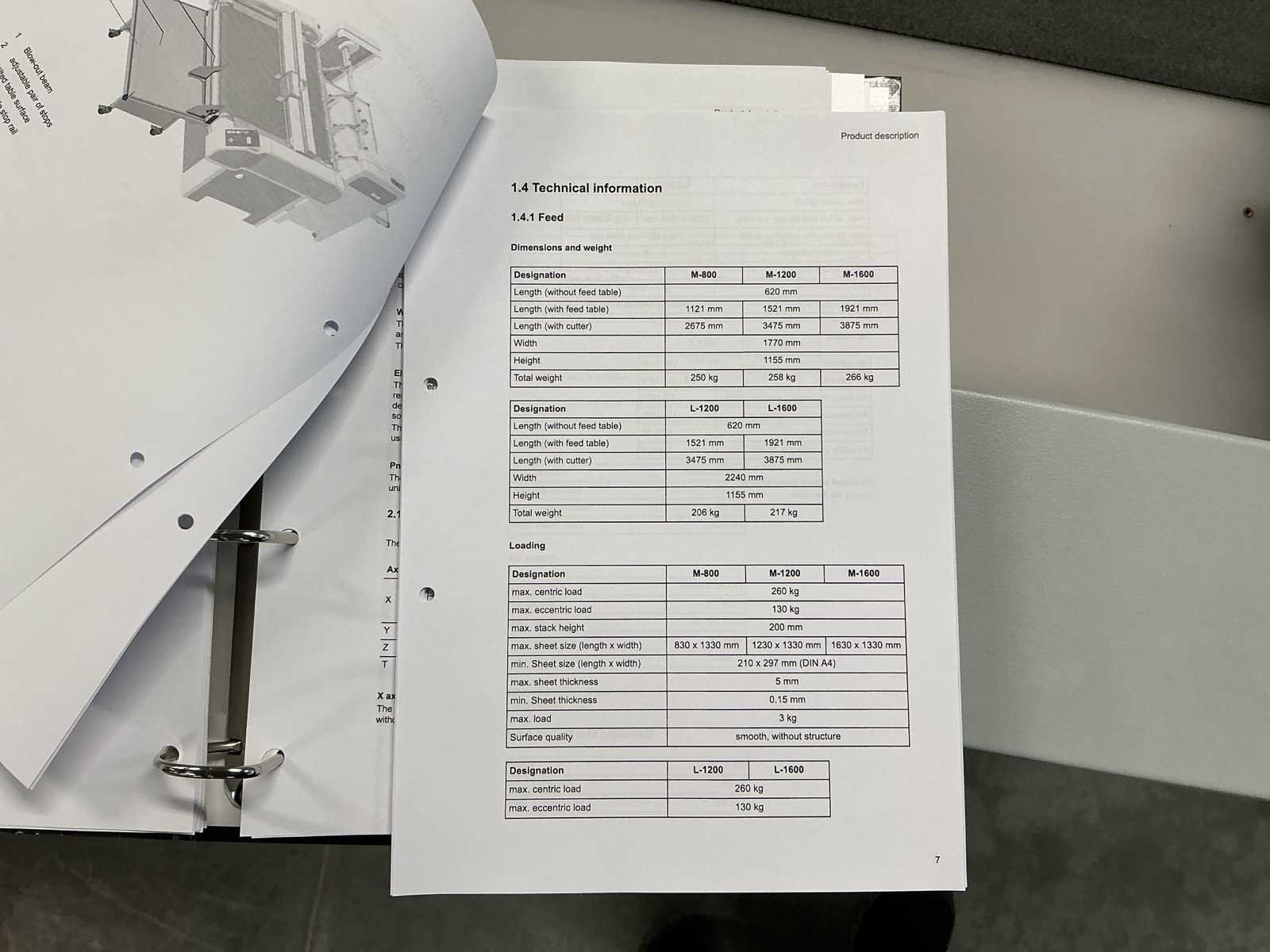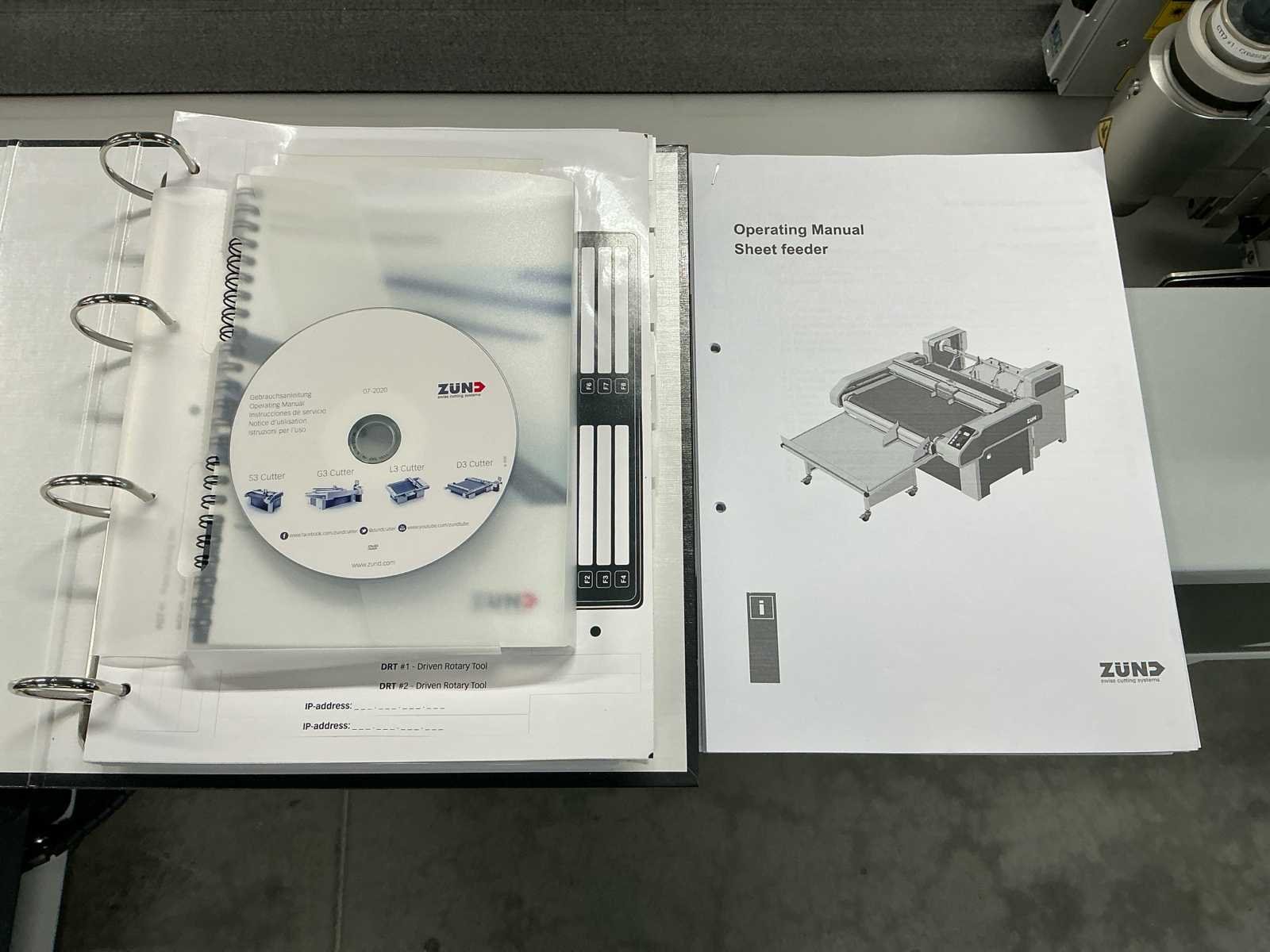 Inclusief de latenvoerer en de losstafel. Inclusief 4 gereedschappen: 1x EOT-250 snijgereedschap, 1x KCT kus-snijgereedschap, 1x UCT snijgereedschap, 1x CTT2 vouwgereedschap Totale afmetingen (LxWxH): 6000x3100x1770mm Max. Centrische belasting: 260 kg; Max. Excentrische belasting: 130 kg; Max. Schoorsteenhoogte: 200 mm; Max. Bladgrootte (lengte x breedte): 1230 x 1800 mm; Min. Bladgrootte (lengte x breedte): 210 x 297 mm; Maximale plaatdikte: 5 mm; Min. Plaatdikte: 0,15 mm; Merk: Zund Type: S3 L-1200 Bouwjaar: 2020 Serienummer: S300L120464