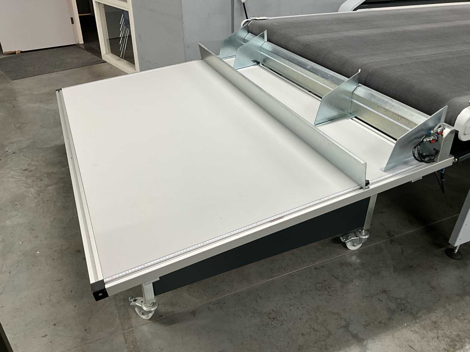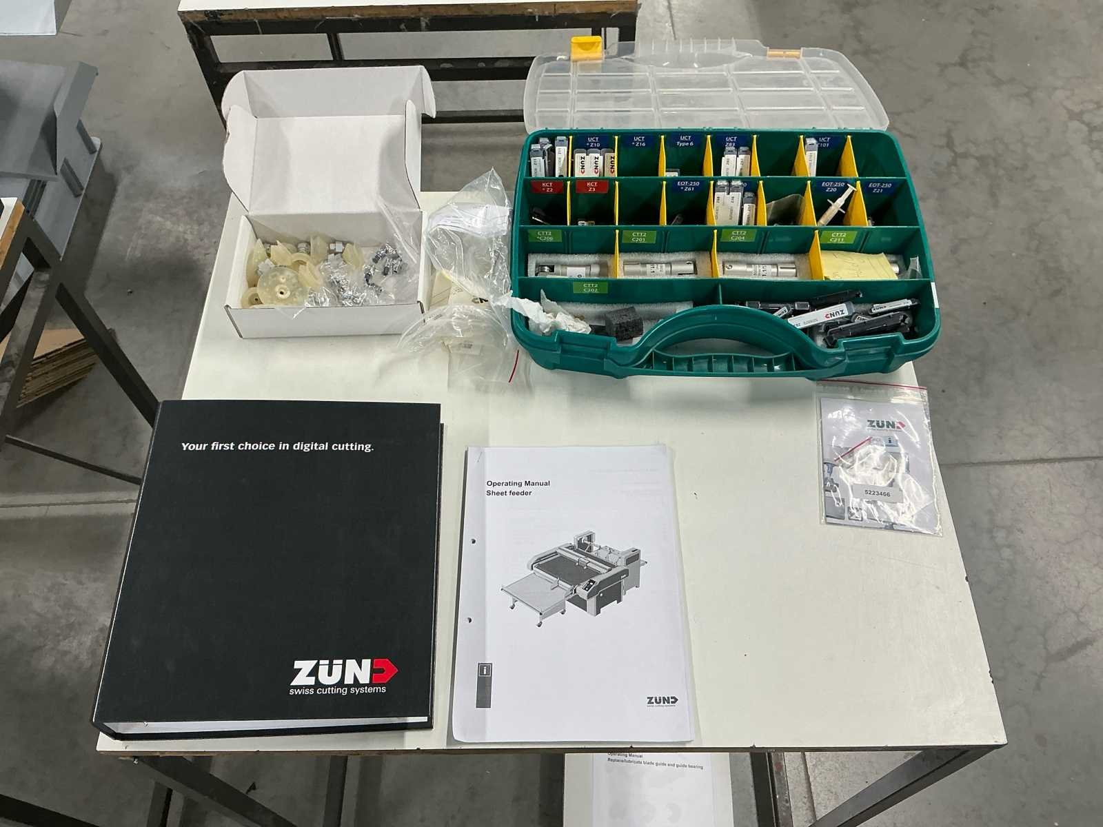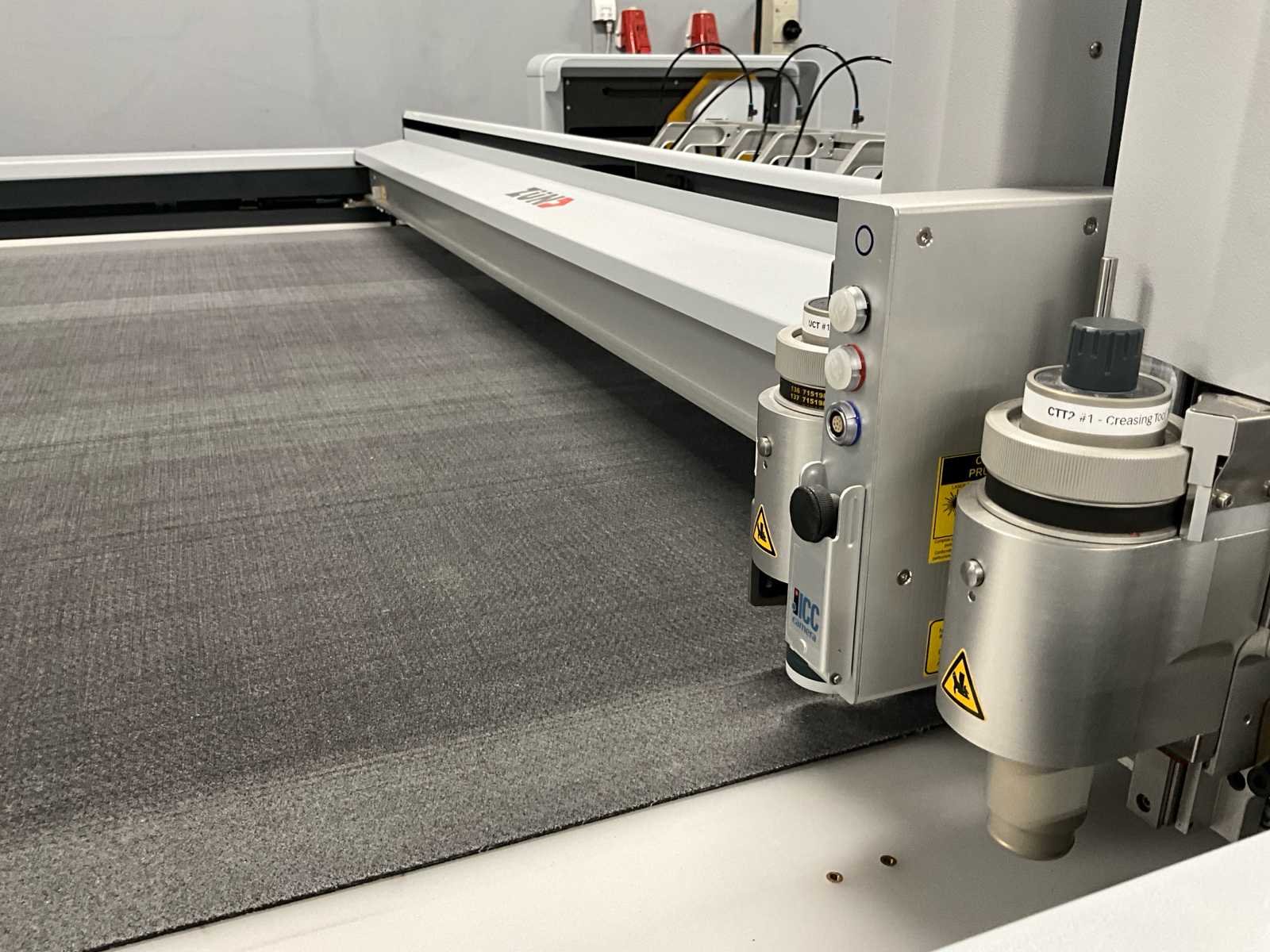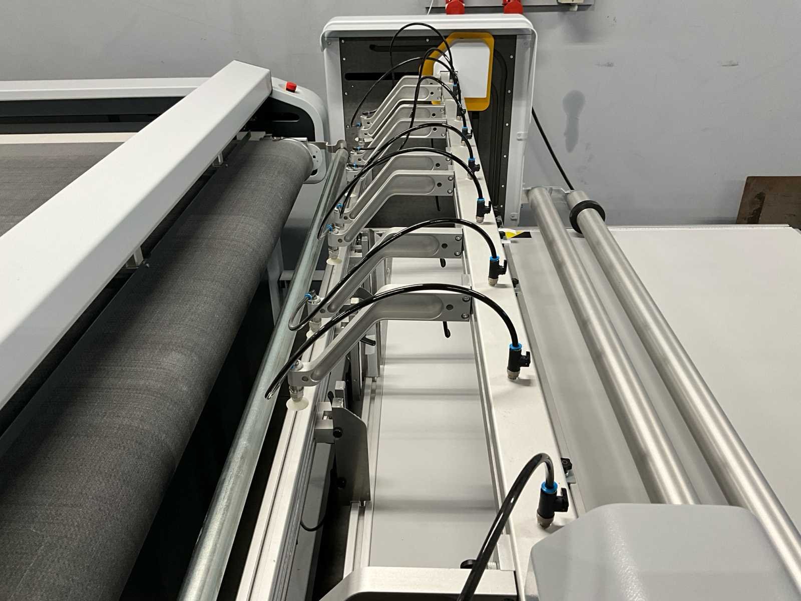 Inclusief de latenvoerer en de losstafel. Inclusief 4 gereedschappen: 1x EOT-250 snijgereedschap, 1x KCT kus-snijgereedschap, 1x UCT snijgereedschap, 1x CTT2 vouwgereedschap Totale afmetingen (LxWxH): 6000x3100x1770mm Max. Centrische belasting: 260 kg; Max. Excentrische belasting: 130 kg; Max. Schoorsteenhoogte: 200 mm; Max. Bladgrootte (lengte x breedte): 1230 x 1800 mm; Min. Bladgrootte (lengte x breedte): 210 x 297 mm; Maximale plaatdikte: 5 mm; Min. Plaatdikte: 0,15 mm; Merk: Zund Type: S3 L-1200 Bouwjaar: 2020 Serienummer: S300L120464