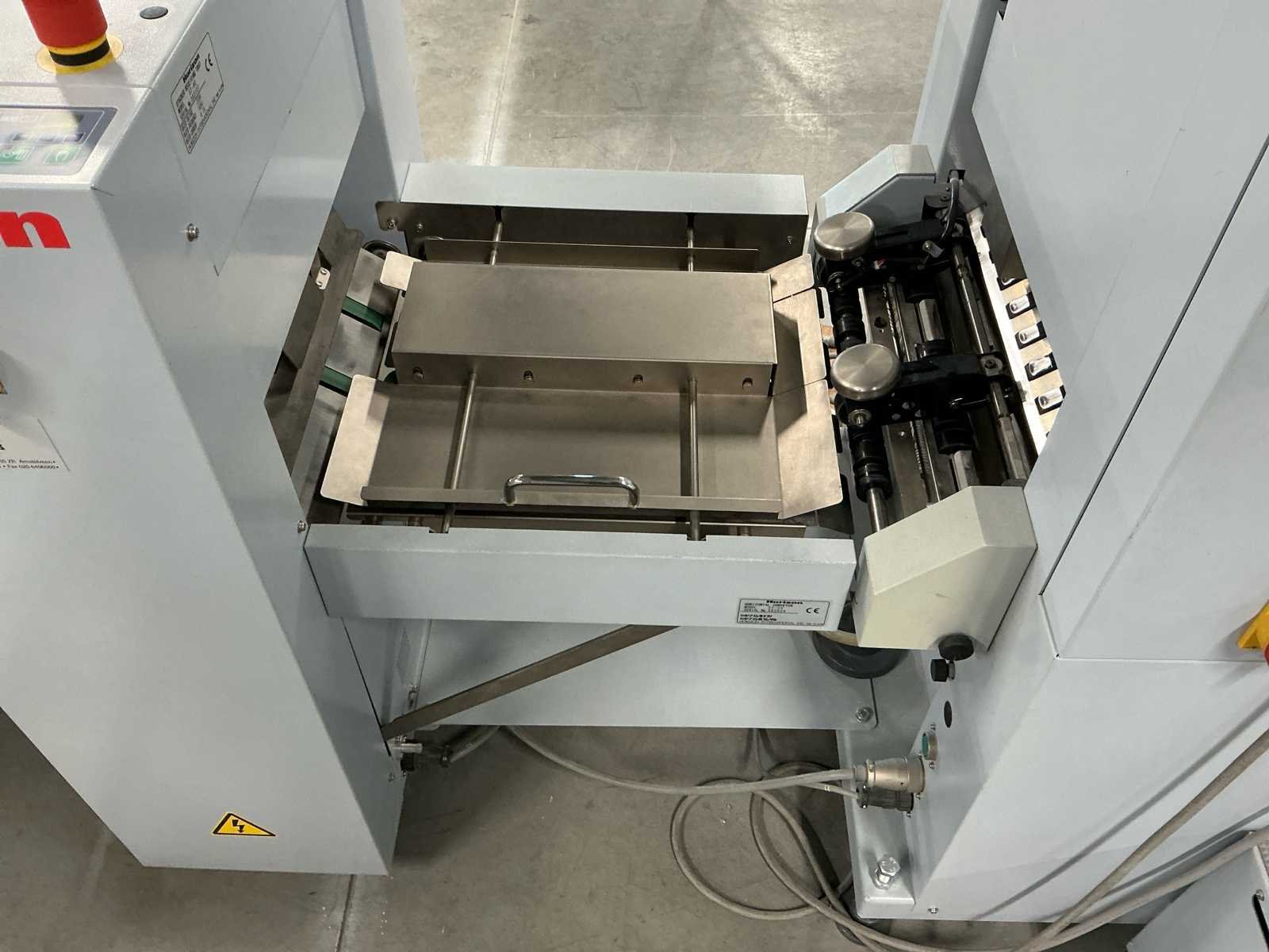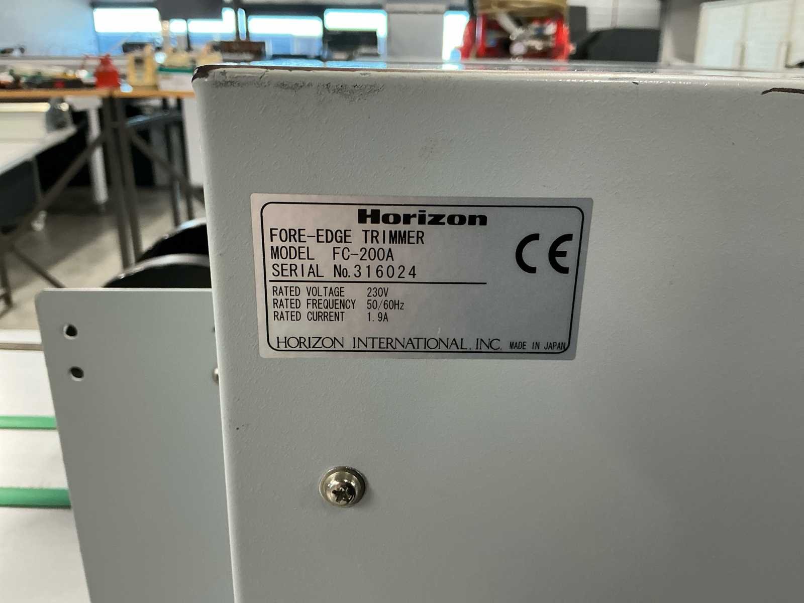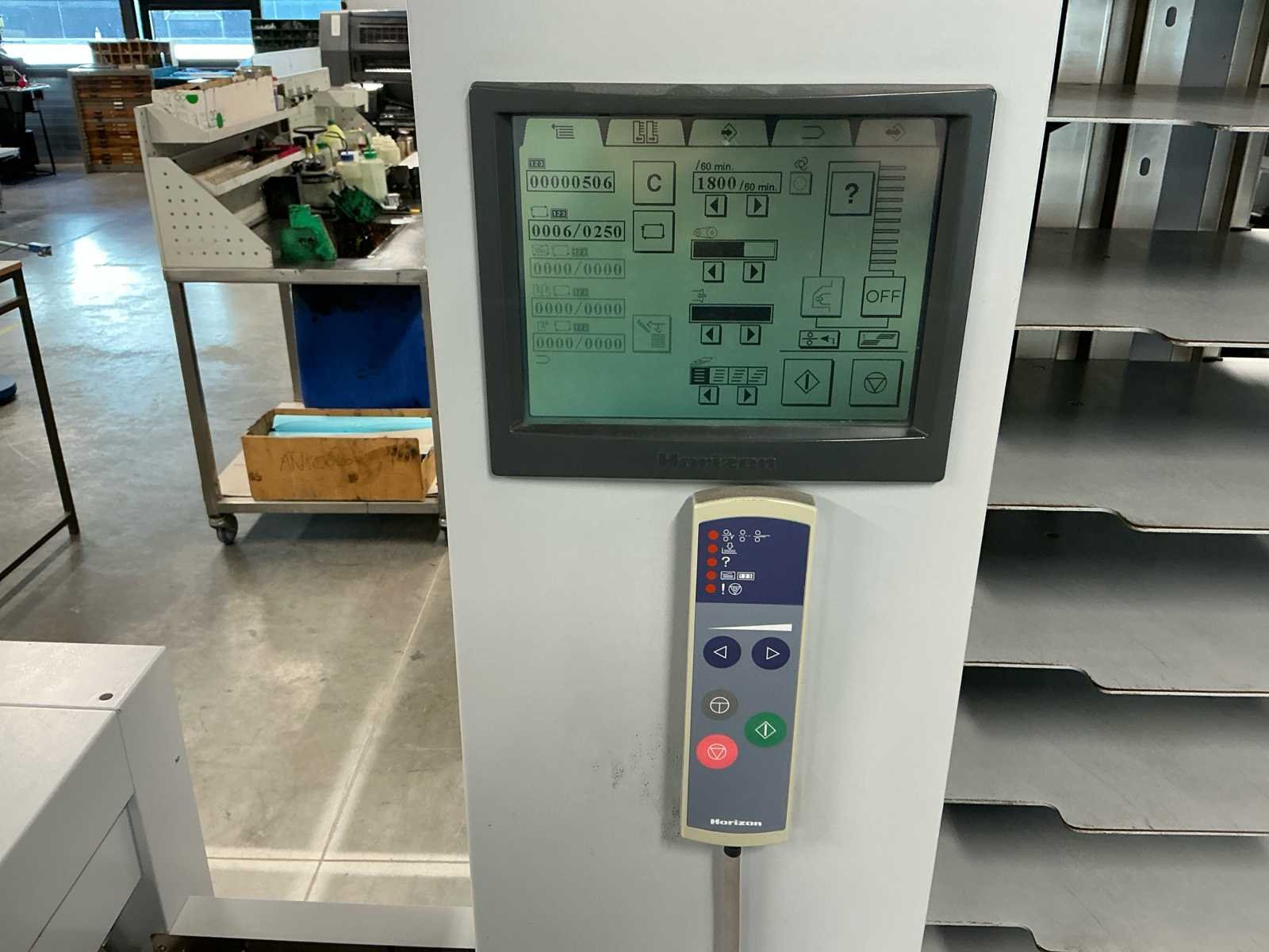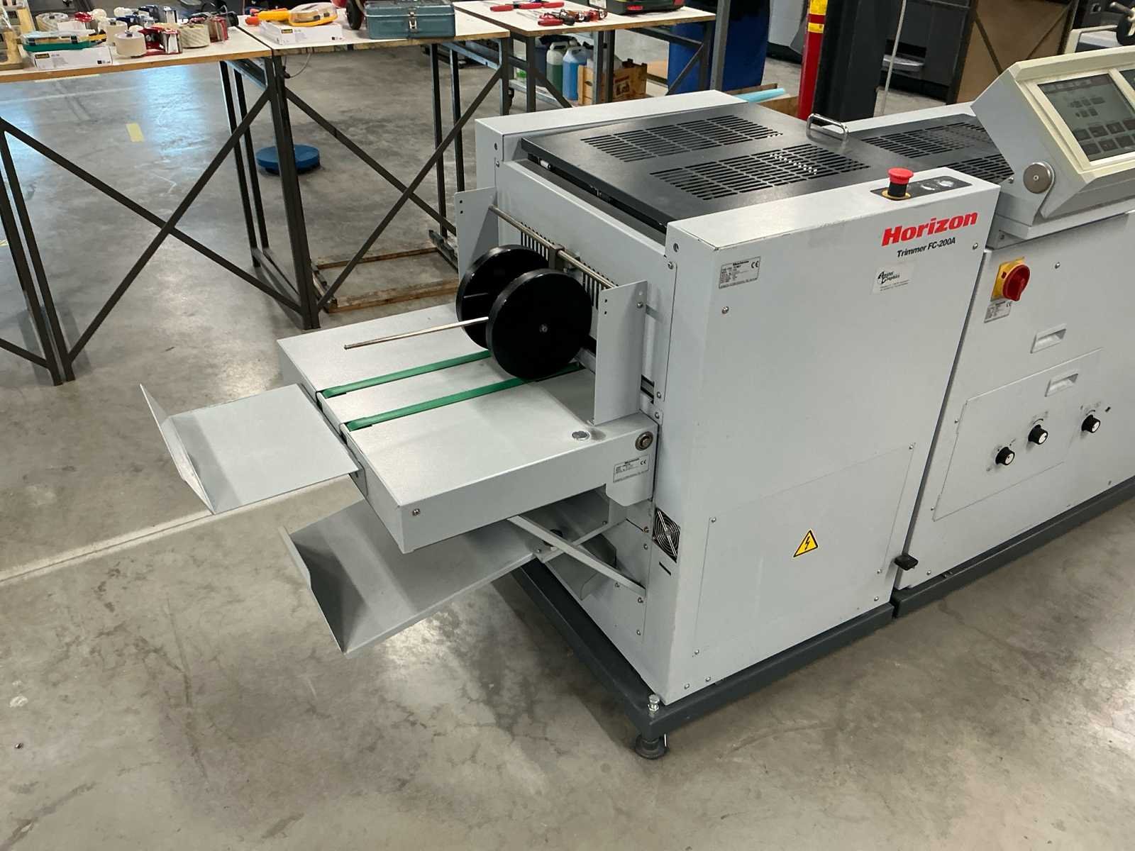 De lijn bestaat uit: 2x Horizon Collator VAC-100a 1x Horizon Stacker ST-40 1x Horizon Stitch en map SPF-200A 1x Horizon Trimmer FC-200A 1x Horizon Conveyor SC-200 Technische beschrijving: Max. Bladgrootte: 356x508 mm; Min. Bladformaat: 120x180 mm; Productiesnelheid (a4): 4000 boekjes per uur; Productiesnelheid (a5): 4500 boekjes per uur; Totaal aantal boekbanden: 4.114.983; Afmetingen (LxWxH): 5600x900x2000mm; Merk: Horizon Type: SPF-200A Serienummer: 317013
