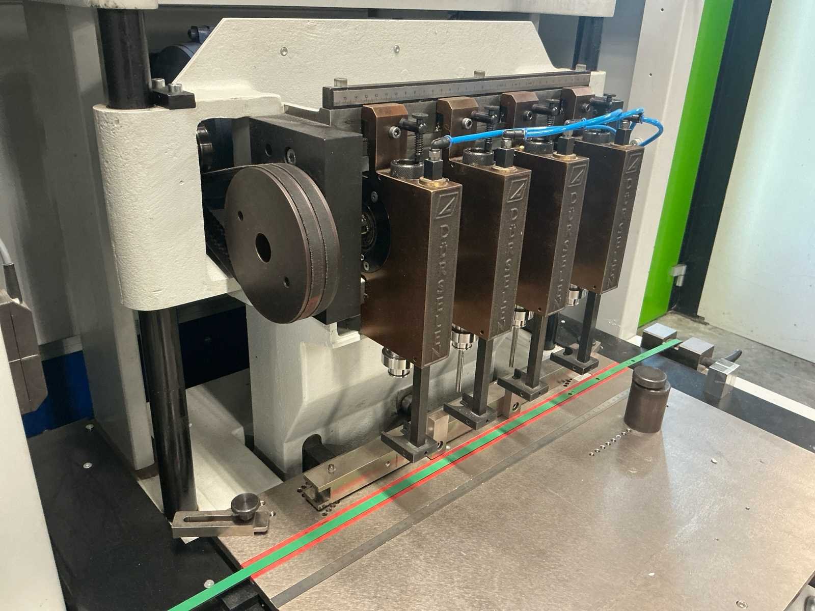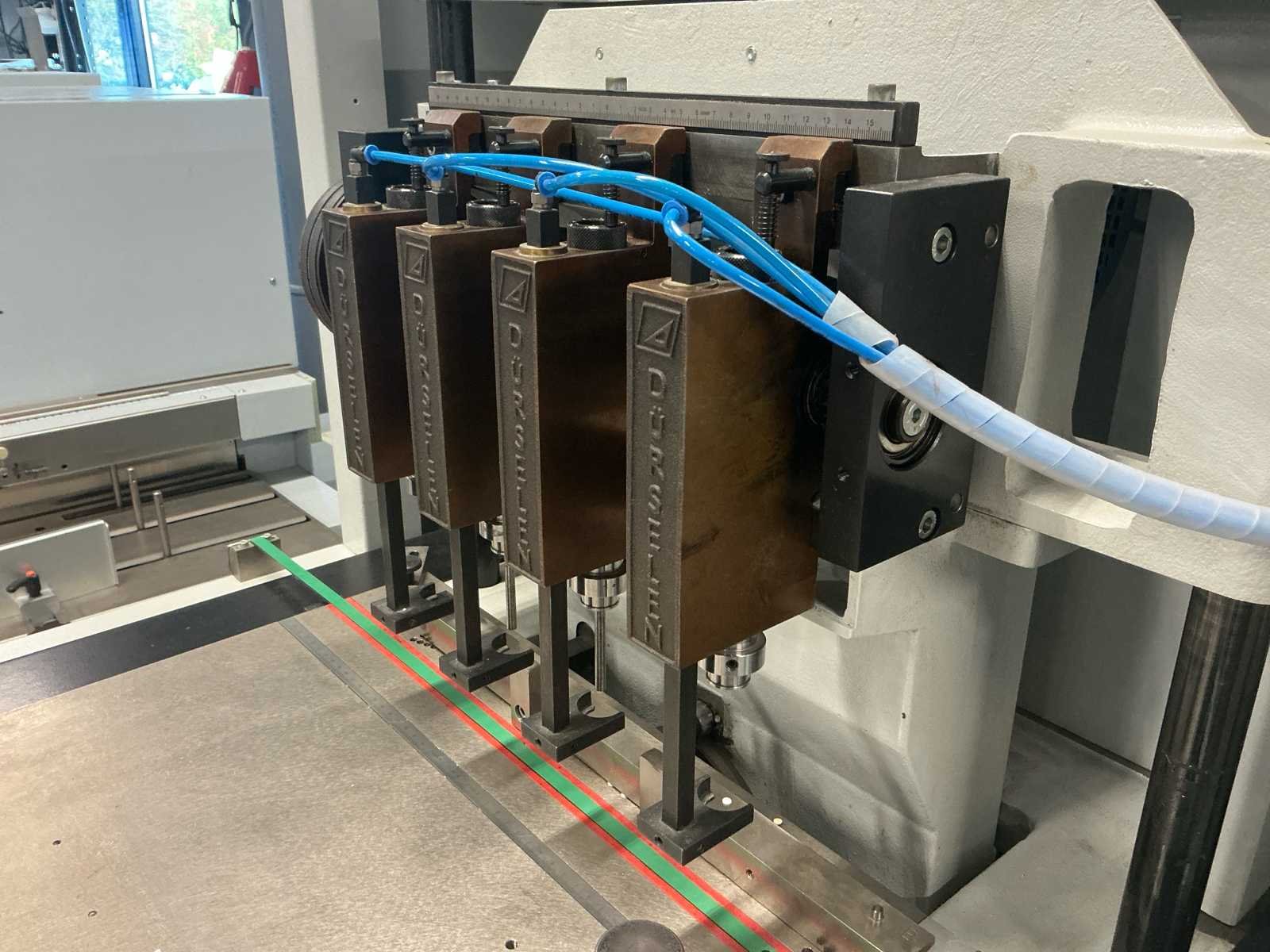 Nee. Van boorkoppen: 4 slanke boorkoppen (passen tot 6); Boorkopdiameter: 3-14mm; Gatenscheiding met standaard boorkoppen: minimaal 31,7 mm - maximaal 292 mm; Gatafscheiding op multi-spilhoofden: minimaal 19,05 mm; Beweging van de schuiftafel: maximaal 230 mm; Rugrand: maximaal 42 mm; Maximale paalhoogte: 50 mm; Afmetingen (LxWxH): 890x950x1450mm; Vermogen: 400V, 3 fasen, 50 cycli, 16A, 1,9kW; Inclusief reserveboormachines Merk: dürselen Type: PB.04 N