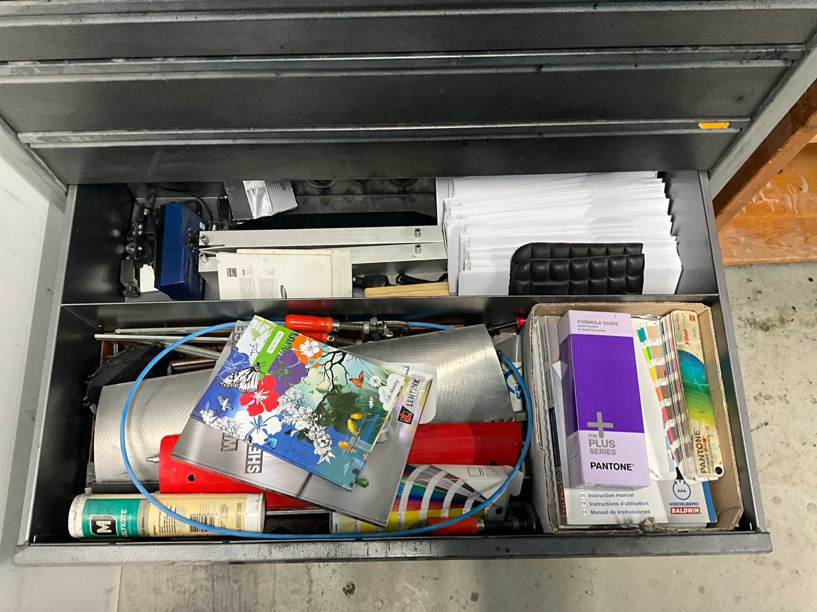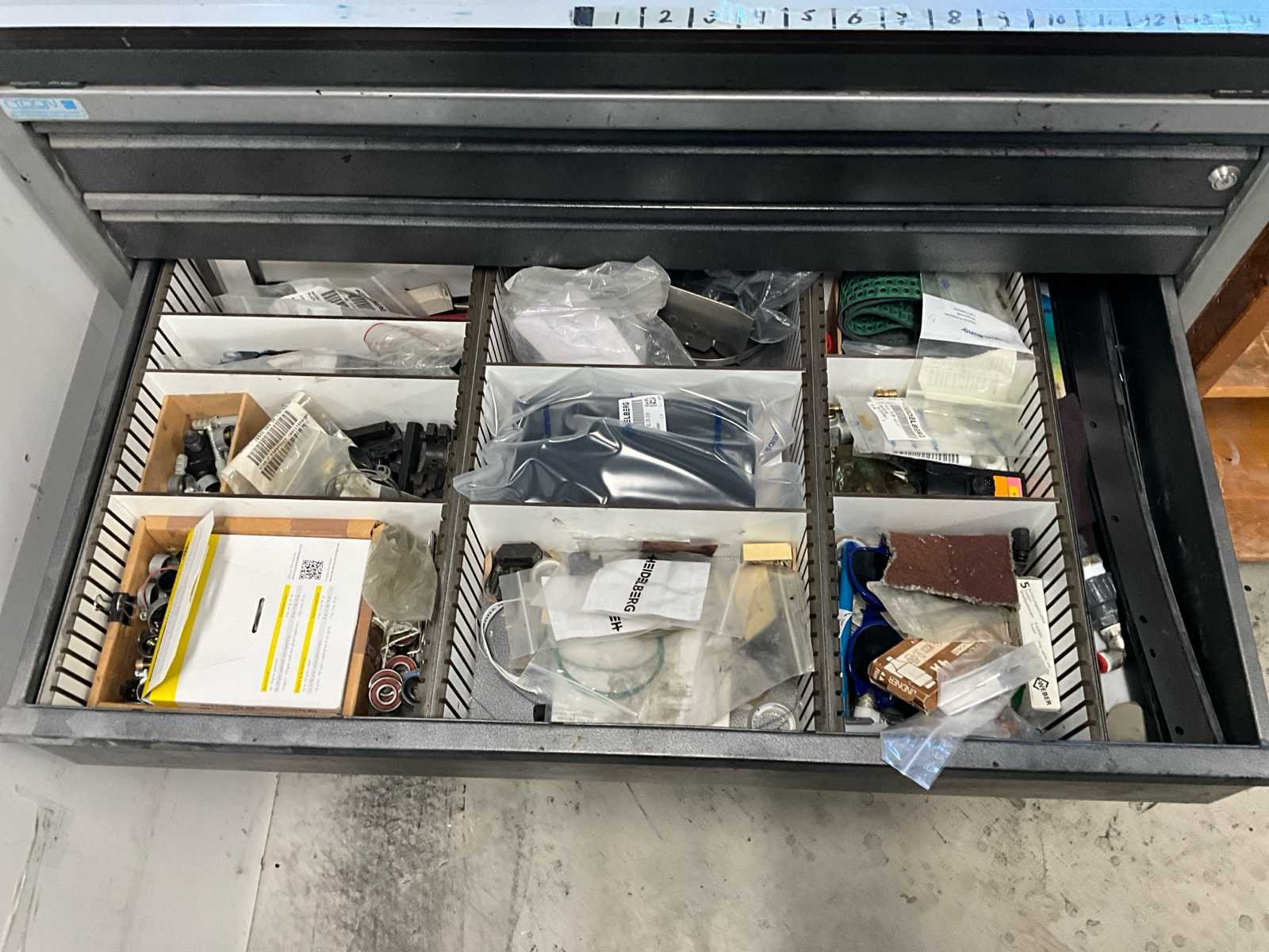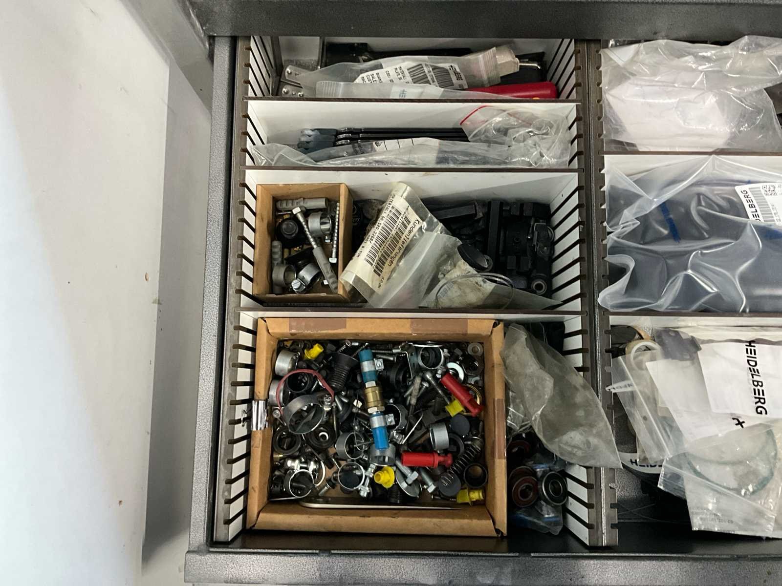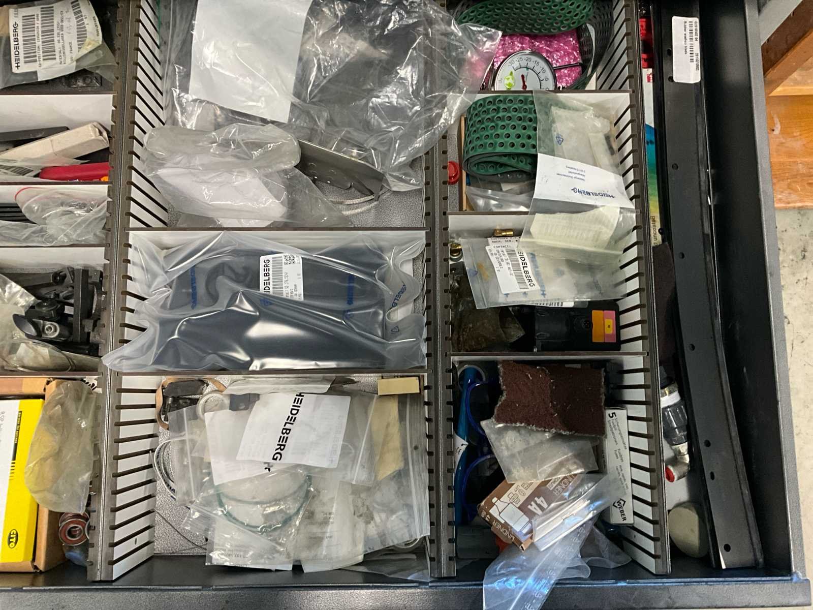 Verschillende soorten reserveonderdelen en accessoires, waaronder kast Merk: Heidelberg