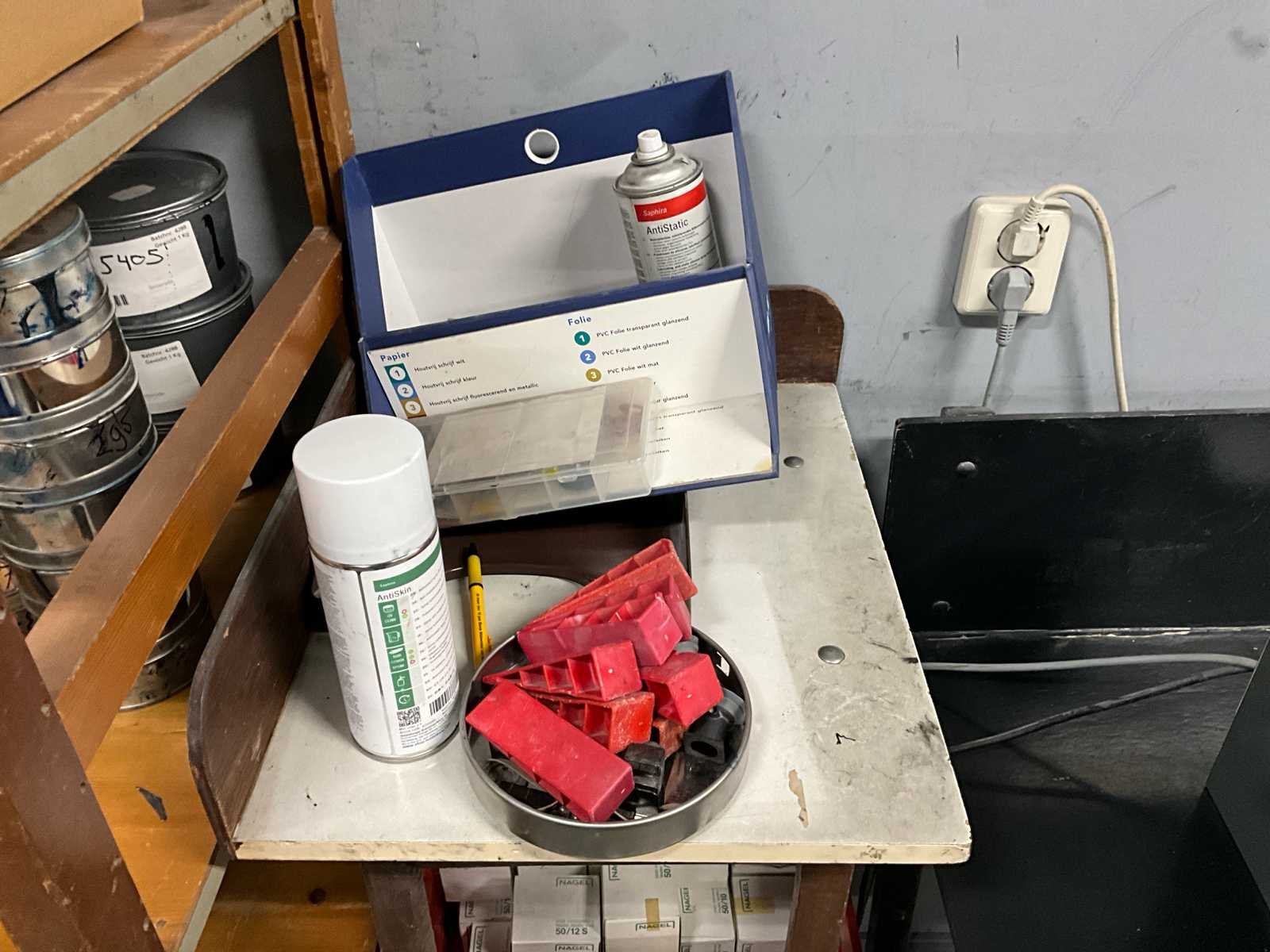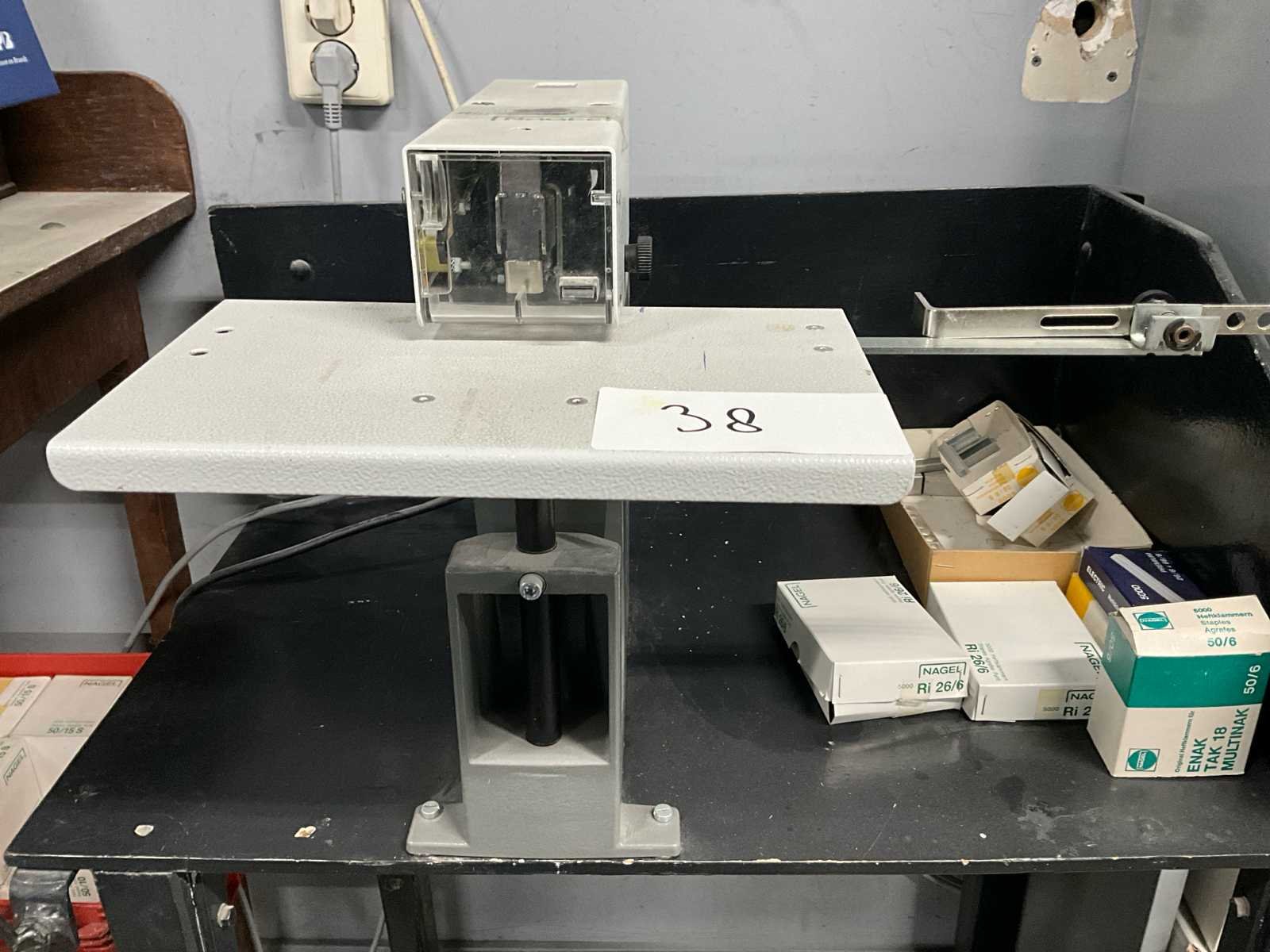 Rinak Nagel nietmachine, 2x tafel, diverse extra nietjes en stoel