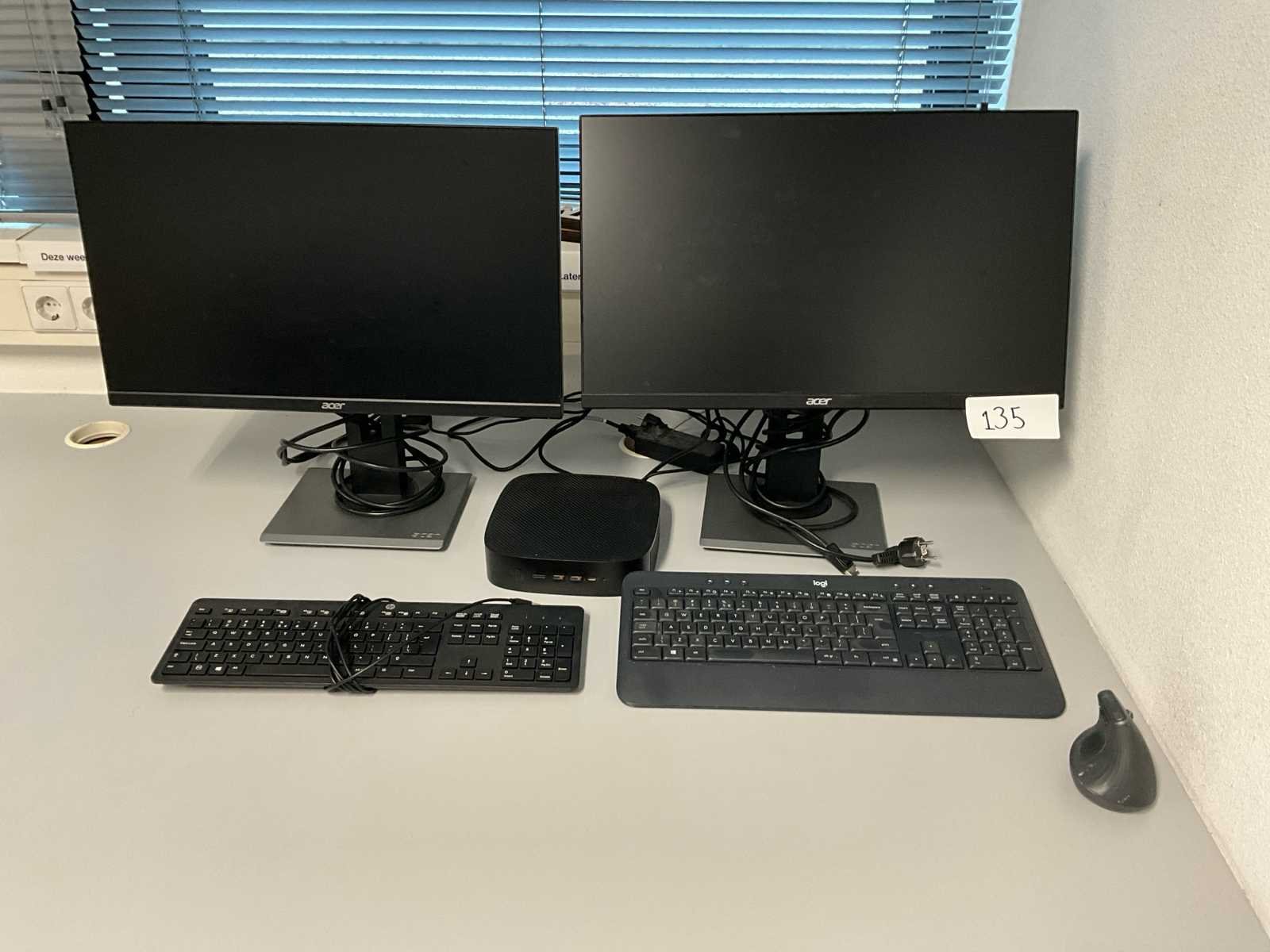 1 x HP-computer, 2 x monitor, 1 x toetsenbord, 1 x muis