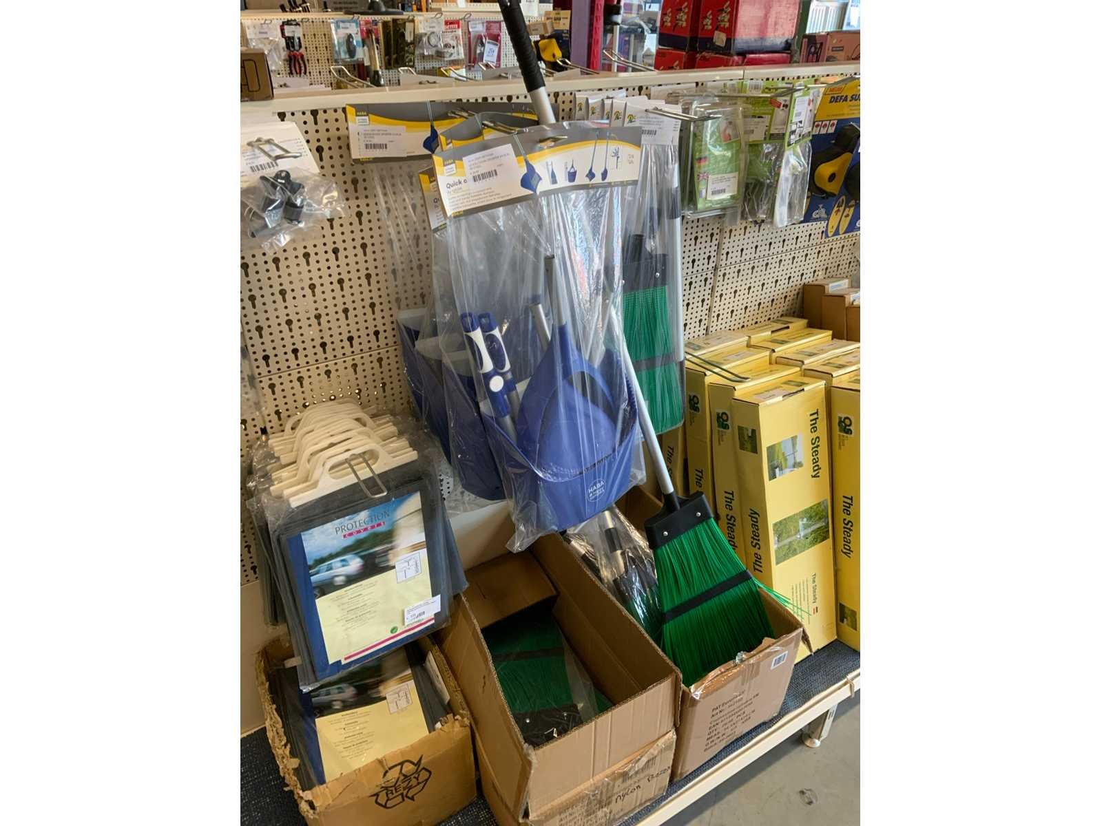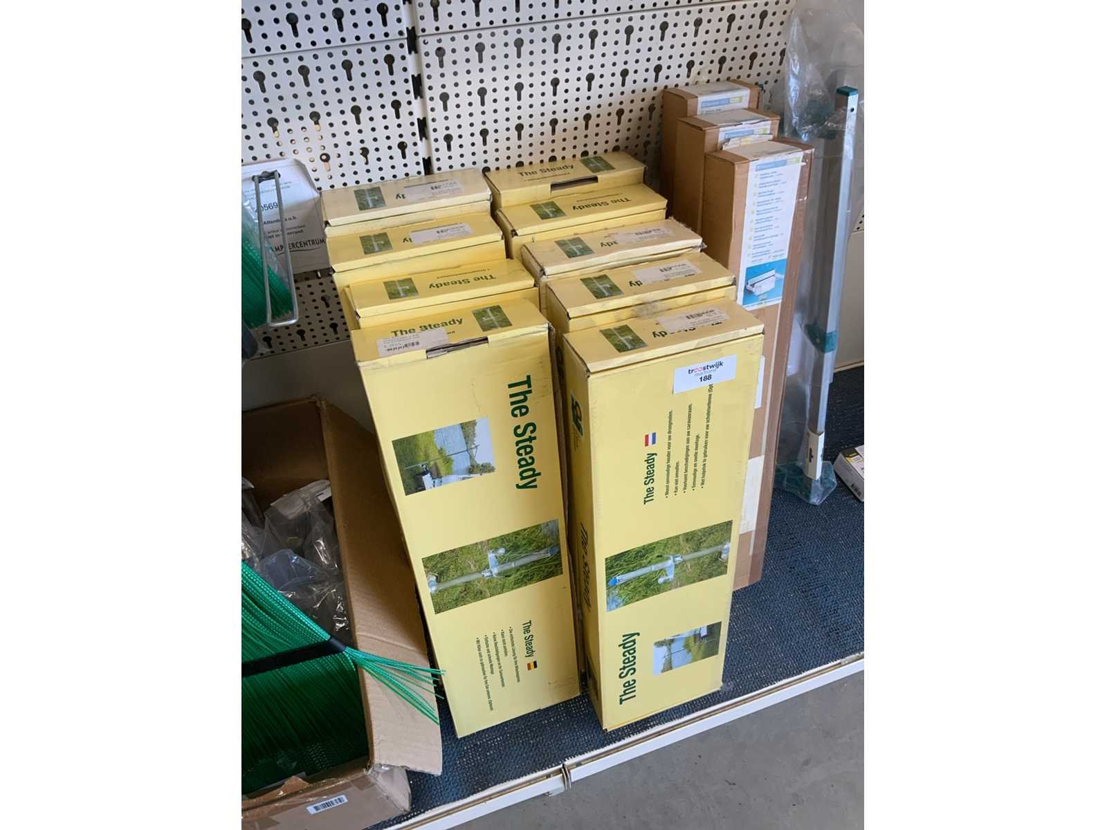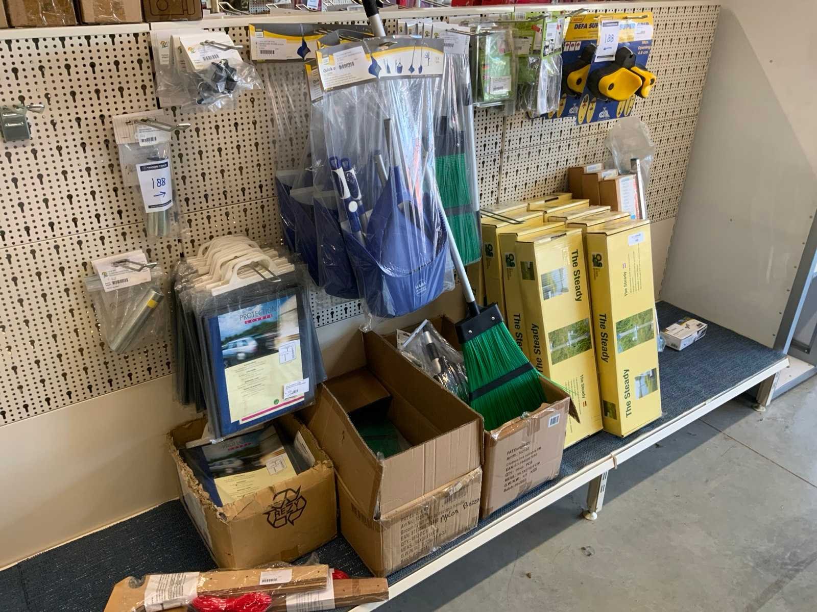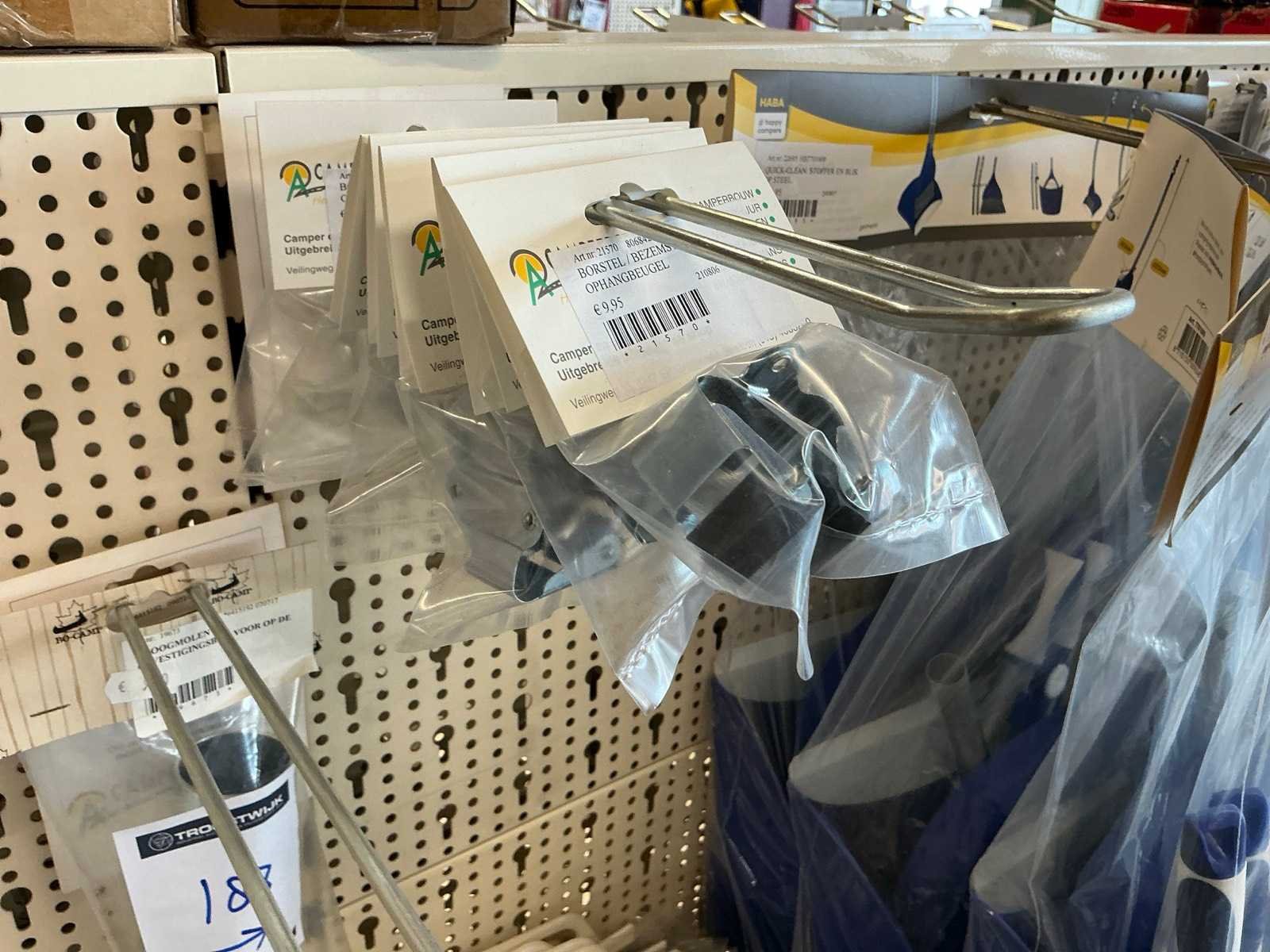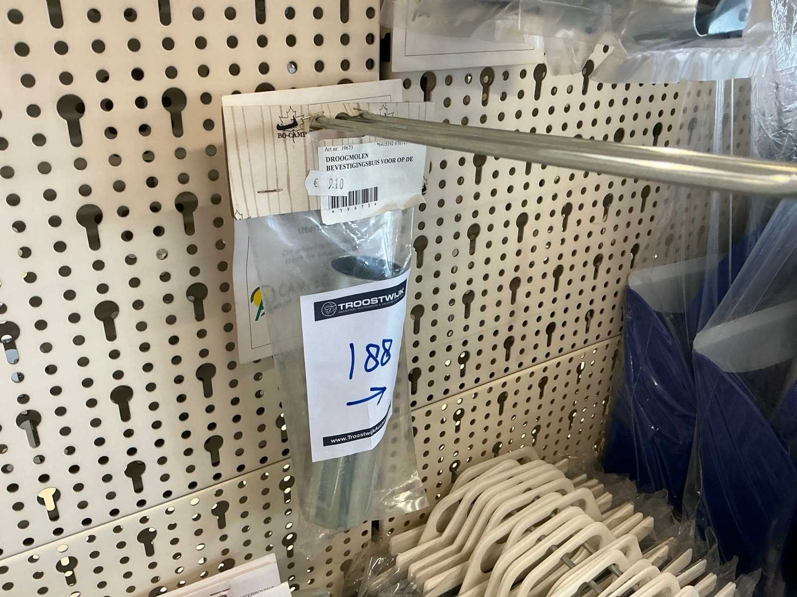 O.a. 9x ‘The Steady’ standaard voor droogmolen, 3x uitschuifbaar wasdroogrek, partij bezems etc