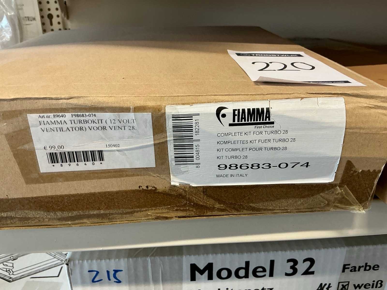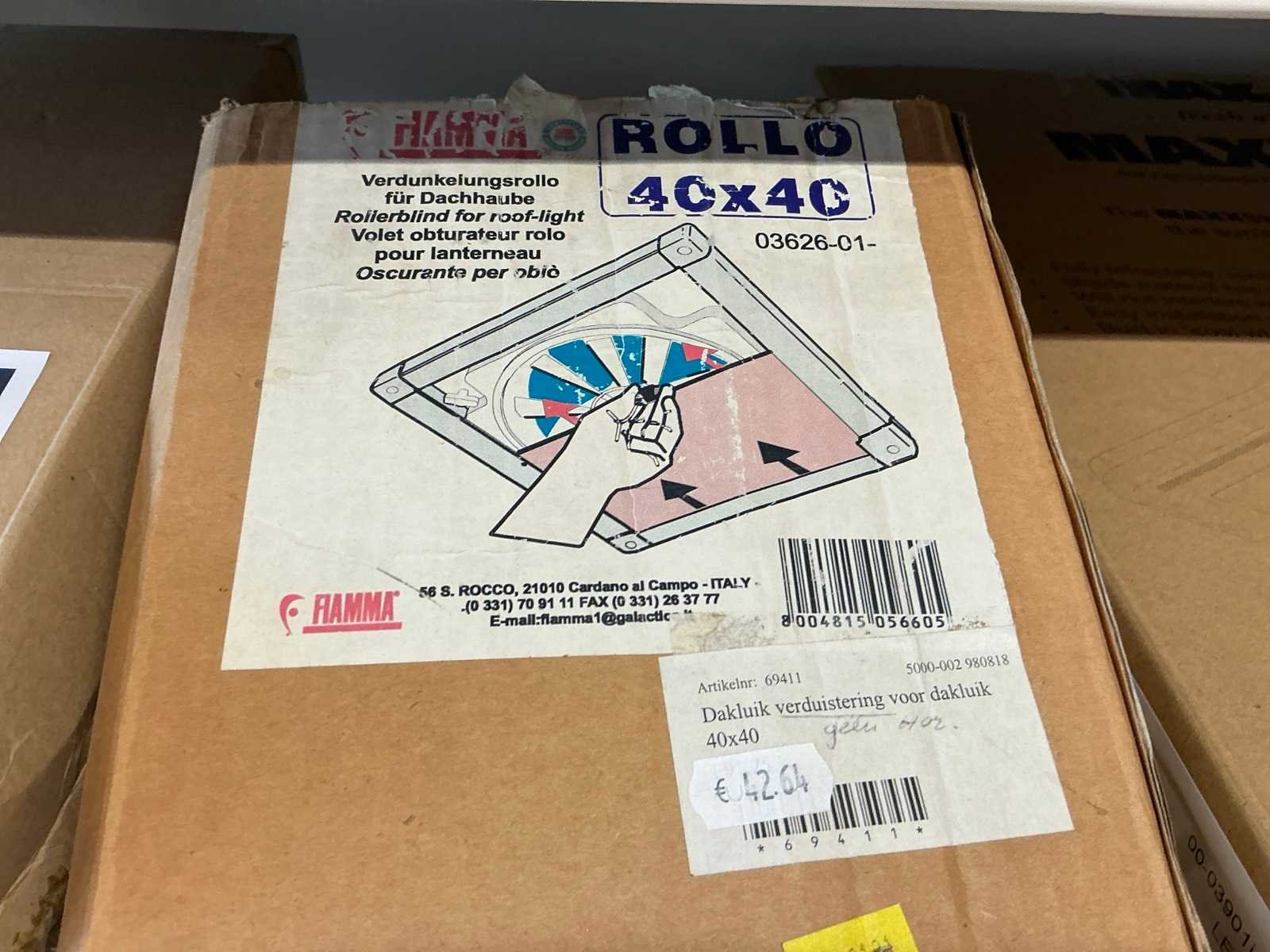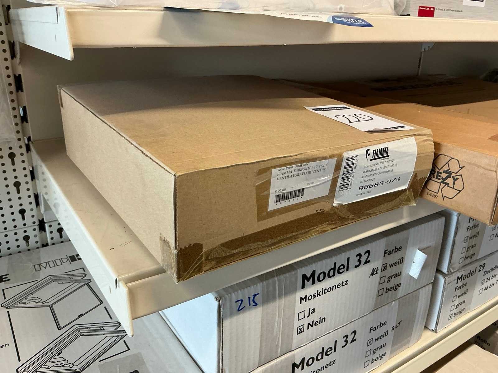 1x Fiamma turboki5 ventilator, 1x Fiamma dakluik verduisteraar, 1x Maxxshade maxxair verduistering met ledverlichting