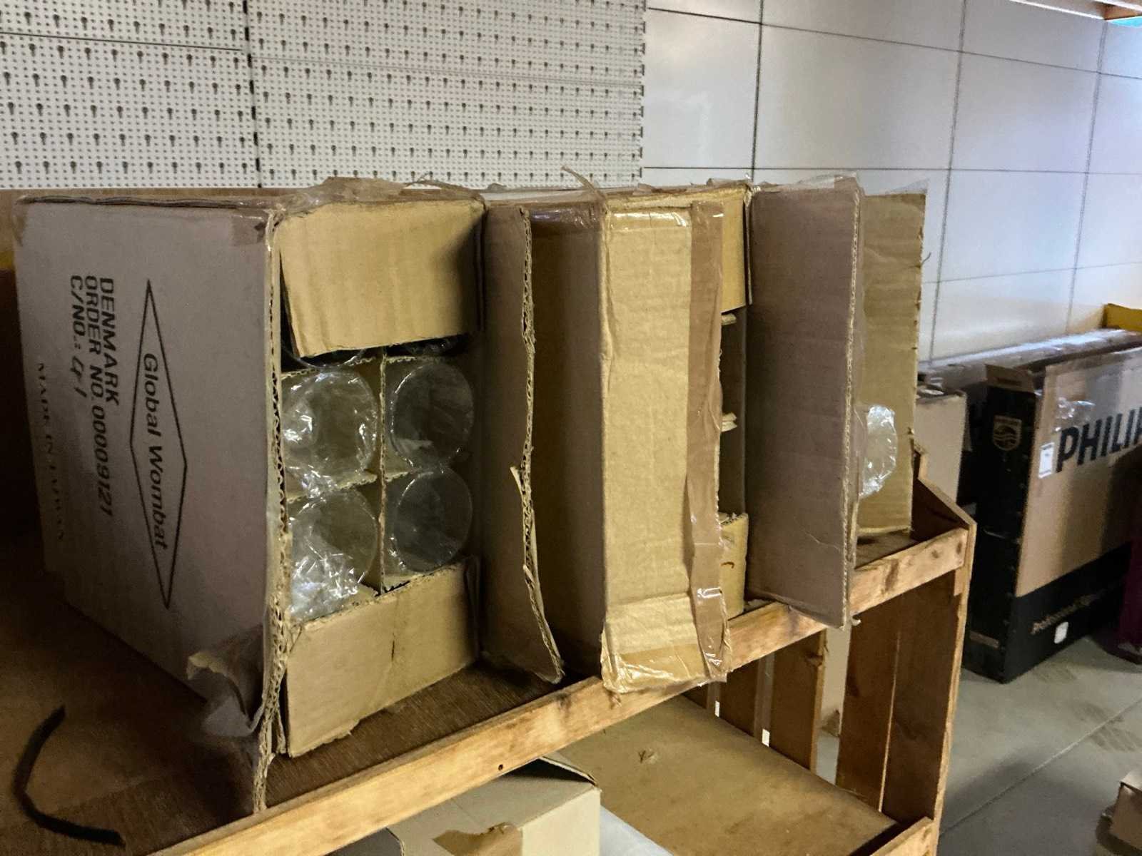 Stapelbare glazen, halogeen spots, wikkelfolie