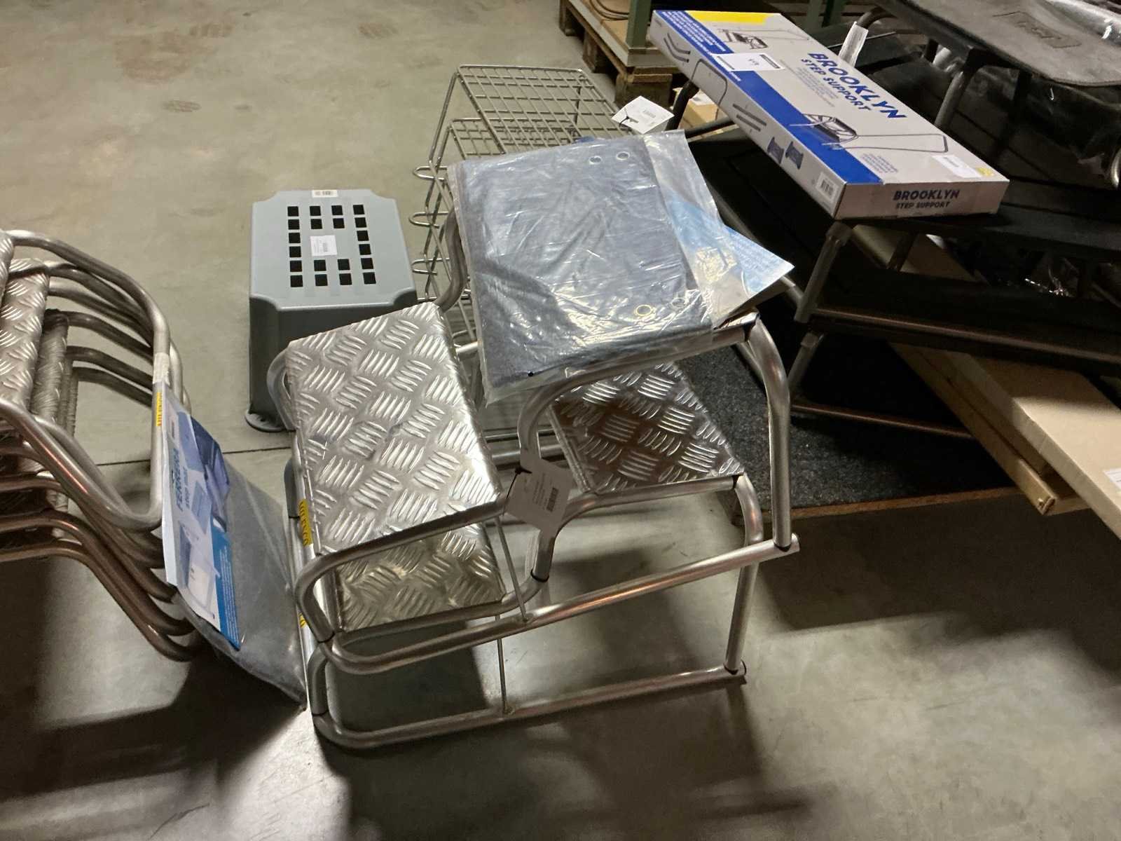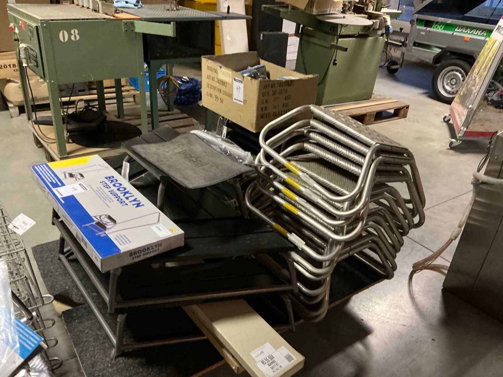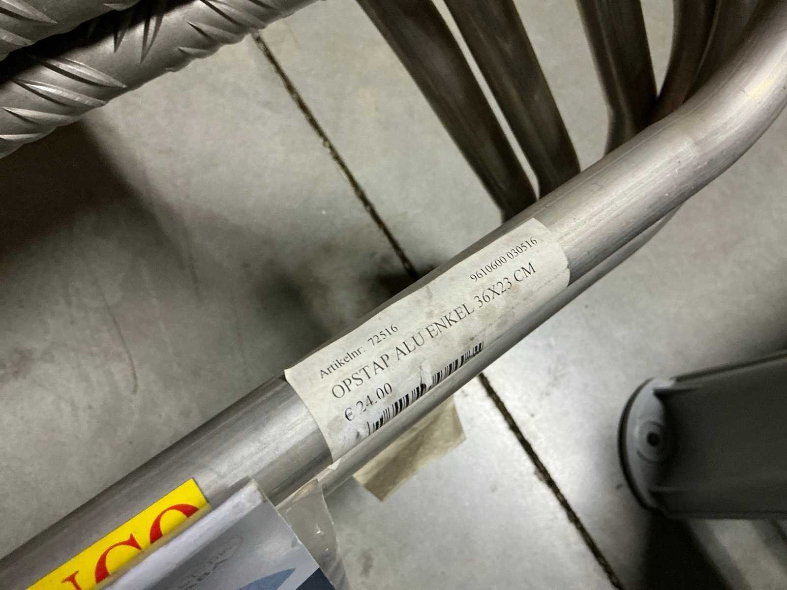 Kunststof en aluminium, met zijsteunen en stelpoten
